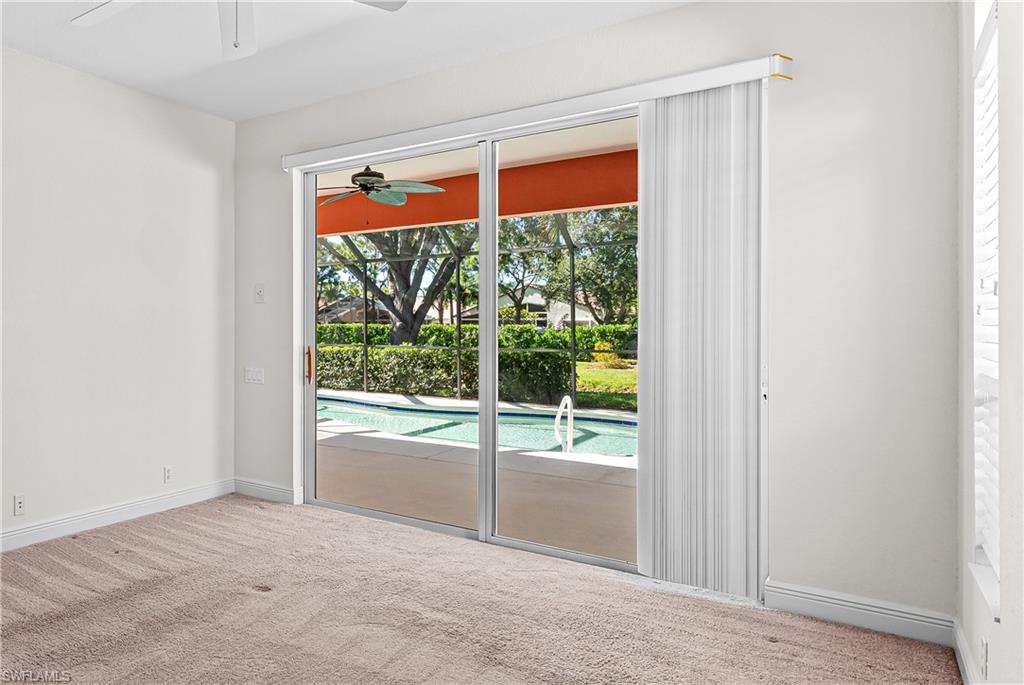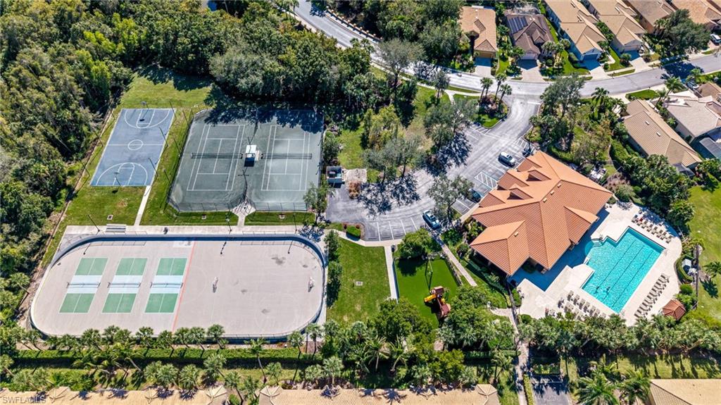 Brand new to the Rookery Pointe market is this lovely, bright, 3 Bed+Den/2 Bath+powder room, Single-Family pool home! Located on an oversized lot, the area beyond the pool is both open green space and lake with the added bonus of Sunsets as the home is West-facing! Huge volume ceilings set this floor-plan apart from most others in the community! The primary bedroom suite/bath is on the first floor along with a convenient half bath and den/office. Upstairs are 2 more bedrooms, a bath and a great office or homework nook! Newer roof and HVAC systems (2), storm windows + shutters add to the home's desirability. The open kitchen leads to a spacious partially-covered patio area for BBQ's and pool time on sunny days. X FLOOD ZONE!! (Not in a flood zone) The home is vacant and ready for your personal touches! Rookery Pointe is a beautiful gated community located in Estero, FL, nestled between Three Oaks Pkwy and Estero Pkwy. Rookery offers lush landscaping with five lakes, two preserves, a junior olympic community pool, gorgeous clubhouse, fitness center, covered and screened lanai, bbq grill, inline skate rink, basketball court, clay tennis courts, and pickleball courts.