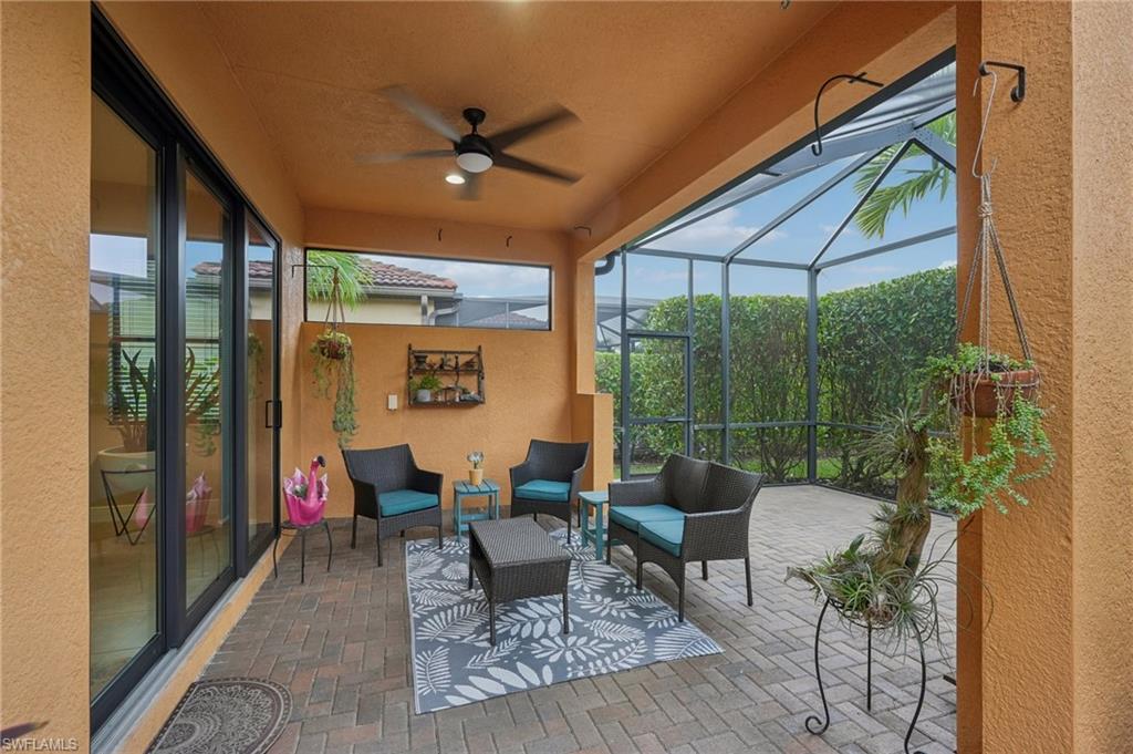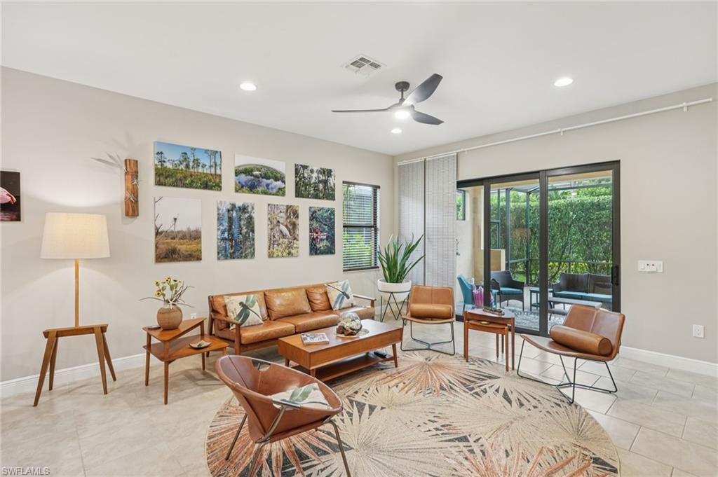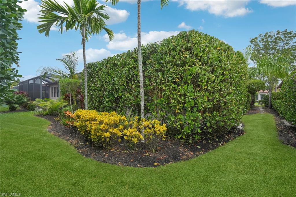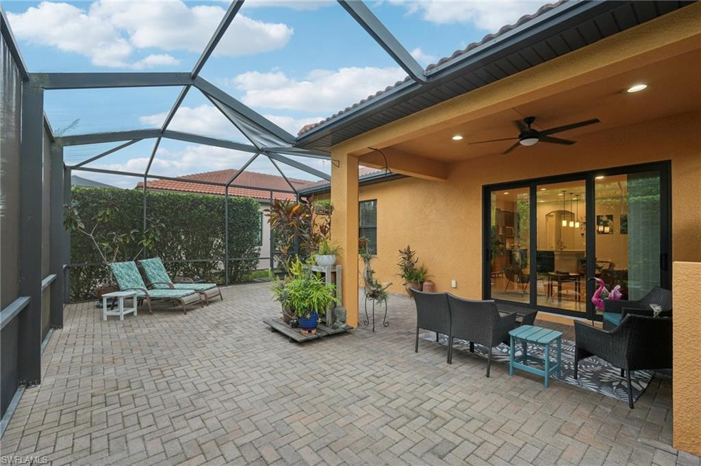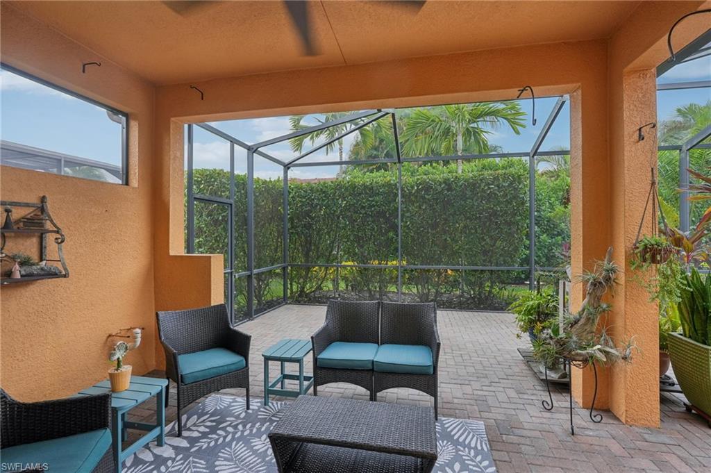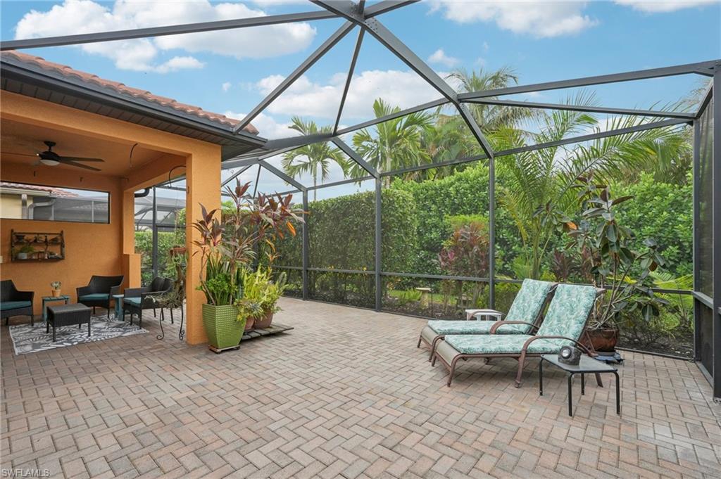 Beautifully maintained and decorated WCI single-level home in the gated community of Artesia. This home features tile flooring throughout the main living areas, new LVP in bedrooms, volume ceilings, impact windows and triple sliders. Recent updates include a 2-year-old HVAC system with UV light and a new water heater (Feb. 2025). The open kitchen offers 36" espresso cabinets with pull-outs, granite countertops, stainless steel appliances that include Samsung refrigerator with clear door, and a large island. The spacious primary suite includes dual vanities, a walk-in shower, and private water closet. Enjoy effortless indoor-outdoor living on the oversized 36’ screened lanai surrounded by lush tropical landscaping with room for a future pool and pre-plumbed outdoor kitchen. Additional features: whole-house generator hook-up, smart thermostat and irrigation controls, a two car garage with keypad garage entry, and front-load laundry with built in cabinet space. Artesia amenities include resort and lap pools, pickleball, bocce, dog park, clubhouse, fitness center, theater, and walking paths; all with low HOA fees and no CDD. Minutes to downtown Naples, Marco Island, beaches, Rookery Bay, and the $50/year KOA boat launch for kayaks, paddleboards, and jet-skis. A move-in-ready home offering resort-style living and a private botanical feel.