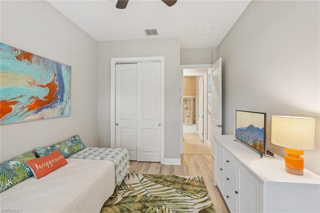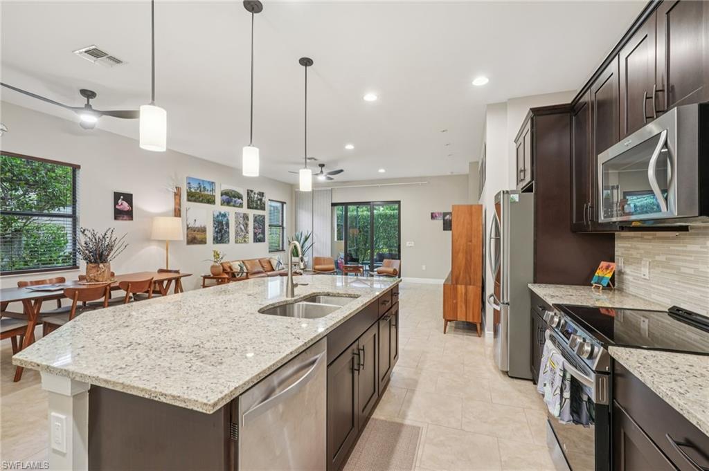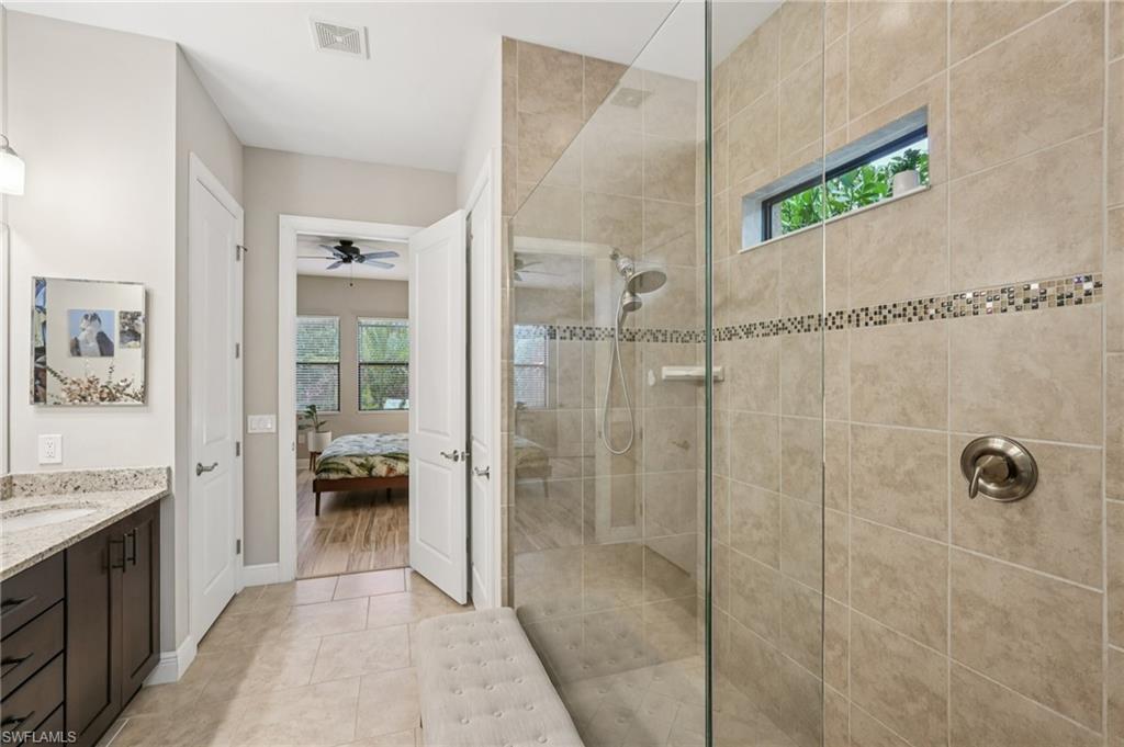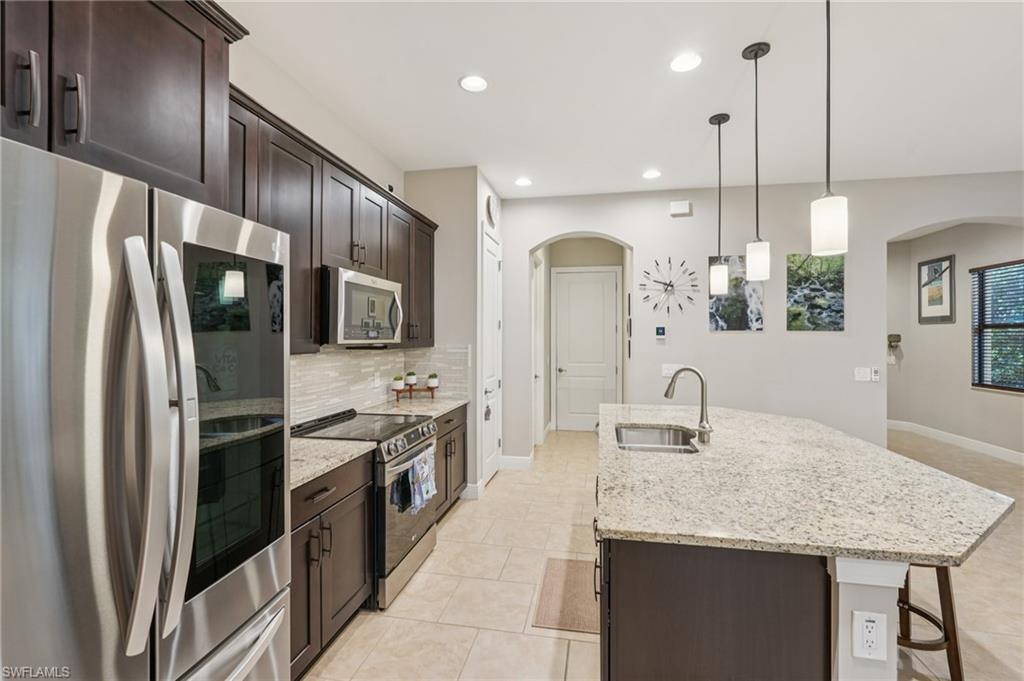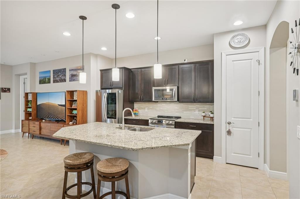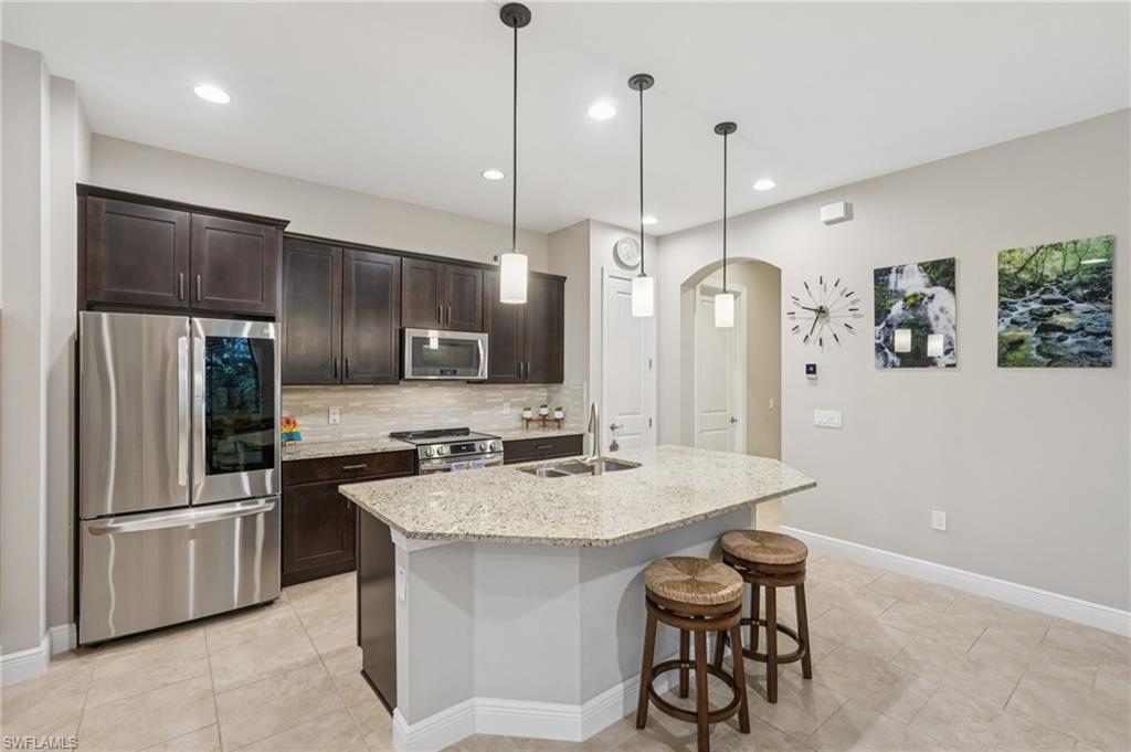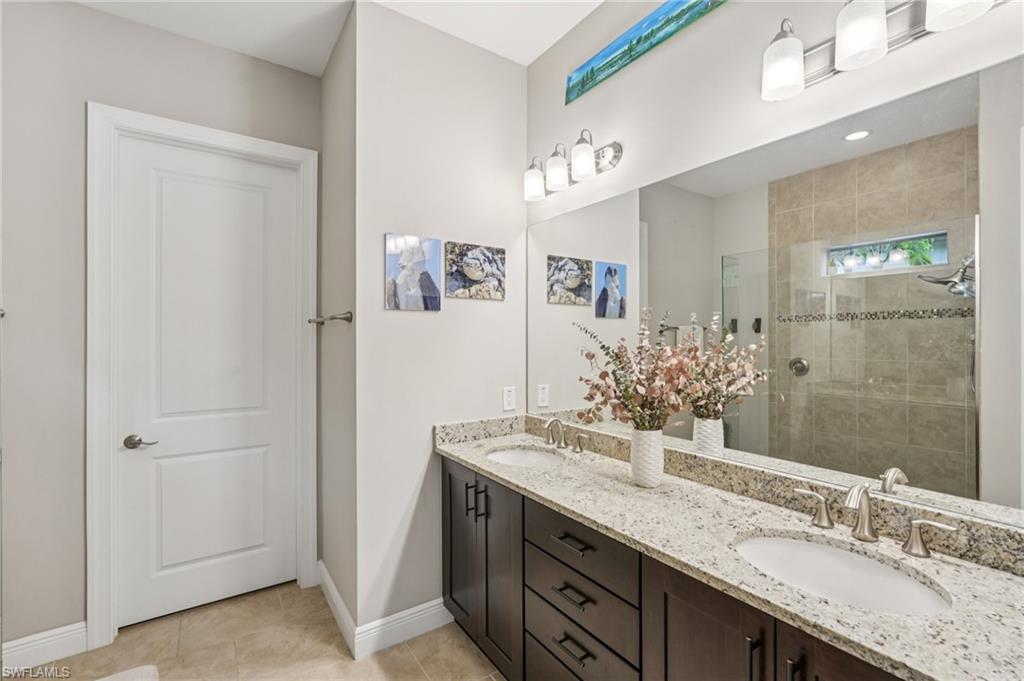 Beautifully maintained and decorated WCI single-level home in the gated community of Artesia. This home features tile flooring throughout the main living areas, new LVP in bedrooms, volume ceilings, impact windows and triple sliders. Recent updates include a 2-year-old HVAC system with UV light and a new water heater (Feb. 2025). The open kitchen offers 36" espresso cabinets with pull-outs, granite countertops, stainless steel appliances that include Samsung refrigerator with clear door, and a large island. The spacious primary suite includes dual vanities, a walk-in shower, and private water closet. Enjoy effortless indoor-outdoor living on the oversized 36’ screened lanai surrounded by lush tropical landscaping with room for a future pool and pre-plumbed outdoor kitchen. Additional features: whole-house generator hook-up, smart thermostat and irrigation controls, a two car garage with keypad garage entry, and front-load laundry with built in cabinet space. Artesia amenities include resort and lap pools, pickleball, bocce, dog park, clubhouse, fitness center, theater, and walking paths; all with low HOA fees and no CDD. Minutes to downtown Naples, Marco Island, beaches, Rookery Bay, and the $50/year KOA boat launch for kayaks, paddleboards, and jet-skis. A move-in-ready home offering resort-style living and a private botanical feel.