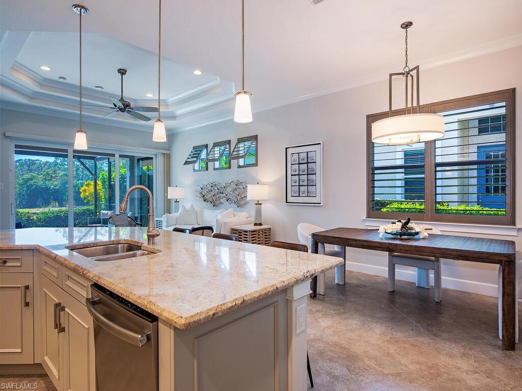 Move right into this pristine, upgraded Mimosa model villa located in the award-winning Isles of Collier Preserve, where modern comforts, a wealth of activities, and natural beauty combine seamlessly. Set on a premium private lot with “forever” water and preserve views, this bright, open, coastal-inspired pool home affords the quintessential Florida lifestyle. Enjoy outdoor living at its finest with a preferred southern exposure and unobstructed views from the picture-frame screened lanai and heated pool. The gourmet kitchen showcases floor to ceiling soft-close cabinetry, stainless steel appliances, and large stone countertops that provide plenty of room to sit, eat, talk, and gather comfortably. The spacious great room is well suited to entertaining, and features high, tray ceilings, upgraded trim and moldings, large format porcelain tile set on the diagonal, and plantation shutters. The primary suite includes twin sinks, a large walk-in shower, walk-in closet, and 6 panel solid core doors. The flexible den can serve as an office, guest space, or multipurpose room. A large, well-designed laundry room adds extra cabinetry and counter space. Impact-resistant windows and doors provide peace of mind. Offered partially furnished. The Isles of Collier Preserve spans over 2,400 acres of lakes, preserves, scenic waterways, walking and water paths, offering residents a unique connection to nature. Resort-style amenities include an Old Florida-style clubhouse, fitness center, resort and lap pools, tennis, pickleball, bocce, kayak and paddleboard launch, dog park, and the waterfront Overlook Bar & Grill. Miles of walking and biking trails wind through the community, and a vibrant social calendar makes it easy to connect and enjoy the Naples lifestyle. Located less than five miles from downtown Old Naples, 5th Avenue South, 3rd Street, and the Gulf’s white-sand beaches, this home combines serenity with convenience. Experience the best of coastal living in this meticulously maintained, partially furnished, move-in-ready Mimosa villa offering luxury, privacy, and style.