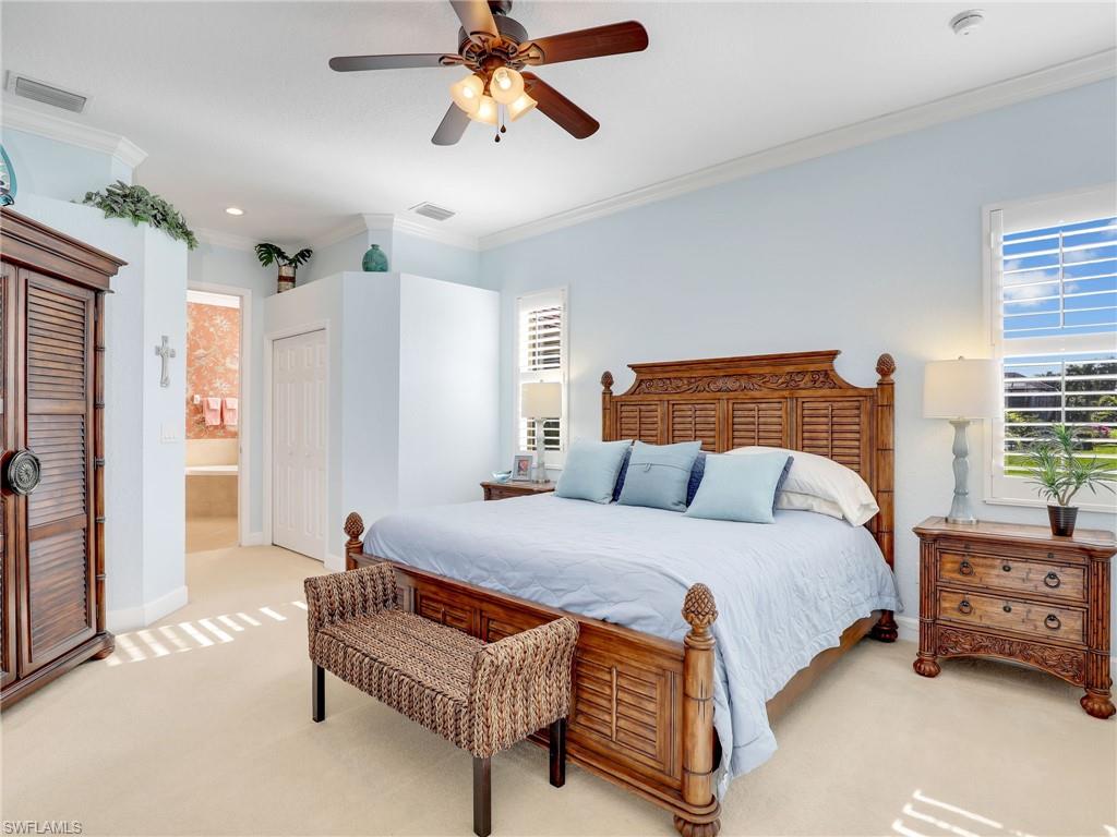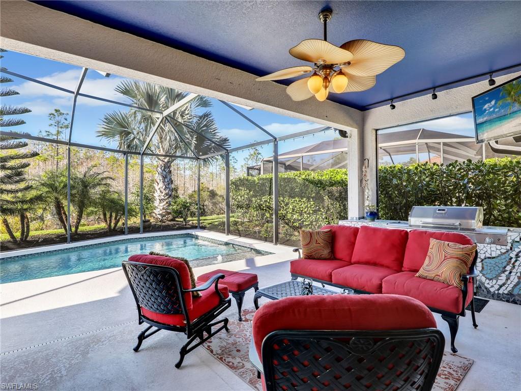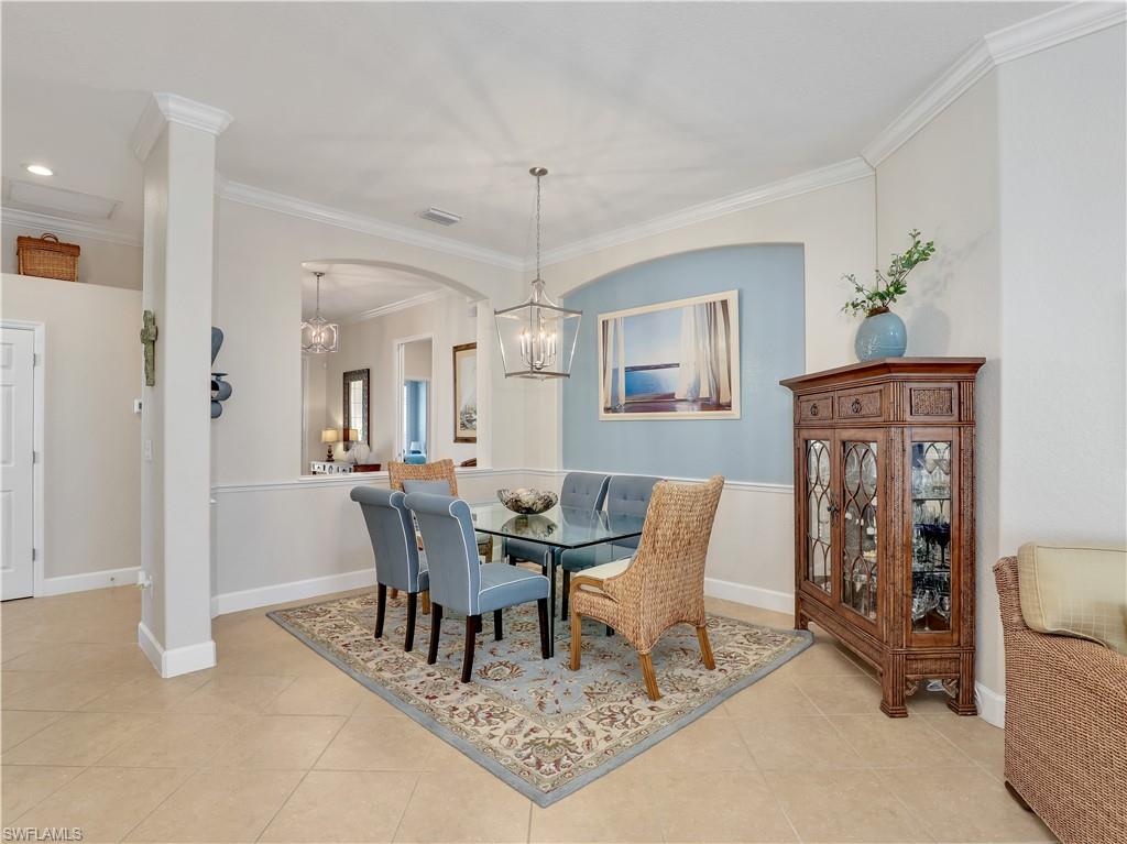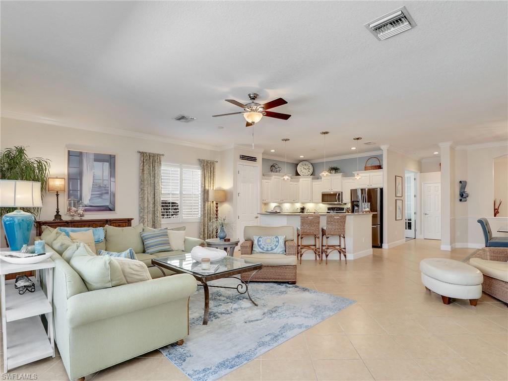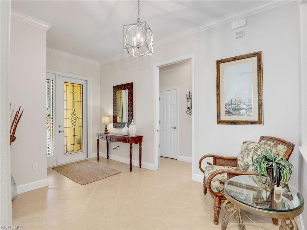 Welcome to 13538 Troia Drive, where sophisticated design meets maintenance-free resort living in one of Estero’s most sought-after, gated communities. This residence offers a perfect fusion of breezy style and coastal comfort, ideal for the discerning buyer seeking the ultimate Southwest Florida lifestyle. The home features a bright, expansive floor plan with high ceilings, refined architectural details, and seamless flow from the living areas to the outdoor retreat. The interior finishes showcase premium materials, including designer tile flooring, custom millwork, and impact-rated windows and doors that offer security and peace of mind. The chef’s kitchen is a true centerpiece, boasting high-end stainless steel appliances, luxurious quartz countertops, and a large central island perfect for gathering and entertaining. The primary suite provides a peaceful sanctuary, complete with a generous walk-in closet and a beautifully appointed ensuite bathroom featuring dual vanities and an oversized walk-in shower. The secondary bedrooms and den offer flexible spaces for guests, hobbies, or a dedicated home office. Step outside to your private screened lanai, a serene space for enjoying the sunny Florida climate and likely offering peaceful nature views. As a resident of this prime community, you gain immediate access to resort style amenities, including a resort-style pool, fitness center, tennis and pickleball courts, and active social programming. Crucially, the HOA provides extensive services, simplifying your life by covering landscaping, common area maintenance, and potentially essentials like cable and internet. This prime location in Estero places you perfectly between Naples and Fort Myers. You are just moments away from the area's best shopping destinations, including Coconut Point Mall, fine dining establishments, Gulf Coast beaches, and RSW International Airport. This residence at 13538 Troia Drive represents a rare opportunity to acquire a high-end, low-maintenance home in a community that exemplifies luxury and convenience.