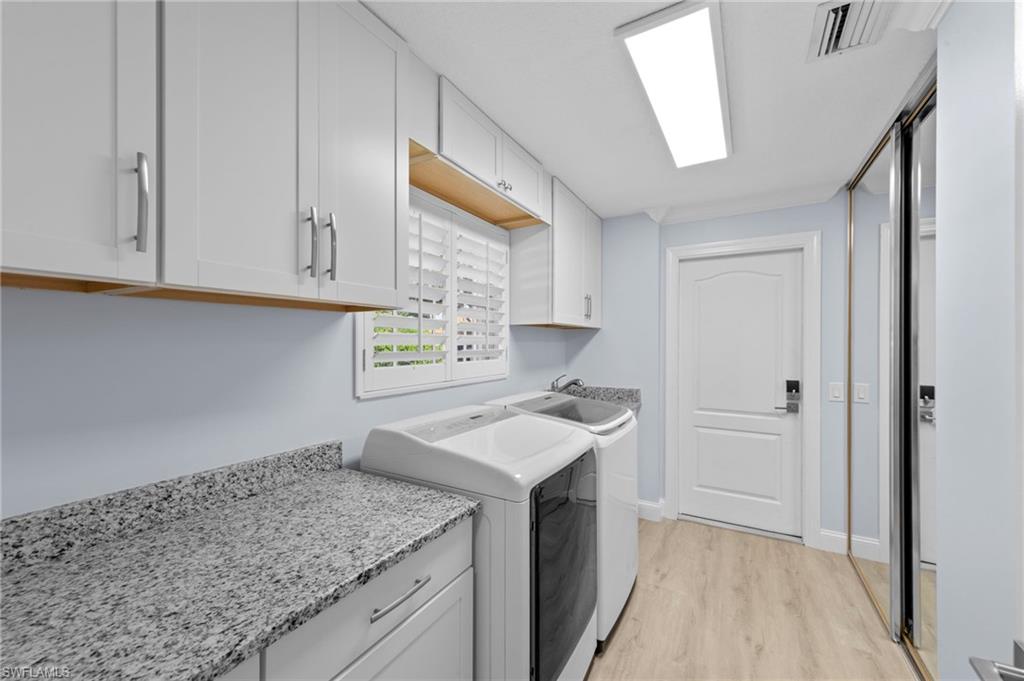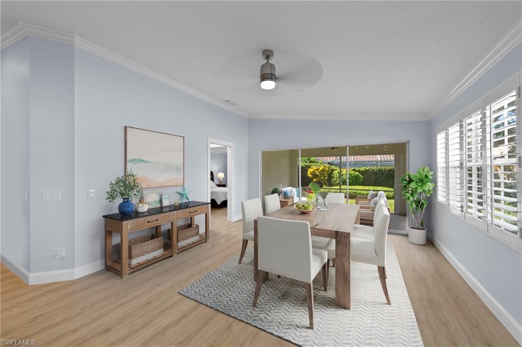 Welcome to 5785 Drummond Way, an exquisitely remodeled residence in the heart of Naples, nestled within the highly sought-after Island Walk community. This stunning attached villa has been completely transformed with designer-grade finishes, offering a perfect blend of modern sophistication and everyday comfort. Step inside to discover a light-filled, open floor plan featuring luxury vinyl plank flooring, custom cabinetry, quartz countertops, and elegant fixtures throughout. The kitchen is a true showpiece — designed with both style and functionality in mind — boasting top-of-the-line stainless steel appliances, designer tile backsplash, and a spacious peninsula ideal for entertaining. Every bathroom has been beautifully redone with spa-inspired finishes, frameless glass shower doors, and premium materials that exude quality and class. The primary suite offers a private retreat with custom closets and a serene, updated en-suite bath with walk in shower and dual sinks, while the guest room provides ample comfort for family and friends. Step out to the screened lanai and enjoy your private outdoor space surrounded by lush landscaping — the perfect place to unwind or host gatherings in true Southwest Florida style. The Roof, HVAC and hot water all have been recently been replaced and this property features complete Hurricane protection with storm shutters giving you complete peace of mind. Located in Island Walk, one of Naples’ most desirable gated communities, residents enjoy resort-style living with world-class amenities, including: A Town Center with a full-service Restaurant & Bar, A resort style pool plus a lap pool, State-of-the-art fitness center and Tennis courts, Pickleball & Bocce Ball courts, and a scenic network of walking and biking paths, Full-time activities director, library, post office, gas station, and more — all within the community! Situated in North Naples, you’ll be minutes from Vanderbilt Beach, Mercato, Waterside Shops, fine dining, golf courses, and top-rated schools. Island Walk is renowned for its pristine landscaping, tranquil lakes, and vibrant social atmosphere — offering the perfect balance of luxury, convenience, and community. Whether you’re seeking a seasonal escape or your forever home in paradise, 5785 Drummond Way embodies the best of Naples’ modern resort living — completely remodeled, move-in ready, and waiting for you. (Some pictures have been virtually staged)