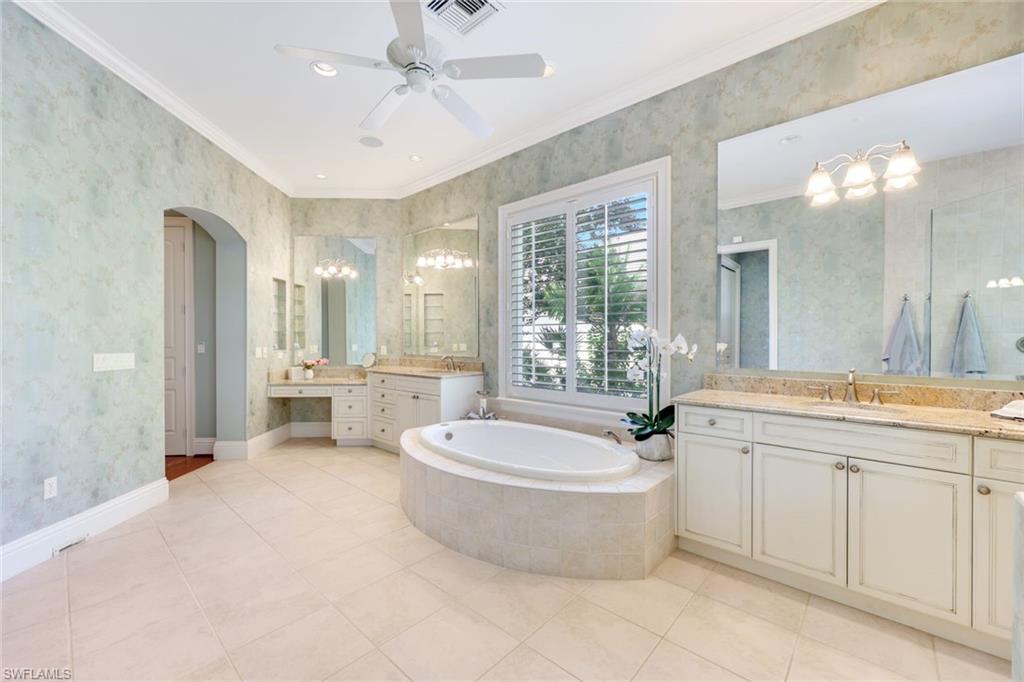 A perfect canvas for luxury living on coveted Gormican Lane, a quiet cul-de-sac street with just 26 private estates in the heart of Collier’s Reserve. Set on a premium out-of-flood-zone lot with sunny southern exposure and panoramic golf vistas, this custom-built residence combines timeless architecture, abundant natural light, and thoughtful design. While the owner’s suite, a guest suite, office, and everyday living spaces comprise over 3,400 square feet of main-floor living, two private guest bedrooms above provide comfort and space for visiting family and friends. Outdoors, an expansive lanai invites effortless entertaining and relaxation, with multiple seating, lounging, and dining areas surrounding a gas-heated 32-foot pool and spa—the perfect backdrop for sun-soaked afternoons and memorable gatherings. At the heart of the home, the remastered chef’s kitchen showcases Sub-Zero and Wolf appliances, including a 6-burner gas cooktop, a butler’s pantry/wet bar with beverage center, and refined finishes like soft-close custom wood cabinetry. The renovated owner’s suite and updated bathrooms elevate everyday luxury, while 15-foot high tray ceilings with crown molding, an electric fireplace and the spacious office with warm wood flooring add touches of sophistication. Additional highlights include a two-car garage plus a separate golf cart bay, extensive built-in cabinetry for storage, a new flat-tile roof, and impact-rated hurricane protection throughout. Enjoy the unmatched lifestyle of Collier’s Reserve, developed by the Collier family as the first Audubon International Sanctuary club, offering world-class golf, tennis, pickleball, fitness & wellness, bocce, even kayaking, as well as a vibrant social calendar across casual and fine dining venues. Welcome home to Arthur Hills’ eco-friendly paradise.