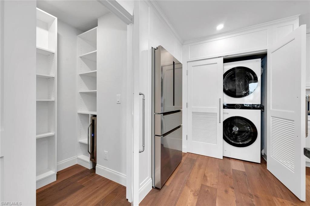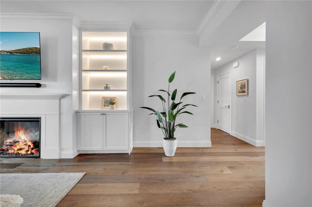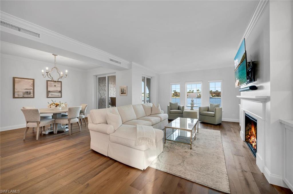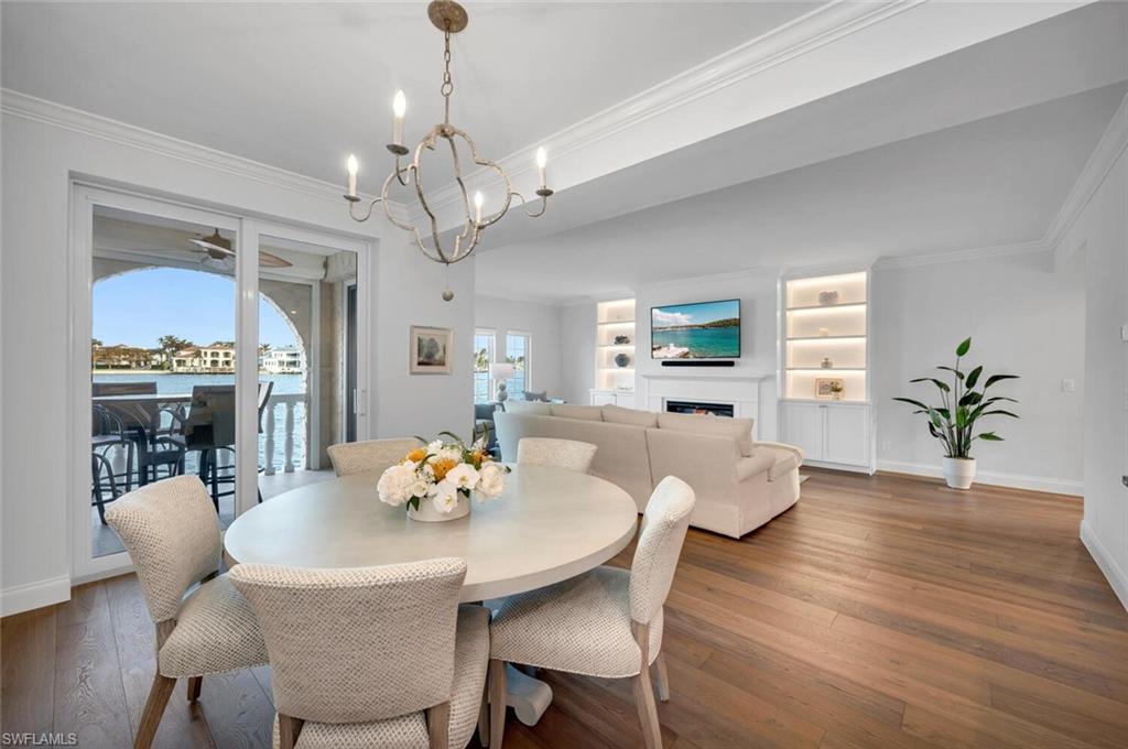 PET FRIENDLY COMMUNITY WEST OF 41 - LARGE DOGS WELCOME! Nestled on its own private island, Venetian Villas stand as one of Naples' most distinguished gated communities. Built by the renowned Lutgert Companies, the development draws inspiration from the timeless elegance of Venice, Italy. This exceptional first-floor condo, featuring 2 bedrooms and 2 full bathrooms, is quietly situated within the coveted Park Shore neighborhood, offering unparalleled privacy and serene bay views. Residents of Venetian Villas enjoy exclusive access to Park Shore’s deeded beach, just across the street, as well as a short stroll to the vibrant dining, shopping, and cultural experiences of Venetian Village. The community also boasts a wealth of amenities, including a pristine pool overlooking Venetian Bay, garages, optional boat slip leasing, and a year-round resident manager living on the property for added convenience. This condo has recently undergone a complete renovation by McGarvey Custom Homes, with no detail overlooked. Throughout the home, luxurious finishes and sophisticated design create a truly elevated living experience. The chef-inspired kitchen is a highlight, featuring Bosch stainless-steel appliances, custom cabinetry, quartz countertops, and a striking custom hood. An oversized pantry with double doors and a tucked-away wine fridge adds both functionality and elegance. The living area, with its sweeping bay views, offers a cozy fireplace, custom built-ins, and a warm, inviting ambiance. Naturally Aged European White Oak throughout. The master suite provides a peaceful retreat, complete with custom built-ins, a spacious layout that can accommodate a sitting area or office, and views of the bay. The spa-like primary bathroom is equally impressive, with Taj Mahal Leathered Quartzite Counters, a luxurious oversized shower with multiple showerheads, a Toto smart toilet, and two custom his-and-hers closets. The second bedroom also enjoys stunning bay views and includes a large custom closet and an ensuite bathroom with Bianco Vena Oro Counters. Currently used as a home office, this space offers built-in shelving and versatility for any lifestyle. Additional features include a brand-new South American Mahogany front door with glass, impact windows and doors, along with an electric shutter on the lanai. This is a rare opportunity to own a meticulously renovated home in one of Naples' most exclusive waterfront communities. Don't miss your chance to experience the ultimate in luxury living at Venetian Villas.