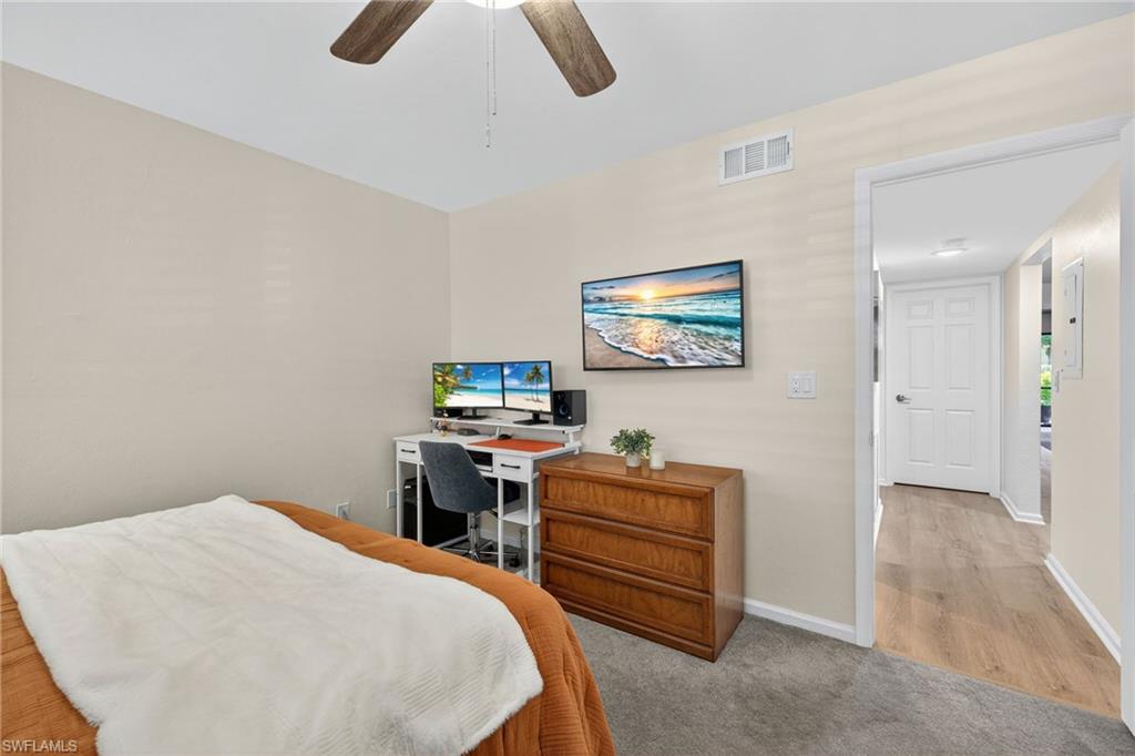 Welcome to this rarely available 3-bedroom, first-floor condo offering the perfect blend of comfort, style, and convenience. Step inside to find beautiful 12mm luxury vinyl plank flooring, and a remodeled kitchen featuring quartz countertops and newer stainless steel appliances. Thoughtful updates include an expanded guest closet for additional storage, a full laundry room with custom cabinetry and shelving, new light fixtures, and an extended patio ideal for relaxing or grilling outdoors. The spacious primary suite offers an en-suite bath with a walk-in shower and generous walk-in closet. Just steps from the community pool, this home combines easy living with an unbeatable location—only 3.5 miles to Bonita Beach, just 1.3 miles to Downtown Bonita’s vibrant dining and entertainment, and a quick 20 minutes to RSW International Airport. Come and see this gem for yourself! FLOOD ZONE X!