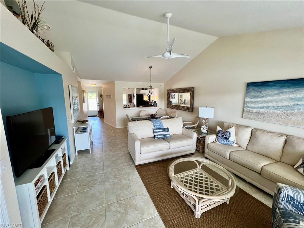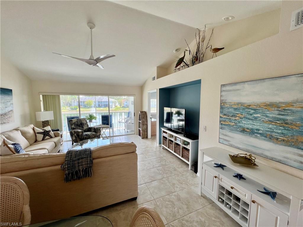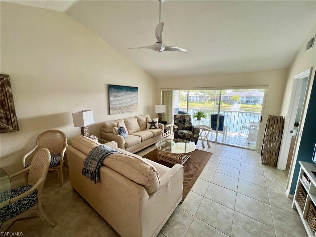 Best deal in Sapphire Lakes! This meticulously maintained unit offers a premium location, beautiful lake view and a garage! This home has large tile throughout, neutral colors and decor, a spacious eat-in kitchen and a full laundry room with sink. It is being sold turnkey furnished and will be ready for immediate use. It is a perfect opportunity for a personal residence or a ready to go rental. Sapphire Lakes is a gated and lushly landscaped community with low fees. It offers 4 pools, tennis, pickleball, bocce and more. The community also has a full social calendar with many activities and events. Garage units move fast, hurry and take a look!