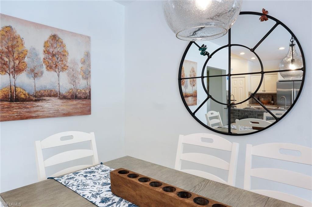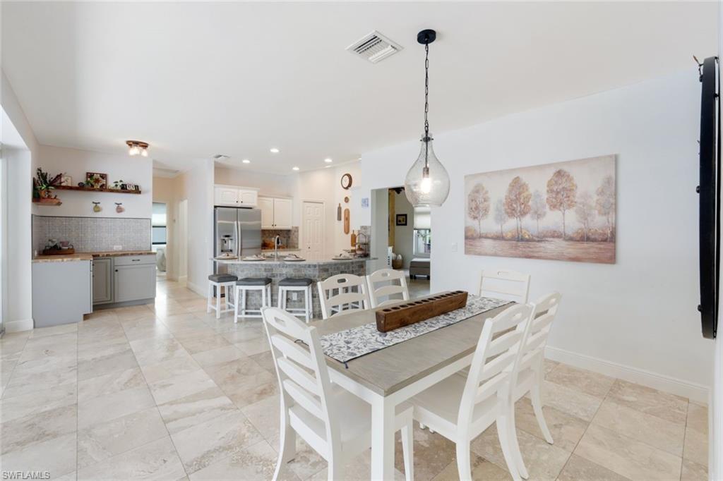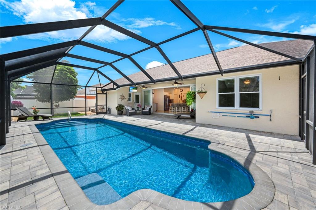 Welcome to this exquisite lakefront property in Bonita Springs, a true hidden gem within a non-gated community offering low HOA fees and unparalleled convenience. This beautifully renovated home boasts a stunning newly brick-paved pool lanai deck, a newly refinished saltwater pool, and a fenced-in side yard perfect for children and pets. Enjoy serene private landscaped views that seamlessly blend with the picturesque lake backdrop. Inside, the modernized kitchen features quartz countertops, a large breakfast bar, stainless steel Samsung appliance package, Pentair water filter, and a beautifully finished coffee/wine bar area. The property also offers the peace of mind of a newer roof, repiped plumbing throughout, and a newly epoxied garage floor. You'll enjoy a large master suite with updated bath including large walk in shower and updated vanity with quartz counter tops. All 3 additional bedrooms are spacious and functional. Updated full guest bath that also functions as your pool bath includes updated vanity, granite countertops, new lighting & fixtures and frameless shower door. Located just minutes from downtown Bonita Springs, you'll have quick access to a variety of shopping, dining, and outdoor activities, including the highly anticipated Mid-town Bonita, Coconut Point Mall, RSW, and stunning white sand beaches. This home exemplifies both tranquility and convenience in a sought-after location.