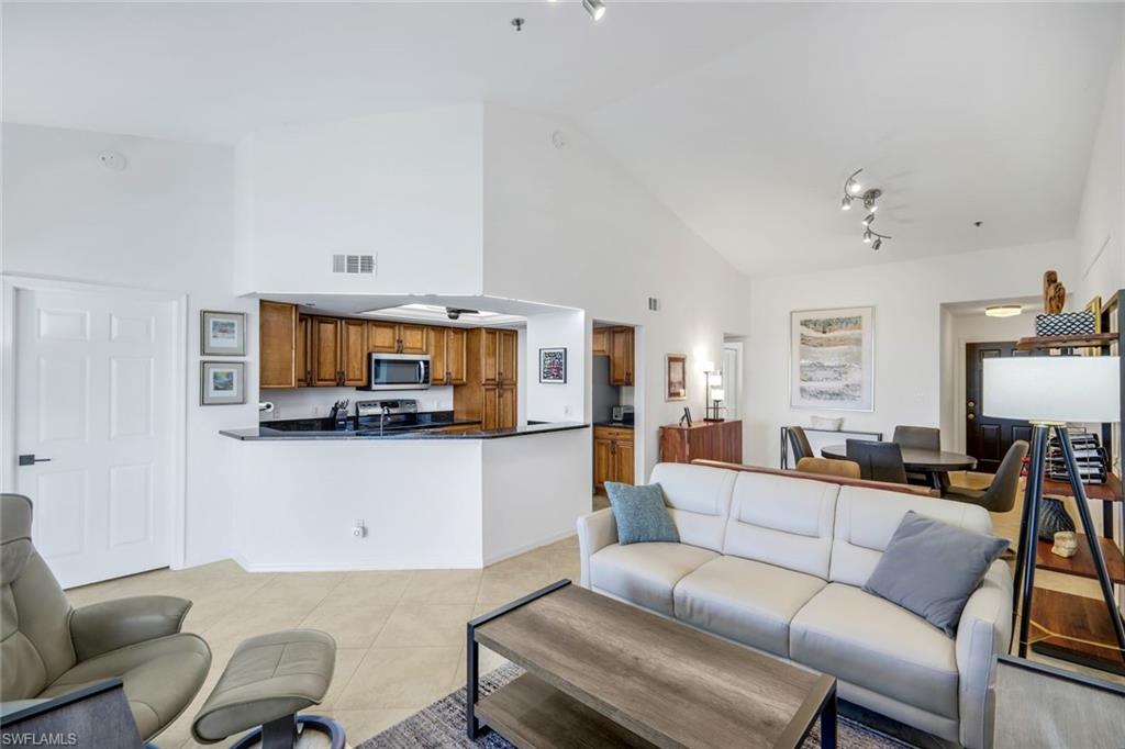 Enjoy the serenity of golf course and lake views from this beautifully updated top-floor residence in the exclusive Greenbriar neighborhood of Bonita Bay. Vaulted ceilings—unique to top-floor units—enhance the open, airy ambiance, while the absence of neighbors above ensures peace and privacy. Storms? Bad Weather? This Home has All Windows Impact and Hurricane Proof as well as New Electric Impact / Hurricane Protection for the Entire Lanai. Inside, you’ll find a clean, contemporary motif with custom trim detailing, recessed kitchen lighting, and thoughtful updates throughout—from the kitchen to both bathrooms. The spacious 3-bed, 2-bath layout includes a generous primary suite with an en-suite bath, plus two additional bedrooms ideal for guests or a home office. Relax or entertain on the screened lanai, where sweeping golf and lake views create a stunning backdrop. Greenbriar offers a true resort-style atmosphere, complete with a large community pool and spa, two tennis courts, and a brand-new pavilion with an upgraded pool house, 75" TV, and ample seating for social gatherings. Secured underground parking provides convenience and peace of mind. Residents also enjoy access to Bonita Bay’s unmatched amenities, including a private beach park on the Gulf of Mexico, over 12 miles of scenic walking and biking paths, canoe and kayak launches, a full-service marina with Gulf access, and waterfront dining at Backwater Jack’s. Membership to the Bonita Bay Club—featuring five championship golf courses, tennis and pickleball courts, a fitness center, spa, and multiple restaurants—is available but not mandatory. Discover refined coastal living in one of Southwest Florida’s most prestigious communities—where every day feels like a getaway