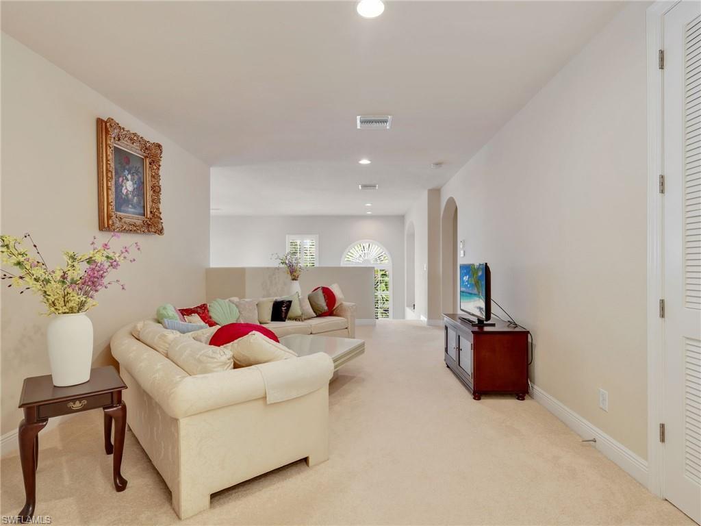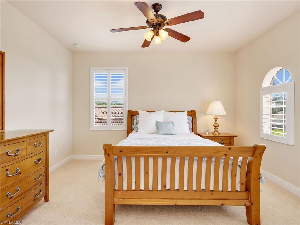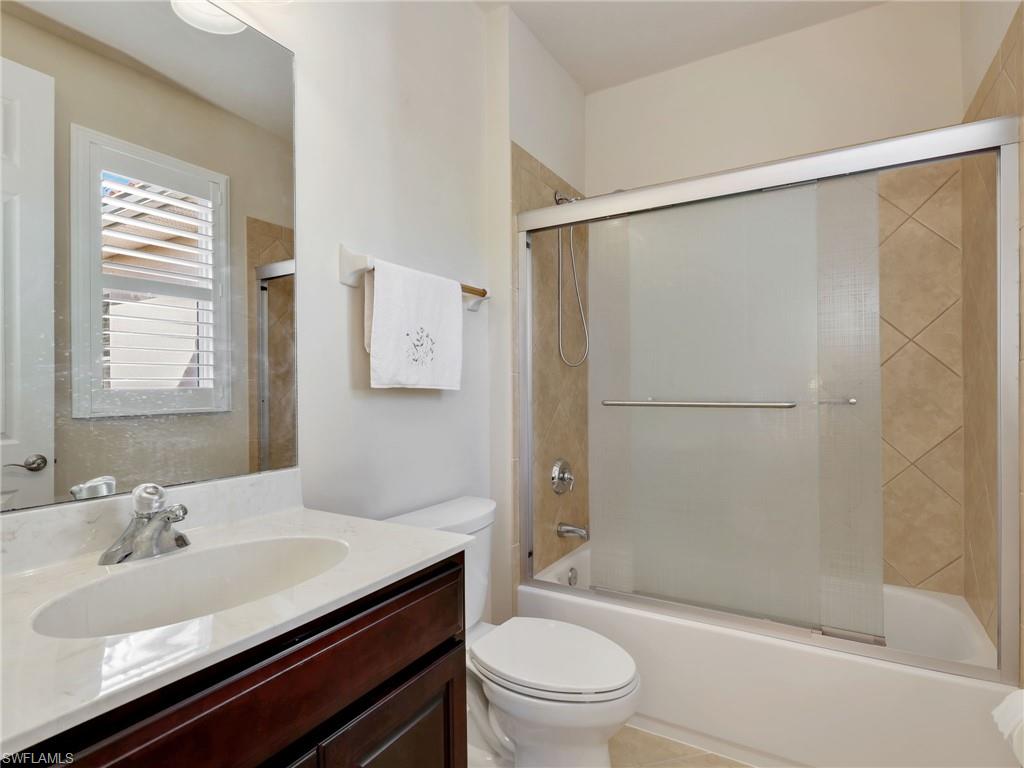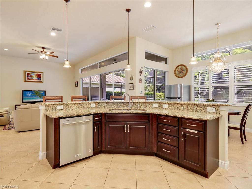 This elegant Toll Brothers estate in Belle Lago offers over 4,000 square feet of refined living space designed for comfort, flexibility, and style. With 5 bedrooms, a media room, and 4.5 baths, the layout easily accommodates multi-generational living. A first-floor suite with a private bath provides a comfortable retreat for visiting guests or a private home office—offering privacy and convenience within the main level. Inside, soaring 20+ foot ceilings, abundant natural light, and timeless architectural details create a sense of grandeur and ease. The main living areas include a formal living room, formal dining room, and a spacious family room that flows into an open kitchen with granite countertops, a natural-gas cooktop, and a large breakfast area ideal for casual dining and connection. Each bedroom offers a walk-in closet—an uncommon luxury in Florida homes. With extra insulation, newer A/C units, and a whole-home reverse-osmosis system, this residence balances elegance with efficiency. Outdoor living shines on a private, beautifully landscaped lot featuring a heated pool, dedicated pool bath, outdoor kitchen, and an expansive Super Screen-enclosed lanai offering superior durability and the perfect setting for year-round relaxation or entertaining, complemented by an oversized 3-car garage with extra storage space. Belle Lago is a natural gas community known for its active lifestyle, natural beauty, and prime Estero location west of I-75 in preferred Flood Zone X (no flood insurance required) and no CDD. Residents enjoy pickleball, tennis, bocce, a fitness center, clubhouse, pool, and scenic walking paths surrounding tranquil lakes. A private golf-cart path connects directly to neighboring Estero Country Club, where membership has no waitlist. Meticulously maintained and move-in ready, this estate delivers luxury, value, and lifestyle in one of Estero’s most desirable communities—now offered at the lowest price per square foot in Belle Lago.