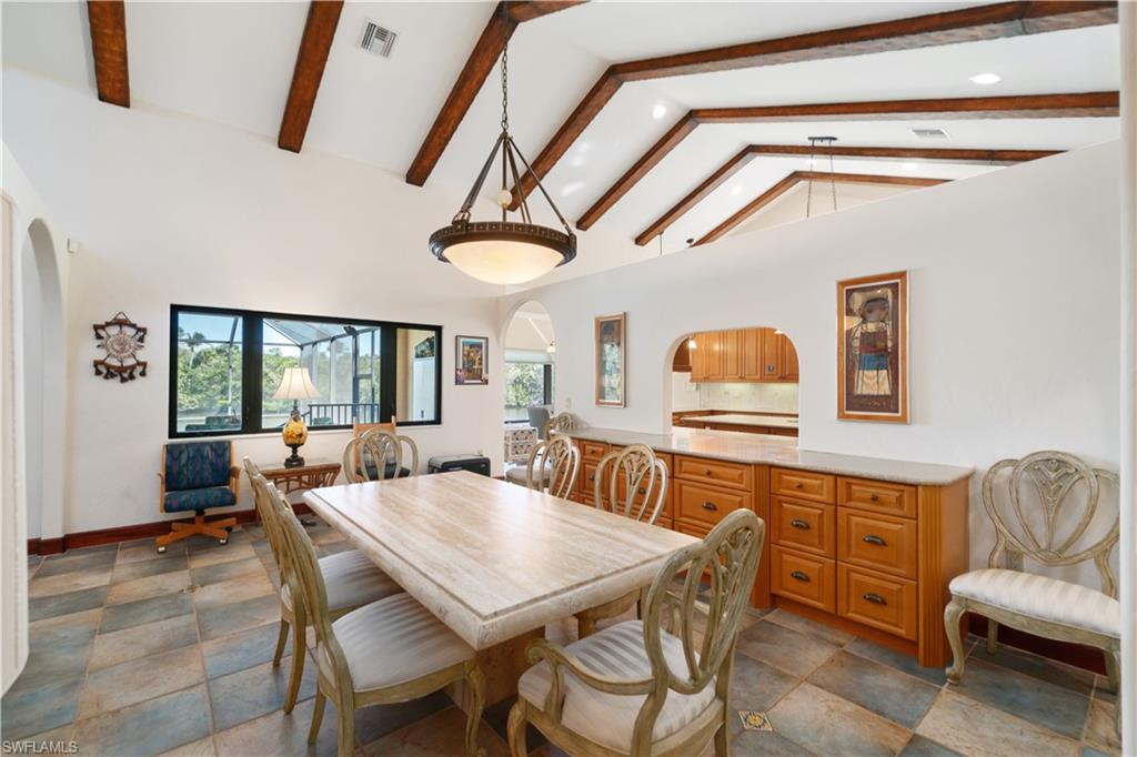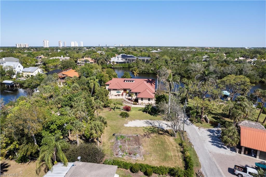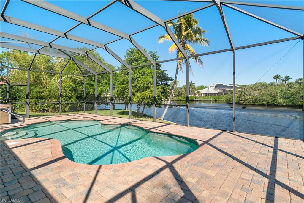 NESTLED ON A SPACIOUS, PRISTINE 1.267-ACRE LOT on the Imperial River across from Bonita Bay’s Riverwalk Park, this rare and beautifully maintained estate exudes a charming Olde Florida feel while offering a unique opportunity for luxurious waterfront living. Boasting 554 ft of prime waterfrontage —226 feet along the river and 328 feet along the canal—this residence is a true gem for those who value both privacy and exceptional water access. A rare, grandfathered-in boathouse with a remote-controlled lift on the canal completes this incredible property. Elevated at 12 feet, this home has never experienced water intrusion, even from Hurricane Ian! Additionally, the seller owns the adjacent 0.295-acre double lot at 27556 Shore Dr with a second boat lift and canopy, providing an opportunity for a combined total of 1.56 acres and 440 feet of coveted seawall along the river. Upon arrival, you’ll be greeted by a beautifully landscaped spacious front yard, perfect for gardening, relaxation, or pets. This beautifully maintained home features Spanish-style architecture with tile flooring, soaring vaulted ceilings, custom beams, and archways throughout. Spanning 3,353 sq ft under air, it includes 3 bedrooms, a den, exercise room, and 3.5 baths, along with a metal roof, hurricane-impact windows, and other upgrades such as new HVACs (2017 & 2019), a new water heater (2023), a portable generator (2023), a central vac system, a Bruno platform lift, and a bar with a wine fridge. Step outside through French doors to a panoramic river-view lanai with a pool and freestanding hot tub, plus additional yard space for pets or recreation. The gourmet kitchen offers quartz countertops, custom wood cabinetry, abundant storage, and a dining area with spectacular views. There is a formal dining room with a pass-through window from the kitchen. The expansive primary suite is a true retreat, featuring water views, a sitting area, walk-in closets, a large ensuite bath, and an additional room and bathroom ideal for a home office or exercise room. Conveniently located near top dining, Mercato, The Promenade, Waterside Shops, Coconut Point, 5th Avenue, and RSW International Airport, this estate offers a unique opportunity for luxurious waterfront living.