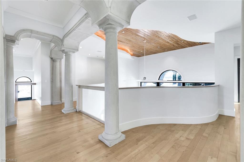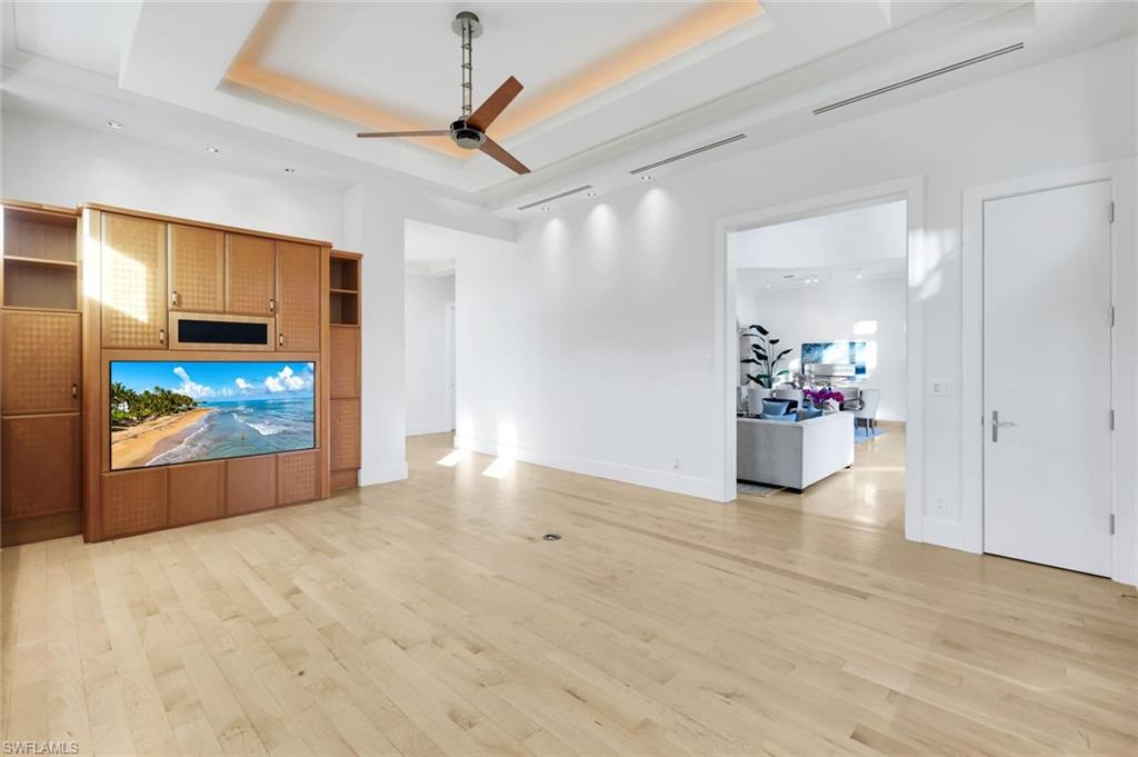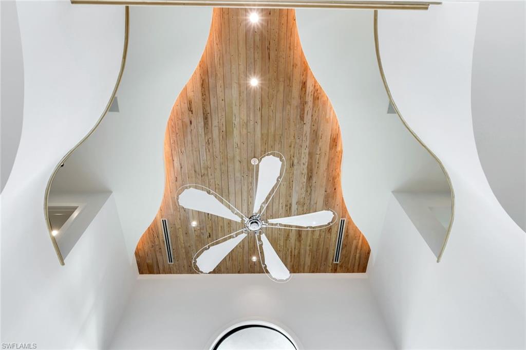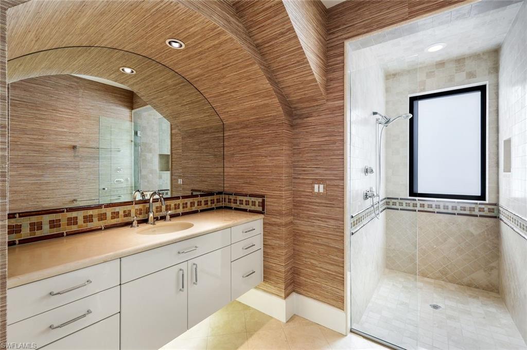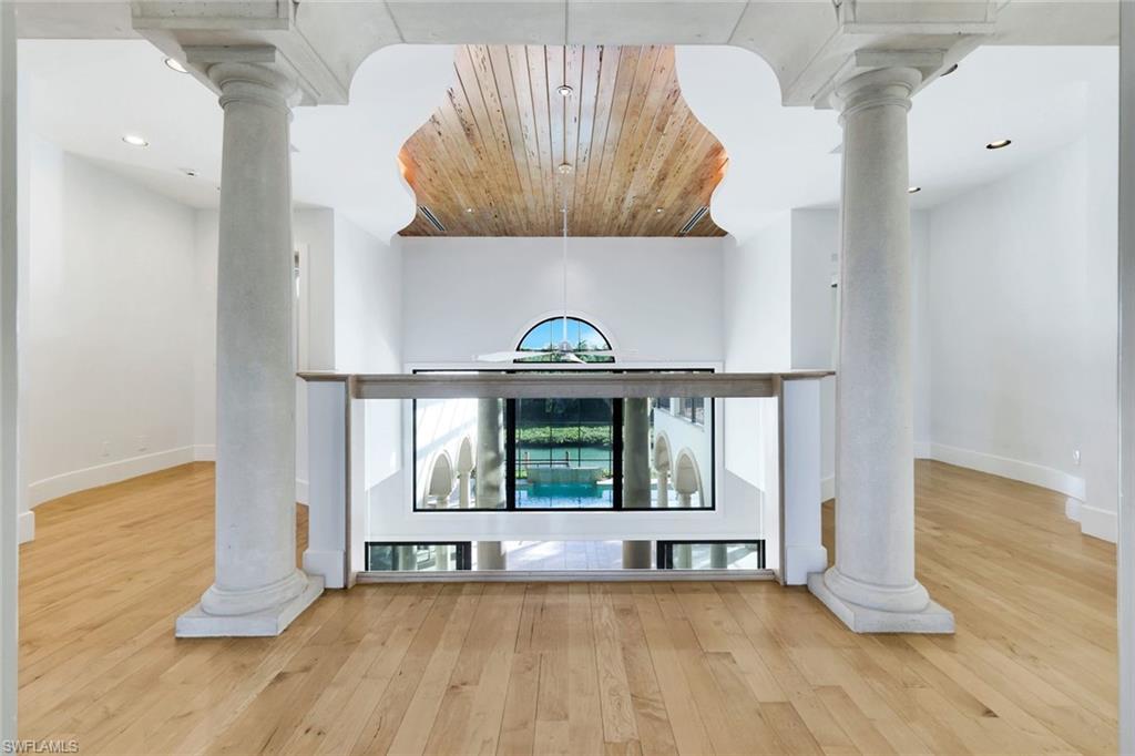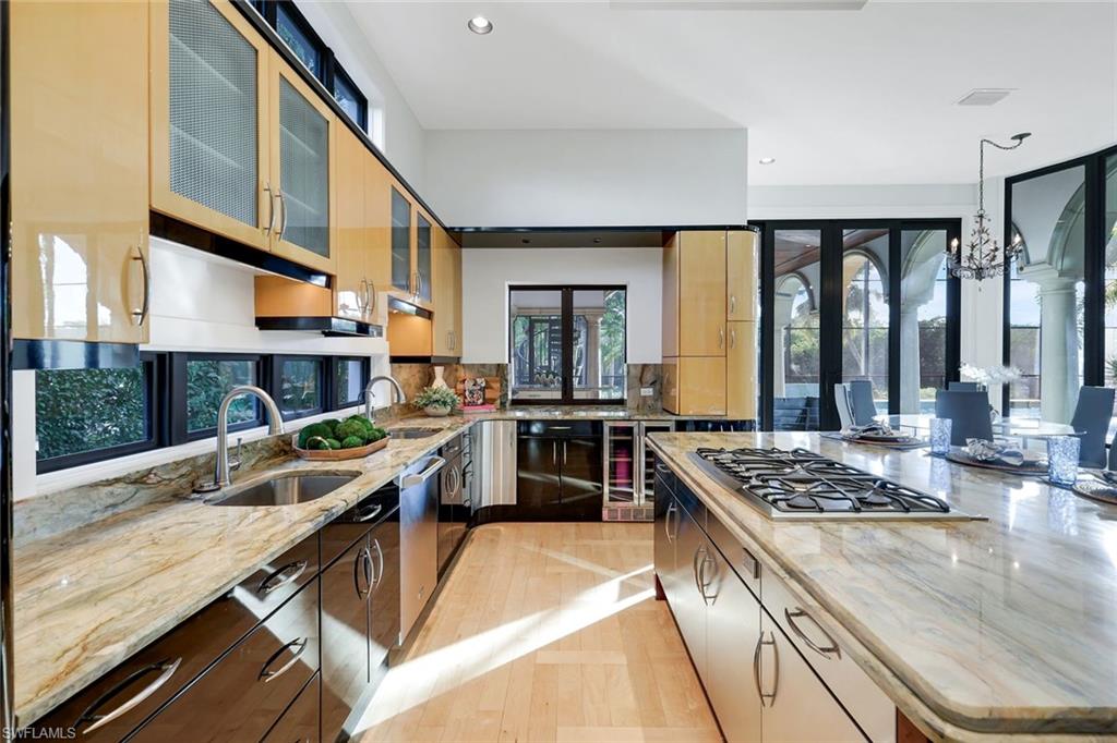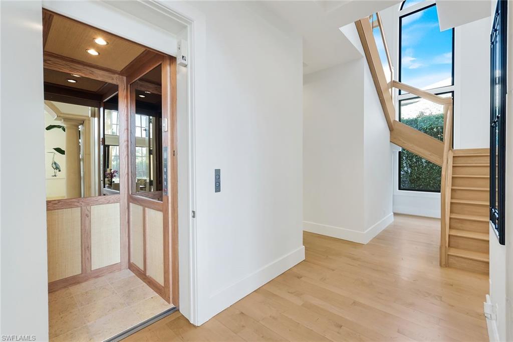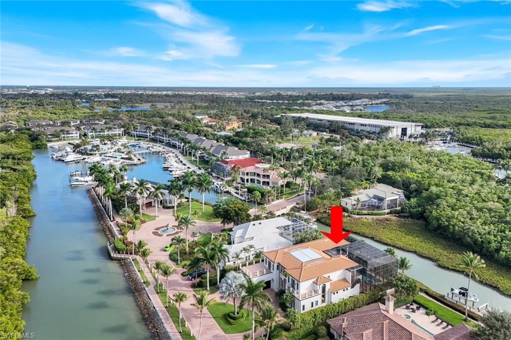 Rare waterfront estate on exclusive Southpointe Island at Windstar on Naples Bay. Tucked behind double gates within an intimate enclave of only ten estate residences, this exceptional property offers privacy, direct Gulf access, and an unparalleled Naples lifestyle just minutes from downtown and world-renowned beaches. Positioned on nearly half an acre, this home features a private 40-ft dock in the backyard with the option to purchase an additional 50-ft protected slip in Windstar’s private marina—an extraordinary offering seldom available in Naples Bay communities. Spanning over 6,100 sq ft of refined interior living space, this 5-bedroom + den, 4 full and 2 half bath residence showcases spectacular 20+ ft contoured ceilings, abundant natural light, and meticulous attention to detail throughout. The chef’s kitchen is designed for both function and style, featuring custom cabinetry imported from Japan, quartzite countertops, a gas cooktop island, premium appliances, and seamless flow to the expansive outdoor living areas. The luxurious owner’s suite offers tranquil water and preserve views, a private balcony, and a spa-inspired bath with jetted soaking tub and walk-in steam shower. An elevator provides convenient access to the second level. Impact-resistant WinDoor windows and doors and a newer roof provide peace of mind. Outdoor living is exceptional, with nearly 5,000 sq ft of covered and open-air space including multiple balconies, a custom saltwater pool and spa with cascading water features, summer kitchen, and spacious lanai—ideal for entertaining or quiet waterfront relaxation. Residents of Windstar on Naples Bay enjoy access to a full suite of private club amenities, including championship golf, tennis, an active clubhouse, private beach access via shuttle, and a full-service marina with harbormaster. Membership opportunities subject to club approval and availability. A rare opportunity to own an estate-level waterfront home combining boating, privacy, and proximity at an exceptional value on Naples Bay.