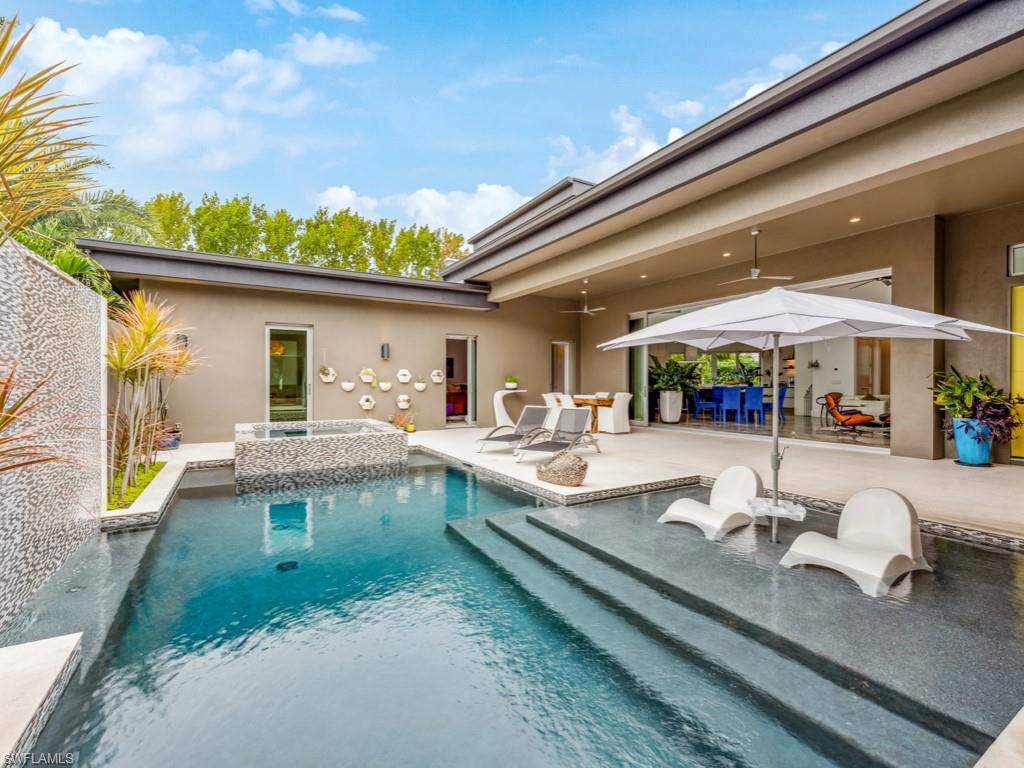 Nestled in a serene enclave in the popular Tigertail Beach & Smokehouse Bay neighborhoods, this contemporary gem stands as a one-of-a-kind residence, meticulously crafted with custom features throughout. Boasting a spacious great room floor plan with a grand living room ceiling, an incredible gourmet kitchen, three bedrooms and a separate casita for guests, this two-story luxury home offers unparalleled comfort & style. The centerpiece of this abode is the huge private courtyard pool & spa, basking in western exposure for endless days of relaxation & enjoyment. Every detail has been carefully considered, with top-of-the-line international selections & a steel beam construction ensuring durability & sophistication. The sellers spared no expense in creating the ultimate retreat, envisioning a haven where they could savor their days in luxury with every upgrade imaginable. Multiple patios provide ample space for outdoor entertaining & gardening, while the garage, built with extra height, accommodates car lifts effortlessly. With a dedicated space on the second level to expand, this home offers endless possibilities for customization to add a 4th bedroom/office & bath. From the modern landscaping design to the thoughtful touches like the grass inset on the driveway, every aspect of this property exudes modernist elegance & beauty! Marco's Tigertail Beach neighborhood is absolutely stunning and provides easy access to the beach along with an array of fabulous dining & shopping nearby.