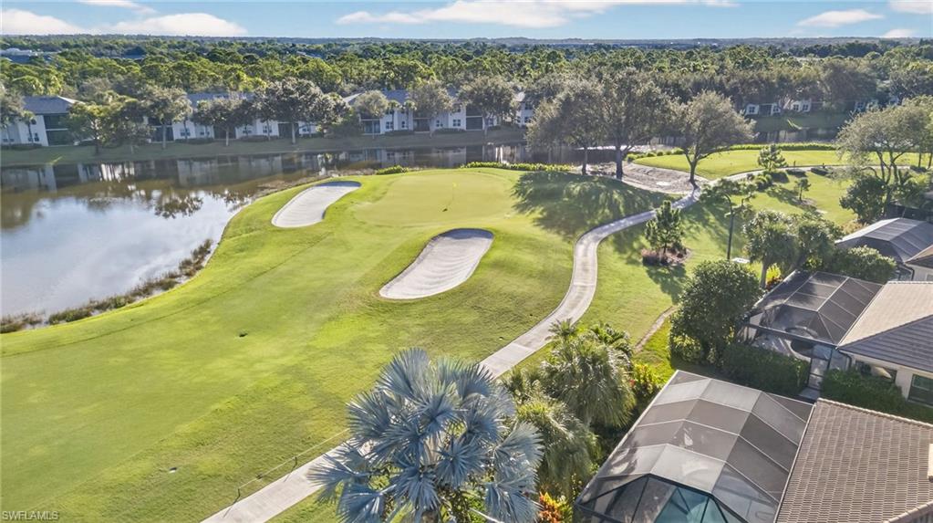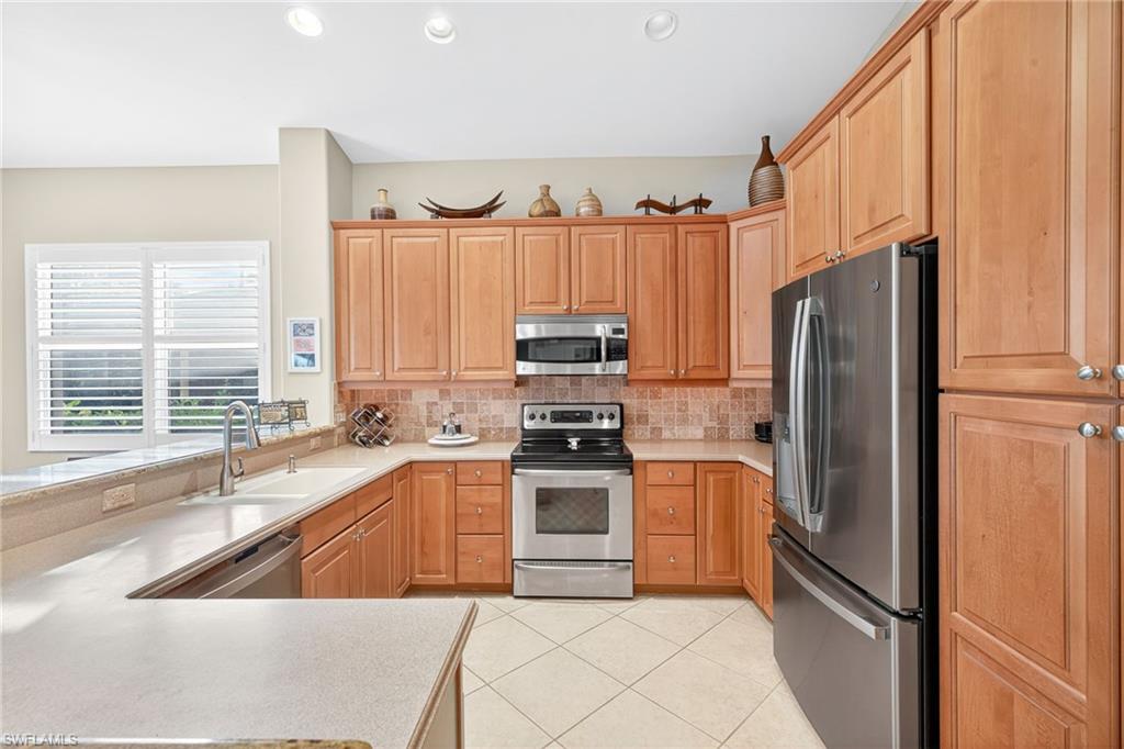 Stunning Greenbriar Floor Plan with Golf Course Views! This popular 3-bedroom plus den with 2 1/2 car garage home offers spacious living and thoughtful upgrades throughout. The open kitchen and great room layout is perfect for entertaining, featuring GE stainless steel appliances, tile backsplash, and a pantry with pull-out shelves. Plantation shutters, honeycomb blinds, and electric blinds on the sliders add elegance and privacy throughout the home. The primary suite boasts a tray ceiling, crown molding, walk in closet with upgraded closet system, and a luxurious bath with a seamless glass shower door and soaking tub. The flexible den includes a pocket door for added privacy, ideal for a home office or guest space. The laundry room is equipped with front-load LG washer and dryer and built-in cabinetry for extra storage. Enjoy effortless indoor-outdoor living on the lanai, where you'll find a sparkling pool, and a newly installed picture frame screen to maximize your view of the golf course. Additional highlights include newer pavers on the driveway, hurricane shutters, and a tankless hot water heater. This home combines comfort, style, and scenic views of the Lakes course fifth hole green. If you are looking for an active lifestyle look no further: 27 holes of Championship golf, 14 pickleball, 8 tennis and 6 bocce courts. State of the art fitness center that is professionally staffed. Pelican Sound is nestled up to the Estero River with access to the Gulf. The community offers dry boat storage, kayaks, canoes and paddle boarding, along with a shuttle boat to Lovers Key State Beach Park. Minutes from RSW International airport and surrounded by fabulous shopping and restaurants. Start Living The Dream!