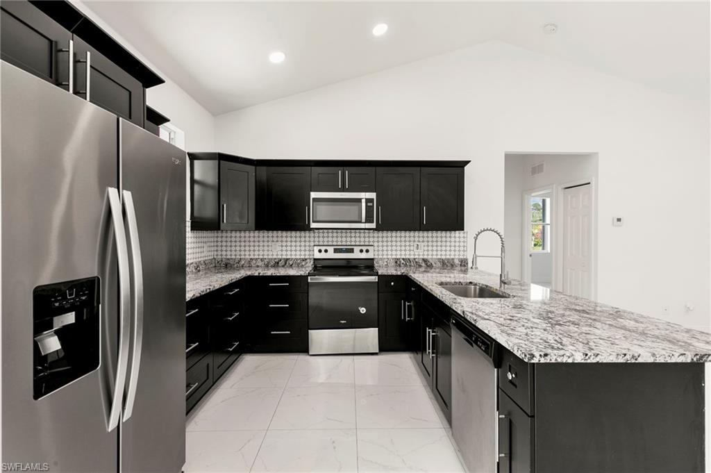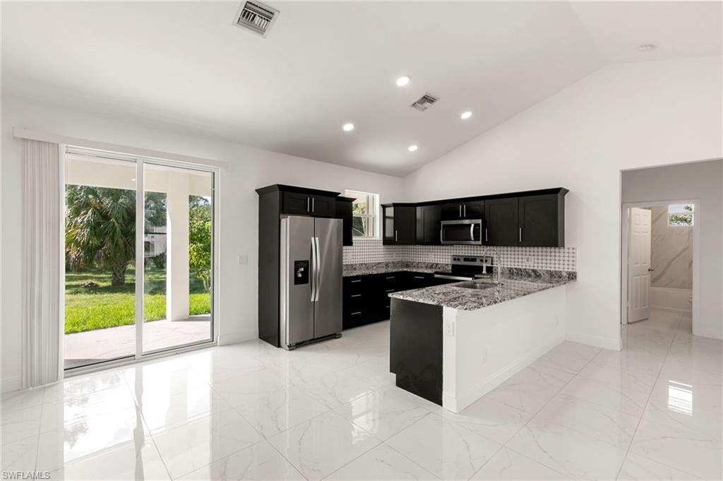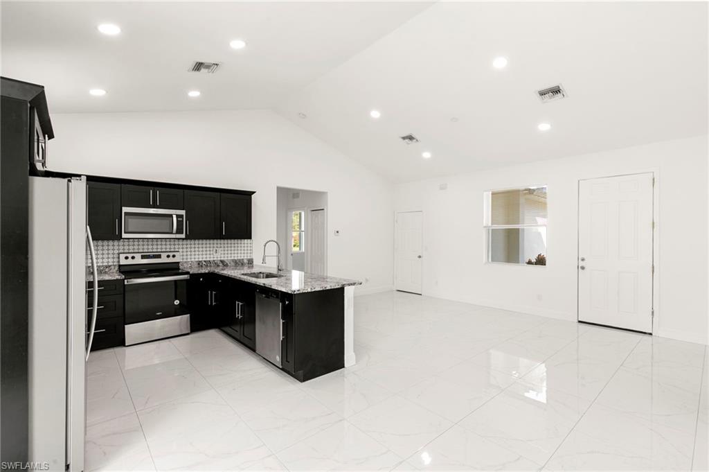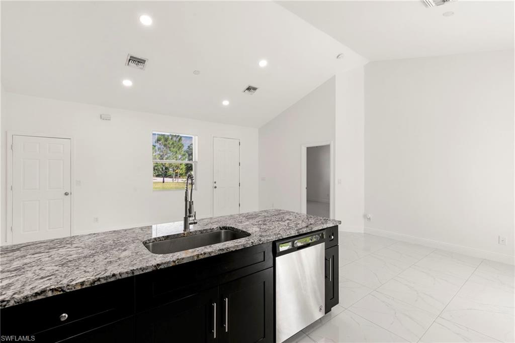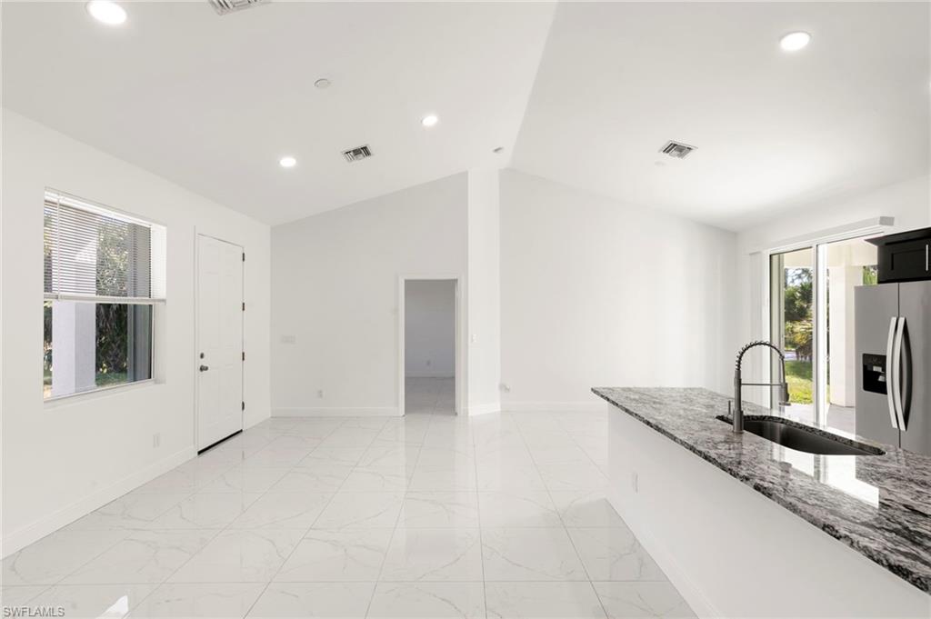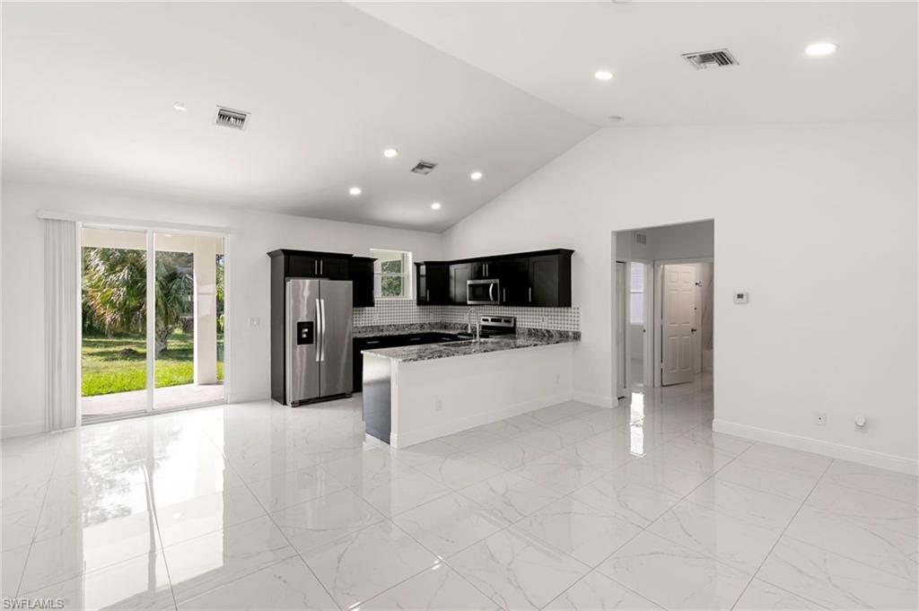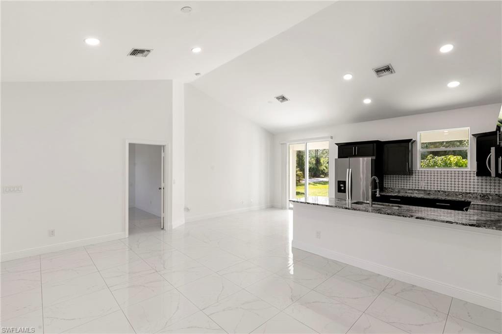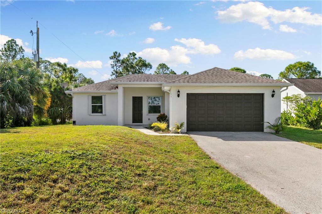 Welcome to 3909 Everglades Blvd, this desirable Estate home in Golden Gate—a slice of the Naples lifestyle offering newer construction and acreage. This move-in-ready, 2020-constructed residence features a bright, open 1,366 SQ FT layout with vaulted ceilings, sleek modern tile, 3 bedrooms, 2 full baths, and a two car garage. Recent 2025 water and air handler upgrades enhance the value of this property. Situated on an expansive 1.64-acre corner lot with NO HOA, freedom exists to build a pool, guest house, or create a dream family compound. Enjoy the peace of the Estates and spacious haven created, while taking advantage of the convenience of shopping, dining, parks, and everyday amenities less than 10 minutes away.