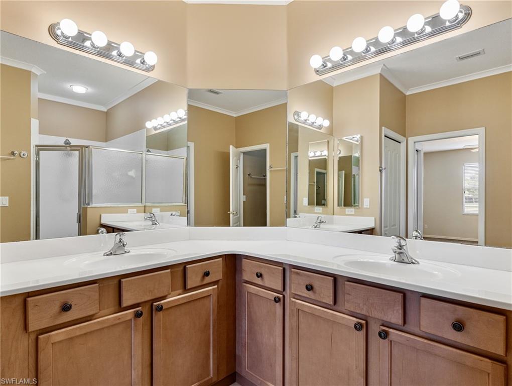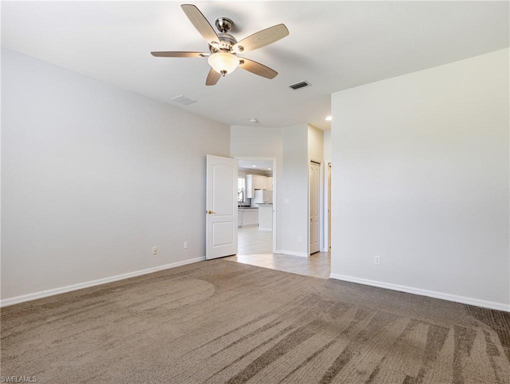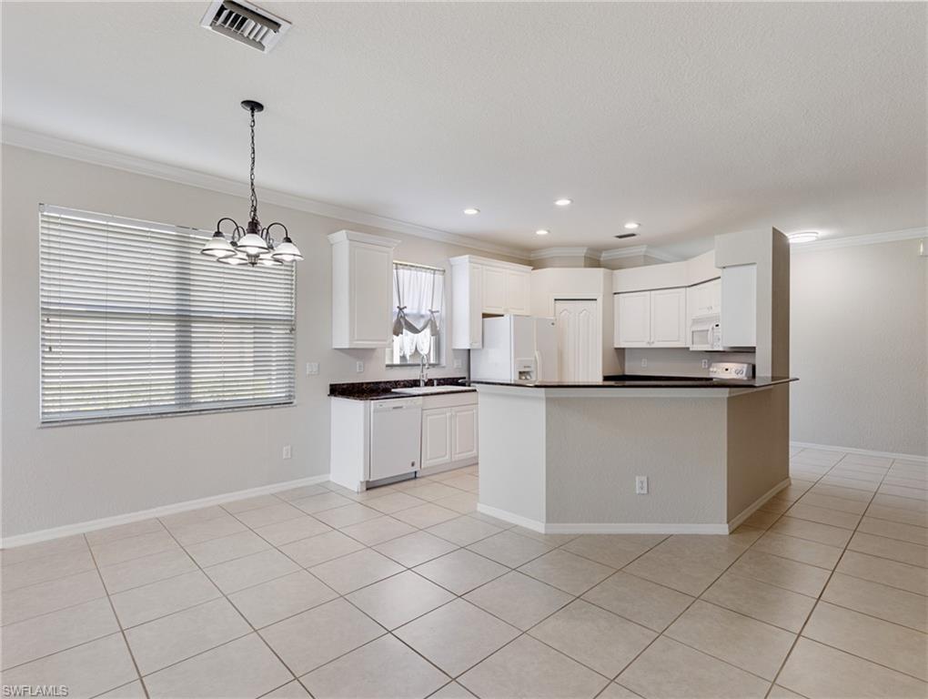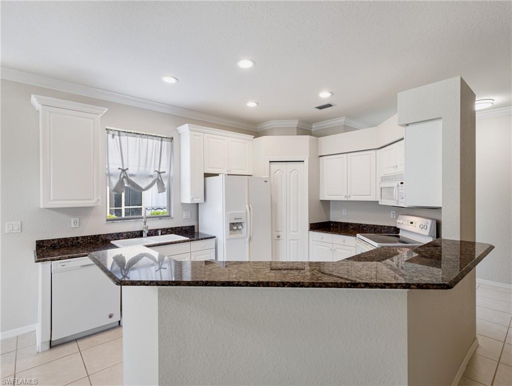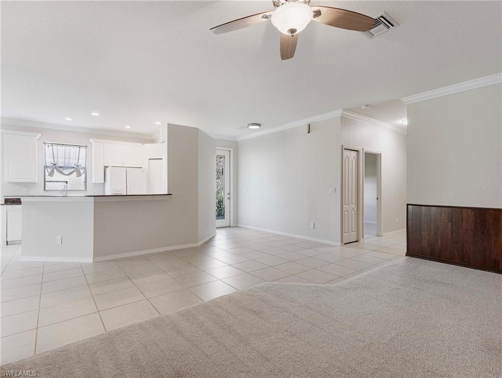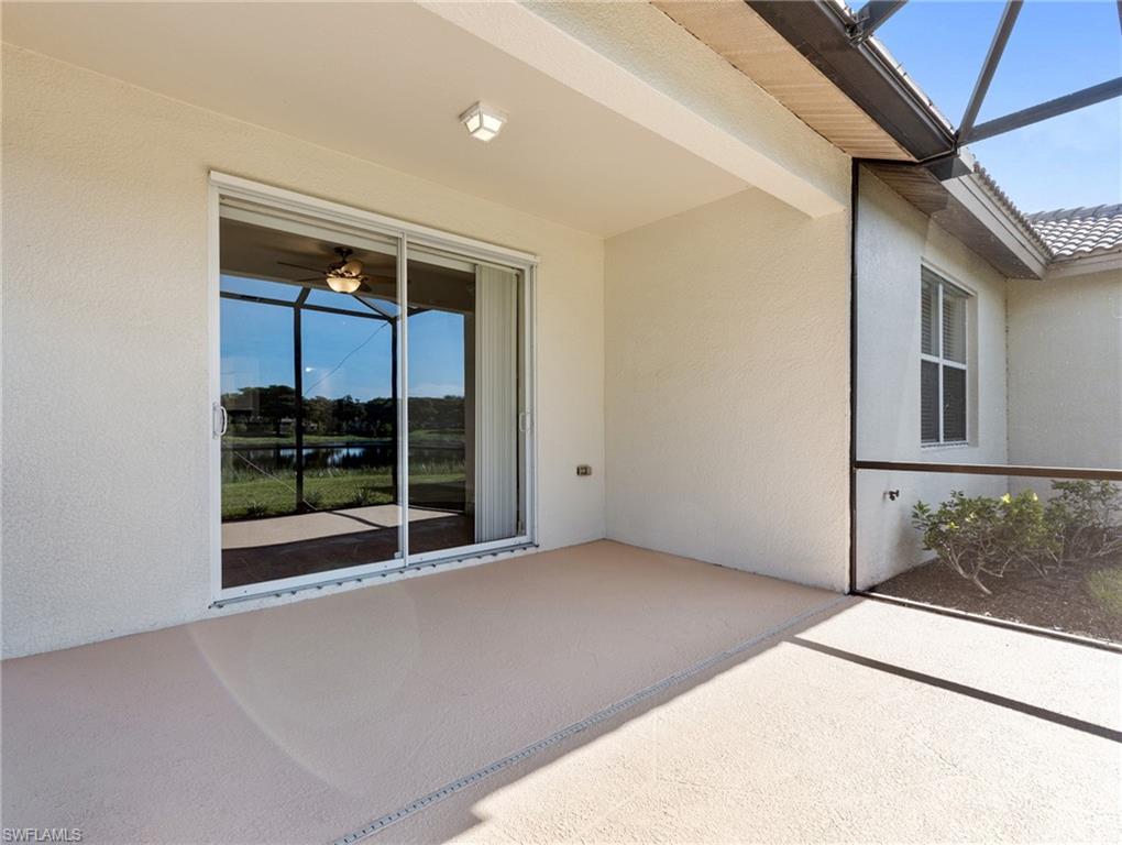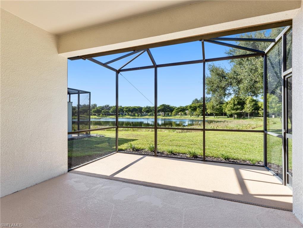 This beautifully maintained villa offers gorgeous lake views and is just steps from the resort-style amenities. Featuring 2 bedrooms, 2 bathrooms, a Flex room and a 2-car garage... this home combines comfort and charm and has been impeccably kept with a freshly painted interior. Features an open concept design with lots of natural light and versatility for furniture setup, including a casual dining nook, possibilities for a formal dining area, family room, open Den concept etc. Also has an extended lanai overlooking beautiful trees and long lake views to enjoy. The primary suite is very spacious and provides dual closets, a linen closet, dual vanities and a walk-in shower. Immaculate, move in ready condition and priced to sell! Low density, low traffic street with cul de sac right in the front of the community with quick convenient access to the gates and resort amenities. Have a look at the HOA fees and what they include, you can't beat the value Bella Terra offers. Nestled on 999 acres with half the community dedicated to lakes and preserves. Features a Resort-style Clubhouse, 24 hr fitness center, activities for all ages, resort pool and spa, shaded children's play area, tennis courts, pickle ball, bocce ball, sand volleyball, multi-use sports fields, tranquil butterfly garden, exercise trails and more. You won’t find a better value in Estero at this price. Don’t miss this incredible opportunity.