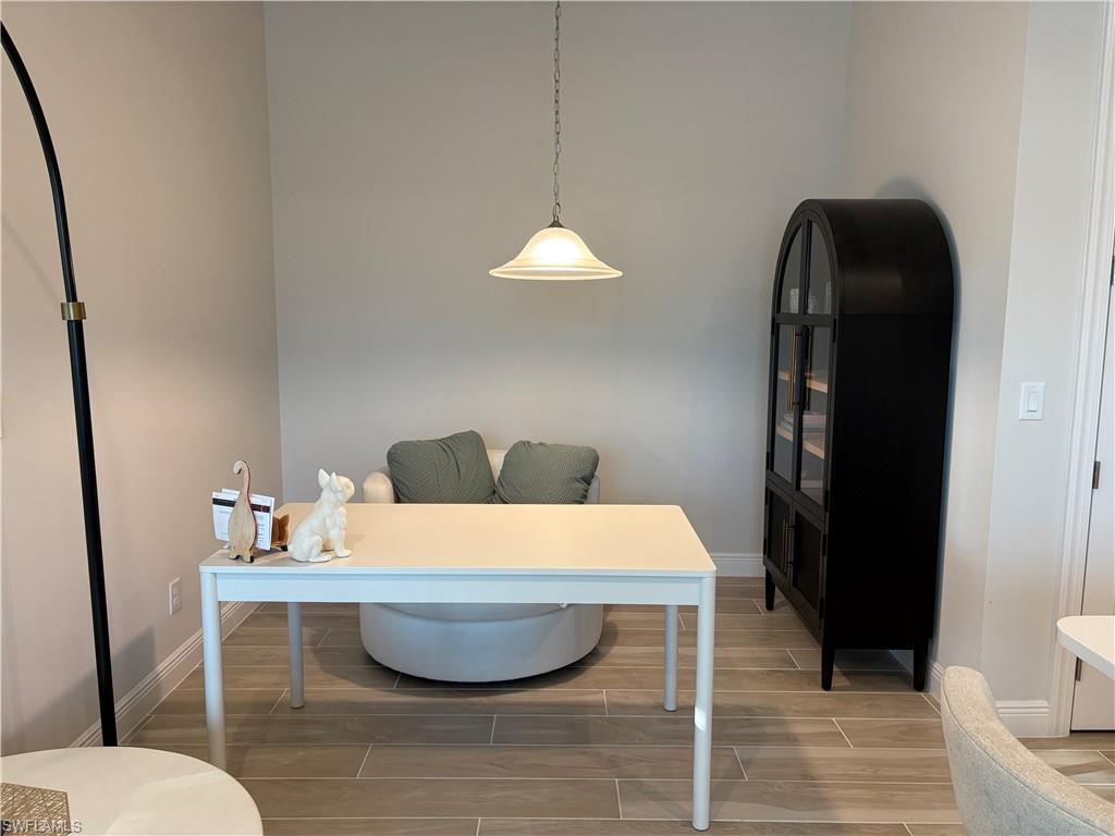 Welcome to Azure at Hacienda Lakes, one of Naples' most sought-after gated communities. This 2022 built corner home blends modern design, low maintenance living, and resort style amenities - all just minutes away from downtown Naples and the white sand beaches of the Gulf. Step inside to an inviting open floor plan with nearly 1600 square feet of light filled living space. The spacious great room flows seamlessly into a gourmet kitchen featuring quartz countertops, stainless steel appliances, custom cabinetry, and a large center island - perfect for entertaining or casual dining. The primary suite offers a peaceful retreat with a walk-in closet and a luxurious en-suite bath with dual vanities and a glass enclosed shower. Two additional bedrooms provide versatility for guests, family, or a home office. The covered lanai opens to a beautifully landscaped backyard with room for outdoor dining or future customization, such as a spool or extended patio. This home has over 50k of builder upgrades including, hurricane impact windows, custom cabinetry in laundry, primary bath and 2nd bedroom for extra storage, flooring, electrical upgraded for fan install, privacy wall on patio, gutter system, and much more. Blank canvas that buyer and still come into adding finishing touches to make it their own. Residents at Azure enjoy, pickleball & tennis courts, resort style pool, clubhouse, fitness center, yoga room, and pool table.