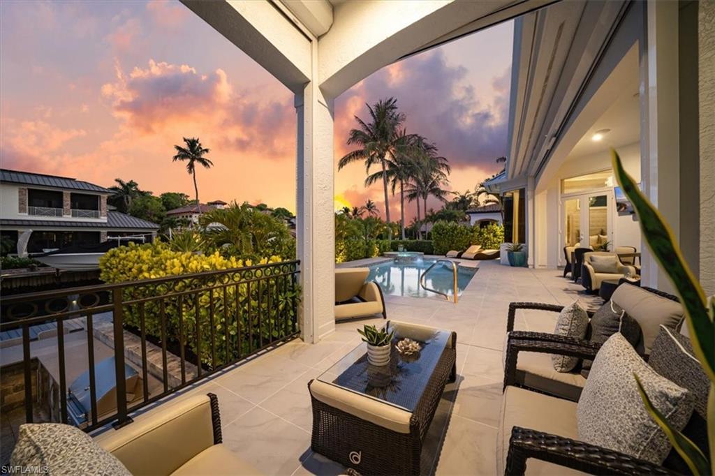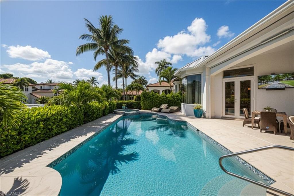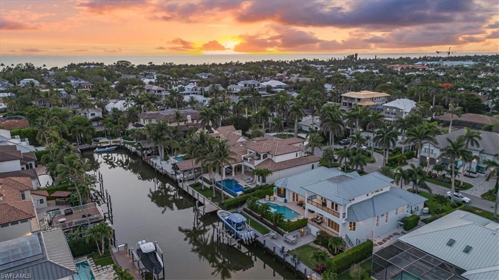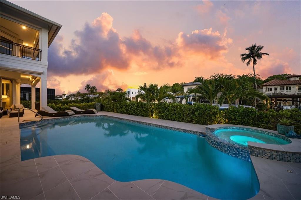 Tucked along a direct Gulf-access canal in prestigious Aqualane Shores, this spectacular estate captures the essence of Naples waterfront living. Offering southern exposure, a new seawall and dock (2023), and a full interior transformation - this home combines timeless coastal design with modern innovation and effortless livability. Designed for those who value refined coastal living, the residence showcases seamless indoor-outdoor flow with a resort-style pool and spa, expansive tiered decking, and an upgraded outdoor kitchen overlooking tranquil water views. Inside, wide-plank oak flooring, soaring ceilings, and elegant millwork create a timeless yet modern aesthetic. The light-filled main level features a grand great room, gourmet chef’s kitchen, and a serene primary suite with direct lanai access, while an additional guest suite provides comfort and privacy. Further highlights include a whole-home generator, upgraded HVAC systems with dehumidifier and garage A/C, new pool equipment, 25,000 lb. boat lift, and all-new televisions throughout. Enhanced landscaping, a comprehensive alarm and camera system, and meticulous attention to detail, inside and out, ensure the home lives as effortlessly as it looks. Just a short walk from Naples’ world-class beaches and the fine dining and boutiques of Third Street South, this Aqualane Shores home exemplifies luxury waterfront living at its finest.