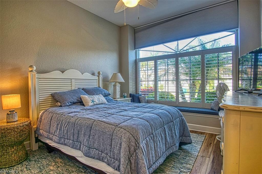 Enjoy spectacular sunsets either at a top-rated beach just 6 minutes away or in the privacy of your own pool and spa overlooking a beautiful lake with a water fountain in your new home. Nestled in a quiet gated community of only 97 homes, it offers a very desirable location with its convenience to most everything. This fabulous well-constructed single family pool home is located in flood zone x500, and has never been flooded. Being offered fully furnished, this 3 bedroom, 2 bathroom, 2 car garage home, with just under 2000 SF of air-conditioned space, is ready for its new owner to sit back and enjoy. Newer features include a tile roof, paint on the interior and exterior, luxury vinyl flooring in guest bedroom, kitchen appliances, and a washer and dryer. Custom upgrades abound with built-in cabinetry in the dining and living rooms, millwork including door casings, baseboards and crown molding, plantation shutters, and a walk-in bath tub. The home lives comfortably with volume ceilings, tray ceilings in dining and living room, tile floors in the main living area, wood floors in two bedrooms, and a wall of sliding doors in the main living area with pool and lake views. The third bedroom has large pocket doors and is the perfect flex space for a study, den, media room, etc. The outside living area within the screen enclosure is so inviting with its mature Oak tree creating dramatic lighting effects over the custom swimming pool, and elevated spa with a waterfall. The reasonable community fees include professional management, a gated community with a clubhouse, exercise room, community pool and spa, land maintenance, internet, and cable service.