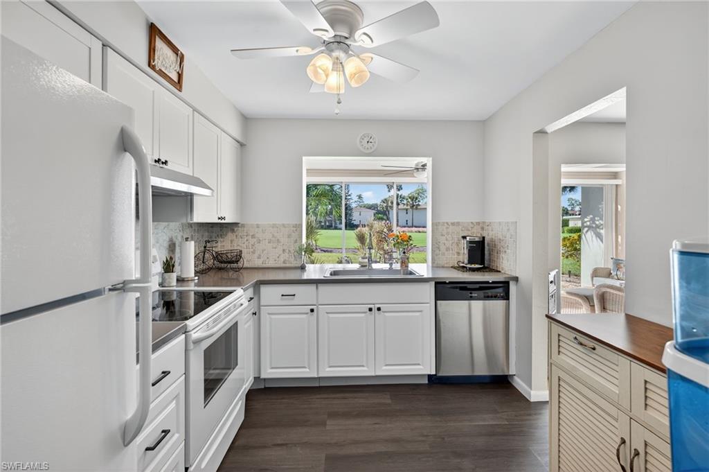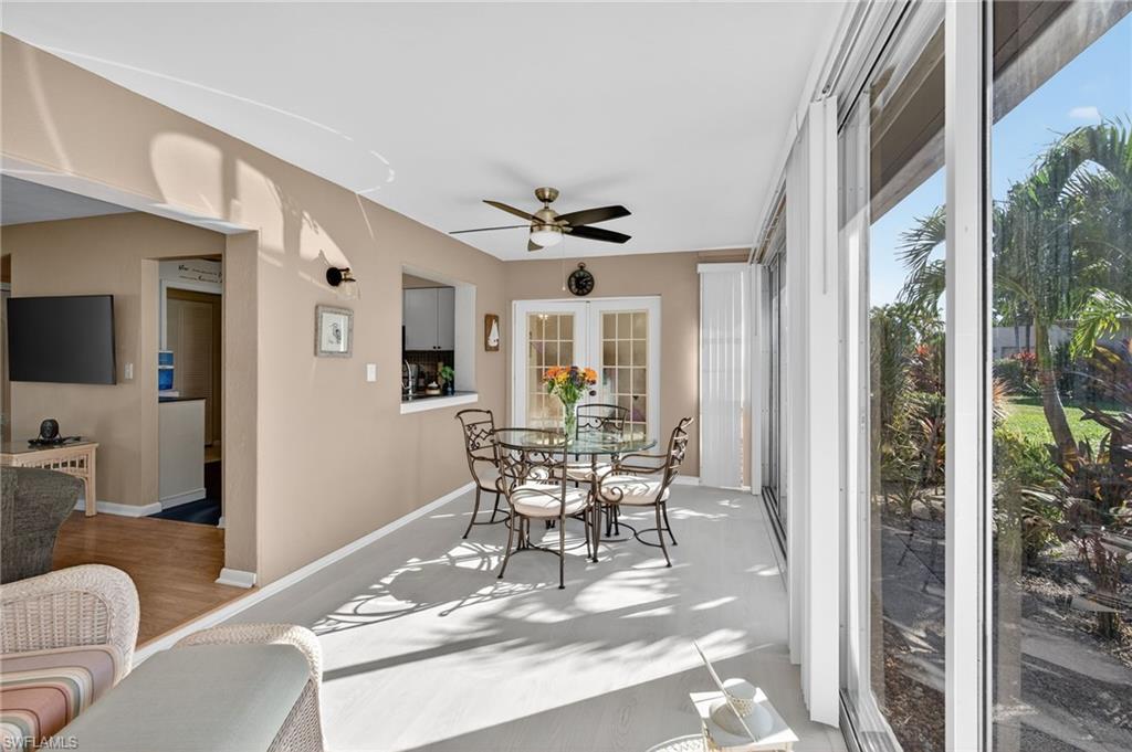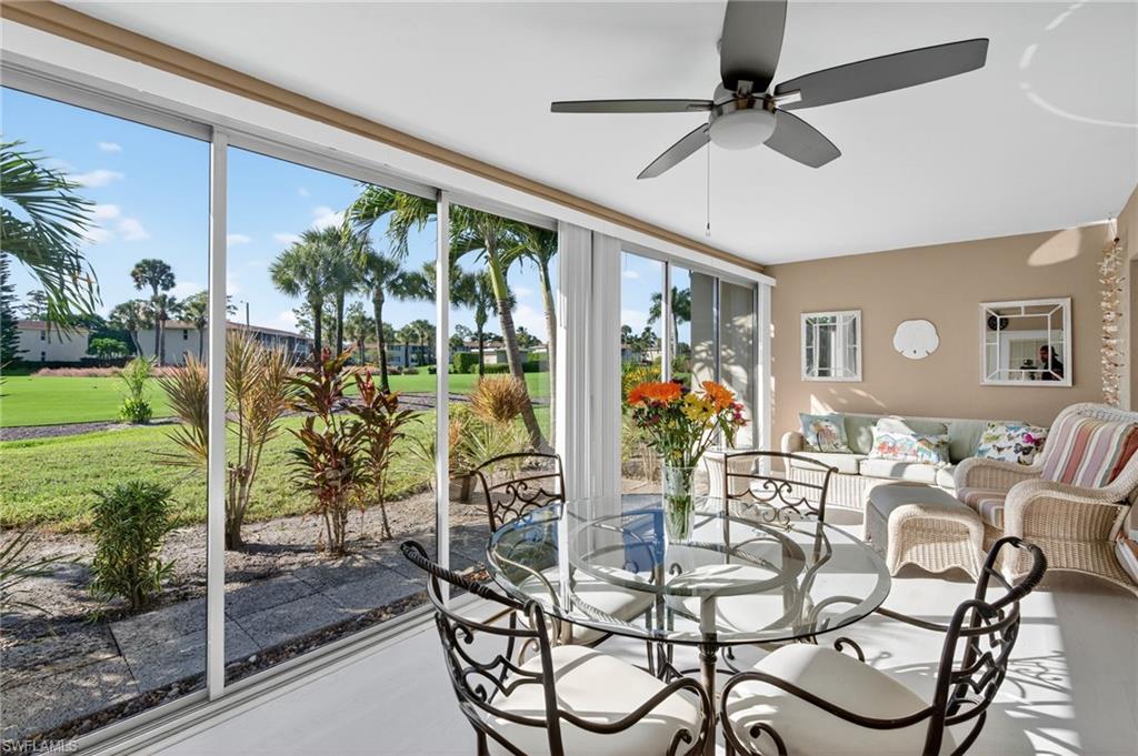 Looking for a 2-bed villa in Lakewood Naples with golf course views and full updates? This turnkey furnished home offers impact doors and windows, a new roof, and low HOA fees—just minutes from beaches, parks, and 5th Avenue. Enjoy golf course views from this beautifully updated 2-bedroom, 1-bathroom villa offering 1,124 square feet of bright, open living space. Recent upgrades include a renovated kitchen and bathroom, newer flooring, newer electrical panel, and a brand new shingle roof. Impact-rated windows and a hurricane-grade garage door add security and peace of mind. The oversized one-car garage includes an in-unit laundry area, extra storage, and a brand new dryer. Outside, the home features a newer private driveway plus extra parking next to the property for added convenience. This property is being sold turnkey furnished—move right in and start living. Low HOA fees cover landscaping, irrigation, fiber optic high-speed internet, and cable. Located in the peaceful Lakewood community, you’re just a short drive to Naples Botanical Garden, county parks, white sand beaches, and the shops and restaurants of Downtown 5th Avenue. Lakewood combines relaxed Florida living with unbeatable access to Naples' best attractions. Don’t miss this opportunity to own a low-maintenance villa with premium upgrades in a central Naples location.