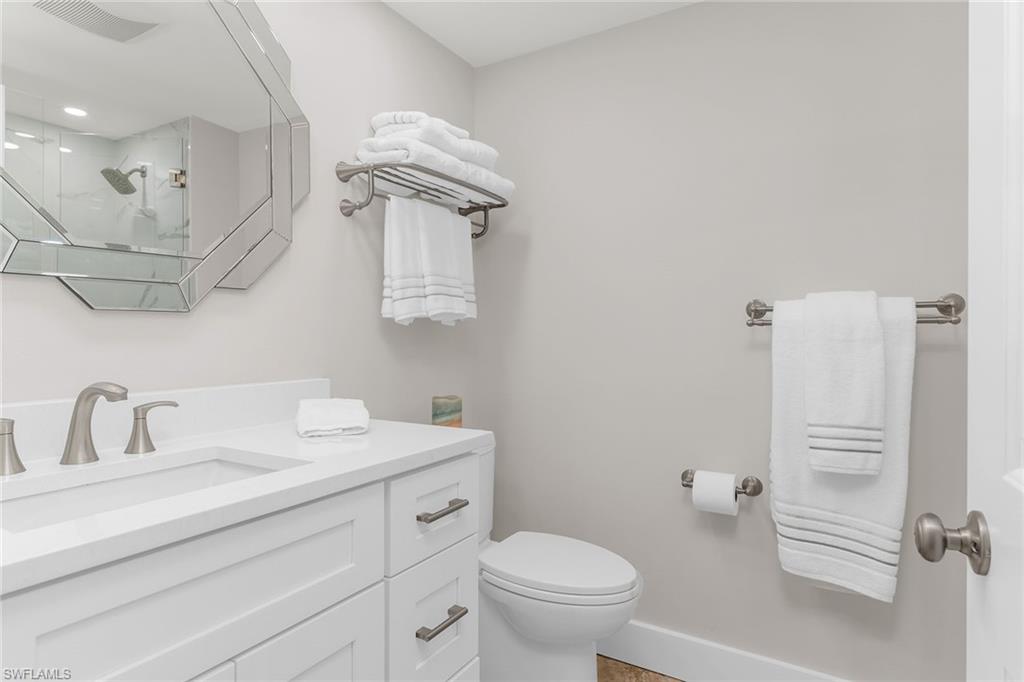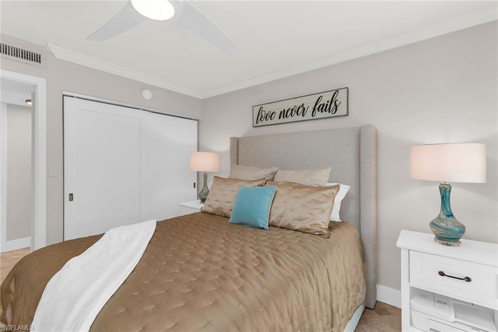 Welcome to L1 at Ville De Marco, a completely renovated and tastefully decorated condominium offering a serene living space on Marco Island. In the charming village of Old Marco, this coastal retreat provides stunning water views and a tranquil oasis setting. The open-concept kitchen features stainless appliances, white cabinetry, and exquisite backsplash creating a bright and inviting atmosphere. Consistent tile flooring runs throughout the property, crown molding complements the modern flat stock baseboards, while impact sliding glass doors and windows allow natural light to fill the space. Every inch of this property has been thought out, including the addition of washer and dryer in unit, with easy living in mind. Residents have access to community amenities such as a pool, fishing pier and clubhouse. Boat docks are available for lease, offering convenient, direct water access for boating enthusiasts. The world-famous Snook Inn is a moment away, as well as all the shopping and attractions Old Marco has to offer. Watch the boats go by and dolphins play just outside your front door! Experience some of the best island living in this peaceful and picturesque setting.