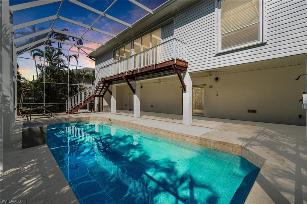 WELCOME TO YOUR SLICE OF PARADISE IN MATANZAS POINTE! Live the ultimate island lifestyle in this stunning 3-bedroom + den (easily a 4th bedroom), 3 full bath coastal retreat perfectly situated in one of Fort Myers Beach’s most exclusive communities. Nestled on a private road and perched on one of the highest elevations on the island, this home offers unmatched peace of mind, privacy, and convenience—just a short stroll to the sugar-sand beach and world-famous sunsets! Step inside and be captivated by the soaring vaulted ceilings, open-concept layout, and abundant natural light that fills every corner. The spacious kitchen is the heart of the home, featuring a large island, breakfast nook, ample cabinetry, and an inviting eat-in bar—perfect for entertaining. A formal dining area offers an elegant space for special gatherings. Designed with comfort and flexibility in mind, this home features two oversized primary suites, each with expansive walk-in closets and private baths. The opposite side of the home offers two additional rooms and a full bath, ideal for guests, family, or a home office. Step outside to experience true Florida indoor-outdoor living. The newly refinished catwalk, balcony, and stairs flow seamlessly to the screened pool area—perfect for soaking in the sun. There’s even room to add your dream outdoor kitchen for year-round entertaining! Downstairs, a massive enclosed garage spans the entire footprint of the home, providing endless space for cars, beach gear, a golf cart, or a future fitness or game room. Whether you’re searching for a luxury full-time residence or a high-end vacation getaway, this home delivers the perfect blend of elegance, space, and location! Matanzas Pointe—where island tranquility meets timeless coastal living. Paradise is calling—will you answer?