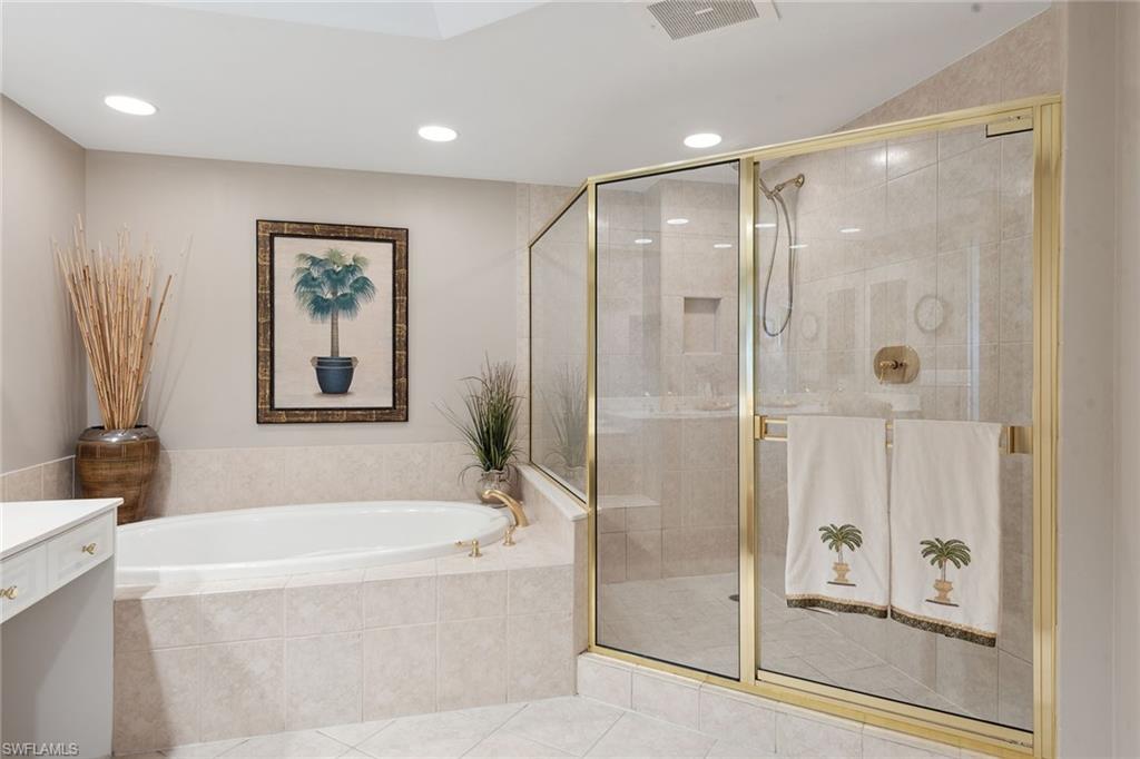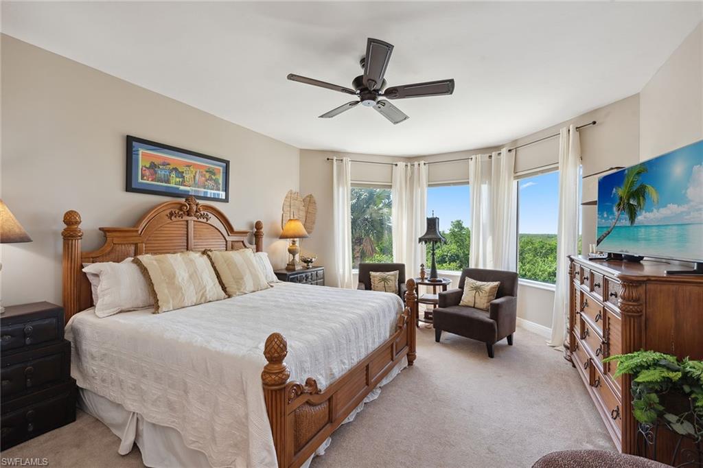 All HOA fees will be paid by seller until end of 2025. This stunning second-floor end unit at Aversana in Hammock Bay Golf and Country Club offers 2,800 square feet of luxurious living space with serene, lush tropical views and lanai access from every room, showcasing breathtaking sunrise and sunset views. The split bedroom floor plan features three bedrooms, three full baths and a powder bath, providing privacy and comfort for all. A private elevator opens into an elegant foyer with a tray ceiling, chandelier and double-door entry that welcomes you into a spacious, open layout. The main living areas are enhanced by tile flooring and sliding doors in the living room that open to a screened lanai, ideal for enjoying the peaceful surroundings with added convenience of storm protection through impact doors and windows. The kitchen is a chef’s delight, featuring recessed and under-cabinet lighting, tray ceilings and wooden cabinets. It boasts stainless steel appliances, including a wall oven, microwave and refrigerator with icemaker, as well as an electric cooktop. A spacious breakfast counter adds convenience, while the adjacent cozy breakfast nook and family room offer private views, ideal for casual dining or relaxation. A formal dining room with a custom ceiling provides an elegant space for hosting dinner parties. The expansive owner’s suite offers direct lanai access, a large walk-in closet with custom shelving, and an en-suite bath complete with dual vanities, a makeup counter, a full-width mirror, a walk-in shower with a glass enclosure and a separate soaking tub. Both guest bedrooms share access to a private open lanai and feature en-suite baths, one with a walk-in shower and the other with a shower tub combo, both beautifully tiled from floor to ceiling. Additional conveniences include a well-appointed laundry room with white cabinetry, a utility sink, ample storage space, and GE washer and dryer. Two garage parking spaces and additional storage ensure security and convenience. Residents of Aversana enjoy a wealth of amenities, including a newly remodeled grand lobby, resort-style pool and spa with a pavilion, fitness center, sauna, theater, social room and two hotel-inspired guest suites for hosting visitors. The community is pet-friendly and ideally just minutes from Marco Island and a short drive from Old Naples, where you can explore pristine beaches, fine dining and boutique shopping. Living here offers the ideal blend of luxury and functionality, making it an unparalleled lifestyle in one of Naples sought-after communities.