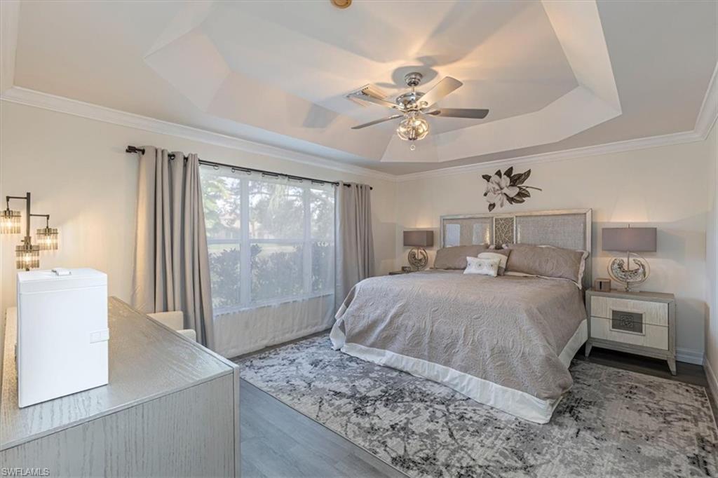Experience refined Florida living in this beautifully maintained single-family home located in the desirable gated community of Saturnia Lakes. This light and airy residence offers 2 bedrooms plus a Den (easily can be converted to another #3bedroom); 2 bathrooms, 2 car garage, and a spacious open floor plan designed for both comfort and style. Enjoy serene lake views from your screened lanai, the perfect spot to unwind and take in breathtaking sunsets over the water. The den can easily be converted into a third bedroom, providing flexibility for guests, a home office, or additional living space. Inside, you’ll find high ceilings, tile flooring throughout main areas, plush carpeted bedrooms, and a bright kitchen with granite countertops, stainless steel appliances, and ample cabinetry. The owner’s suite features a coffered ceiling, large walk-in closet, and a luxurious en-suite bath. This elegant home also includes a two-car garage and lush tropical landscaping for enhanced privacy. Residents of Saturnia Lakes enjoy resort-style amenities including multiple swimming pools, a grand clubhouse, fitness center, tennis courts, walking trails, and more—all within a beautifully landscaped, guard-gated community. The property is situated in a top-rated school zone (Laurel Oak Elementary, Oakridge Middle, and Gulf Coast High). For added peace of mind, an American Home Shield Warranty is offered at closing. This is your opportunity to live the Naples lifestyle in one of the area’s most sought-after communities—where elegance, comfort, and stunning lake views come together perfectly.
