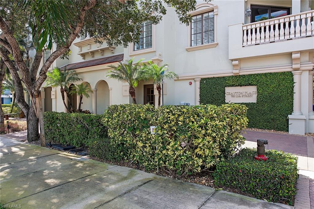 A rare offering, this expansive penthouse at Crayton Place is one of only three residences in the building, presenting an exclusive opportunity in the heart of Olde Naples. Boasting 2,955 square feet of light-filled living space, the open, airy floor plan features a spacious living area that flows seamlessly into a chef-inspired kitchen with custom white cabinetry and a large center island with Taj Mahal countertops and ample seating, complemented by a formal dining room and covered balcony. The luxurious primary suite offers dual walk-in closets, dual sinks, free-standing tub, a large shower, a water closet and bidet. Two additional guest suites each include en-suite baths and walk-in closets, while a den with soaring ceilings and a cupola adds character and abundant natural light, accompanied by a powder room. Additional highlights include two assigned under-building garage spaces, a pet-friendly policy allowing two pets, two new water heaters, and the building’s full renovation in 2012, with every detail so modern it feels new. Adjacent to Shoppes at Dockside, with easy access to restaurants, marinas, Tin City, Cambier Park with tennis courts and Fifth Avenue South for world-class dining, boutiques, galleries and events. Two blocks from The Avenue, a new planned 75,000-square-foot retail and dining destination anchored by world-class brands and renowned culinary talent, estimated for completion in spring 2027. Beaches and all that Old Naples offer are nearby. Private memberships may be available at Naples Bay Club with a resort-style pool, fitness and more, or Naples Boat Club with boat slips, clubhouse, pool and Gulf access with no bridges. This oversized penthouse is a rare opportunity to enjoy the best of downtown Naples living.
