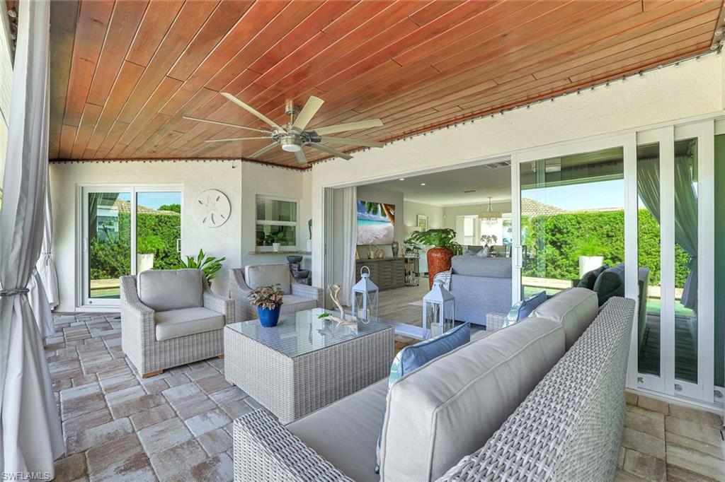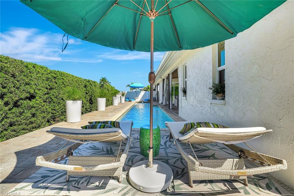 Welcome to this island sanctuary, where charm and elegance meet island living. Wood tile floors and a panoramic view of the pool greet you as you enter this 3-bedroom, 2-bath home. This home, located on a large corner lot, is a pocket of luxury, featuring an updated kitchen, with granite countertops and stainless-steel appliances. Imagin savoring your morning coffee on your private patio surrounded by beautiful green privacy hedges overlooking a beach style pool and surrounded by beautiful green privacy hedges...or, on a cold night, sitting around the fire pit enjoying a hot toddy with friends and family. This home is a must see!