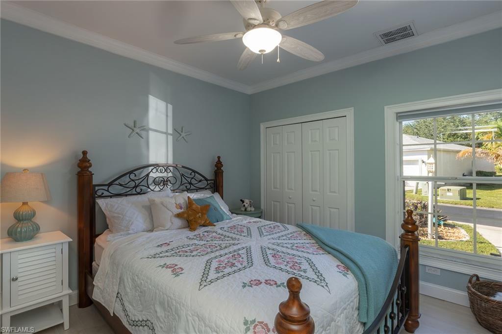 Rarely available waterfront views enhance the serenity of this lakefront residence, offering two-bedroom residence with den, two full baths and a two-car garage. Thoughtfully updated with crown molding, hardwood and tile flooring throughout the home. A newer roof (2023), HVAC (2023), water heater (2023) and hurricane shutters (2024), this home is designed for comfort and sustainability. Within The Island Club is a gated enclave of 250 single-family homes surrounding 23-acre lake residents enjoy exclusive access to a lakefront clubhouse, community pool, spa and fitness room, along with tennis, pickleball, shuffleboard and scenic recreational trails. Ideally just minutes from Gulf beaches, Florida Gulf Coast University, RSW International Airport, and premier shopping and dining at Coconut Point, this home offers effortless access to Southwest Florida's desirable attractions. No flood insurance is required.