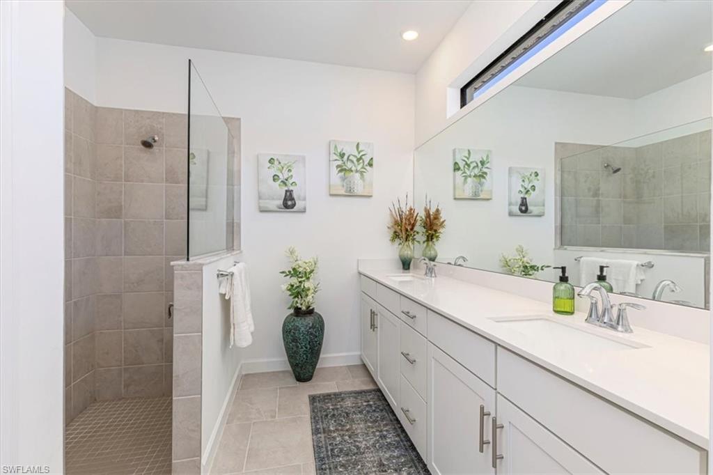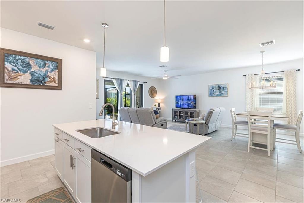 Discover this beautiful 4-bedroom, 3-bath home in Verdana Village, one of Southwest Florida’s most sought-after communities. Spanning nearly 2,100 sq. ft. of interior space plus an additional 1,000 sq. ft. of outdoor living, this home perfectly blends modern design, comfort, and resort-style living. Enjoy an open floor plan filled with natural light, ideal for entertaining or relaxing. The kitchen features quartz countertops, stainless steel appliances, gas stove, sleek cabinetry, and a perfectly sized island with bar seating and over sized pantry. The spacious primary suite offers a large walk-in closet and a luxurious en-suite bath with dual sinks and a walk-in shower. Step outside to your screened lanai and take a dip in the saltwater pool with multicolor LED lighting, surrounded by privacy hedges for your own private oasis. Upgraded feature no-seem lanai screen to keep all the bugs at bay. Additional features include impact windows and doors, tile flooring throughout, Belgard decorative pavers, insulated garage with overhead storage, tankless gas water heater, and screened front entry. Situated on the main residential street, you’ll enjoy quick, easy access in and out of the community. Residents of Verdana Village experience unmatched amenities, a clubhouse, resort pool and spa, 24-hour fitness center, indoor sports courts, tennis, pickleball, basketball, bocce courts, dog park, and playground. This home also includes exclusive access to the West Amenity Center, featuring a lap pool, spa, fitness center, and clubhouse for an elevated, private experience. The HOA covers lawn care, irrigation, and mulching, allowing for true low-maintenance living. Conveniently located near shopping, dining, top-rated schools, and Gulf beaches, this home offers the best of modern, vibrant, and move-in-ready Estero living.