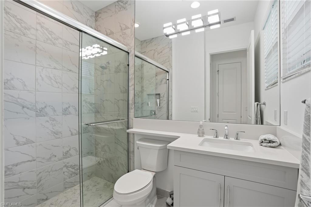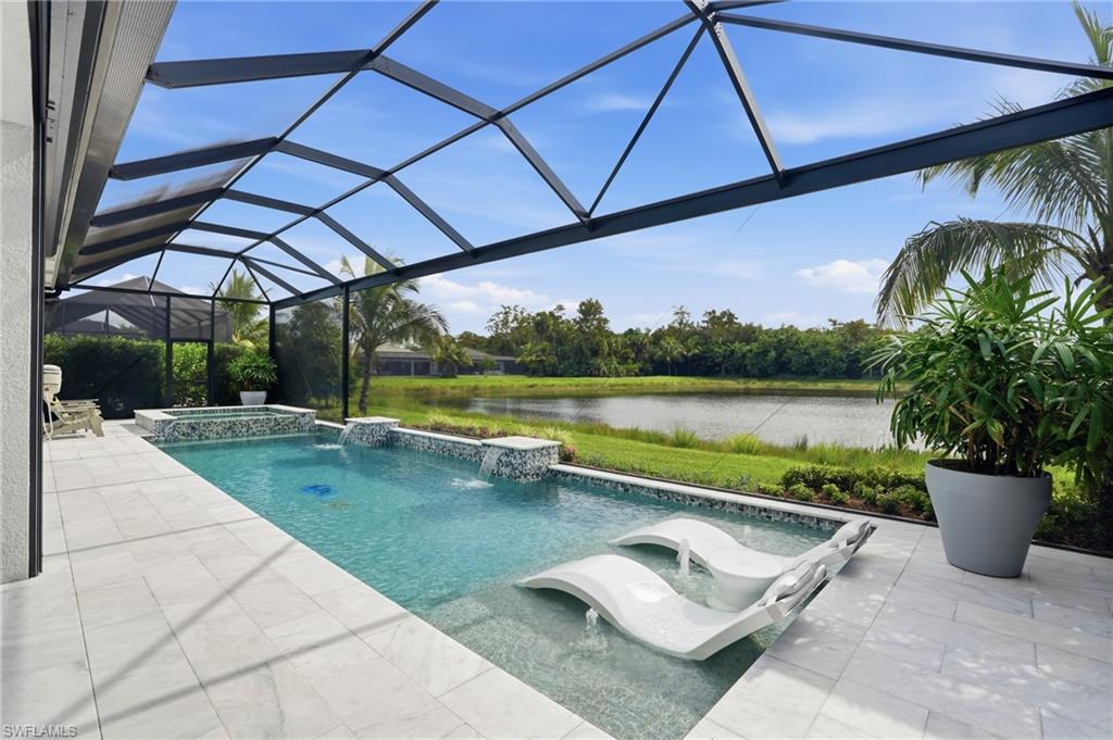 Welcome to this stunningly upgraded contemporary home perfectly situated on a peaceful pond in the prestigious Valencia Trails 55+ community. Designed for both comfort and sophistication, this Captiva Model by GL Homes offers 4 spacious bedrooms, 4.5 bathrooms, and overflows with high-end designer touches throughout. Step through the front doors into an inviting, light-filled interior that showcases an open-concept layout, luxury white-oak vinyl flooring, and seamless indoor-outdoor transitions. The gourmet kitchen is a true centerpiece, featuring sleek quartz countertops, a grand island, wine refrigerator, and premium appliances ideal for entertaining or enjoying everyday moments in style. Home chefs will love the option of either a natural gas or induction stovetop, offering flexibility for every cooking preference. Built as a natural gas powered home, this residence combines modern luxury with energy efficiency. The primary suite serves as a private sanctuary with two custom walk-in closets, an additional shoe closet, dual sinks, and an expansive walk-in shower. Each guest bedroom offers its own custom walk-in closet and en-suite bath, ensuring comfort and privacy. The home also features Robb & Stucky window treatments, upgraded mirrors, bespoke light fixtures, and custom designed barn doors, all enhancing its distinctive contemporary charm. Crown molding throughout adds a refined finishing touch. Step outside to an extended screened-in lanai overlooking the shimmering pond, your personal oasis for relaxation and entertainment. Enjoy the saltwater pool and an outdoor kitchen complete with a built-in grill, full-size ice maker, and two refrigerators, along with a gas fireplace that sets the perfect ambiance for evening gatherings. Automatic hurricane shutters provide added safety and convenience. The A/C-equipped two-car garage and a separate single-car garage offer ample storage and flexibility. Life at Valencia Trails offers an exceptional array of resort-style amenities designed to elevate every day. Just beyond your doorstep, a community-wide bike and walking path winds gracefully around picturesque lakes and peaceful ponds, perfect for morning strolls or leisurely rides through the beautifully landscaped scenery. The state of the art clubhouse features a fitness center, restaurant, and poolside bar, complemented by multiple club pools, including a resistance pool. Embrace an active lifestyle with tennis, pickleball, and bocce courts, or unwind at the full-service spa. Additional amenities include dog parks for large and small breeds, cooking classes, a billiards and card room, and even a theater. Located just 3 miles from Founder’s Square, where you’ll find an abundance of dining and shopping options, and less than 15 miles from the beach, this home provides the perfect blend of tranquility, luxury, and convenience. Welcome home to Valencia Trails, where every day feels like a vacation.