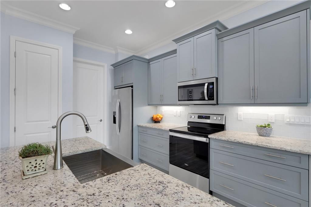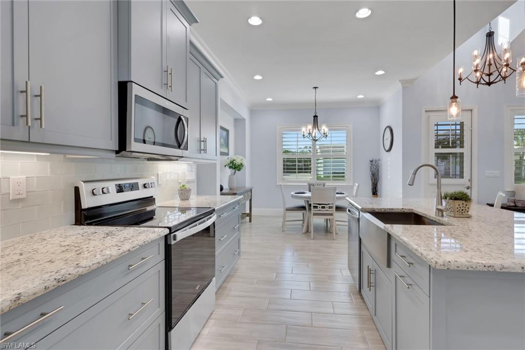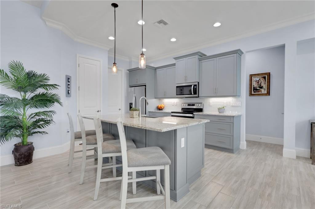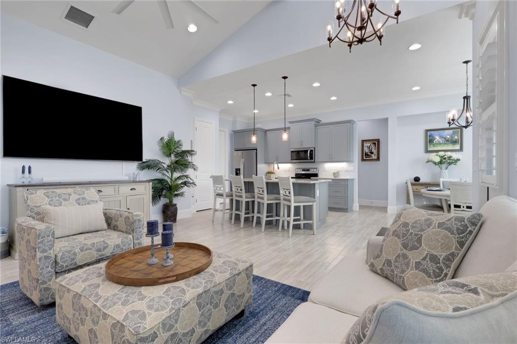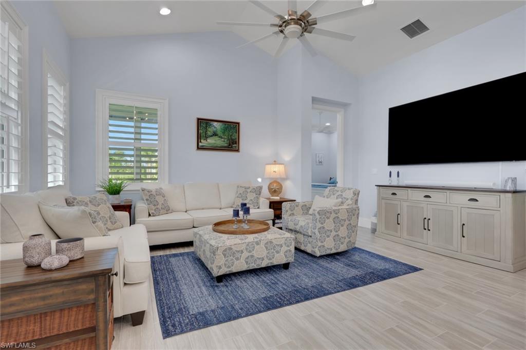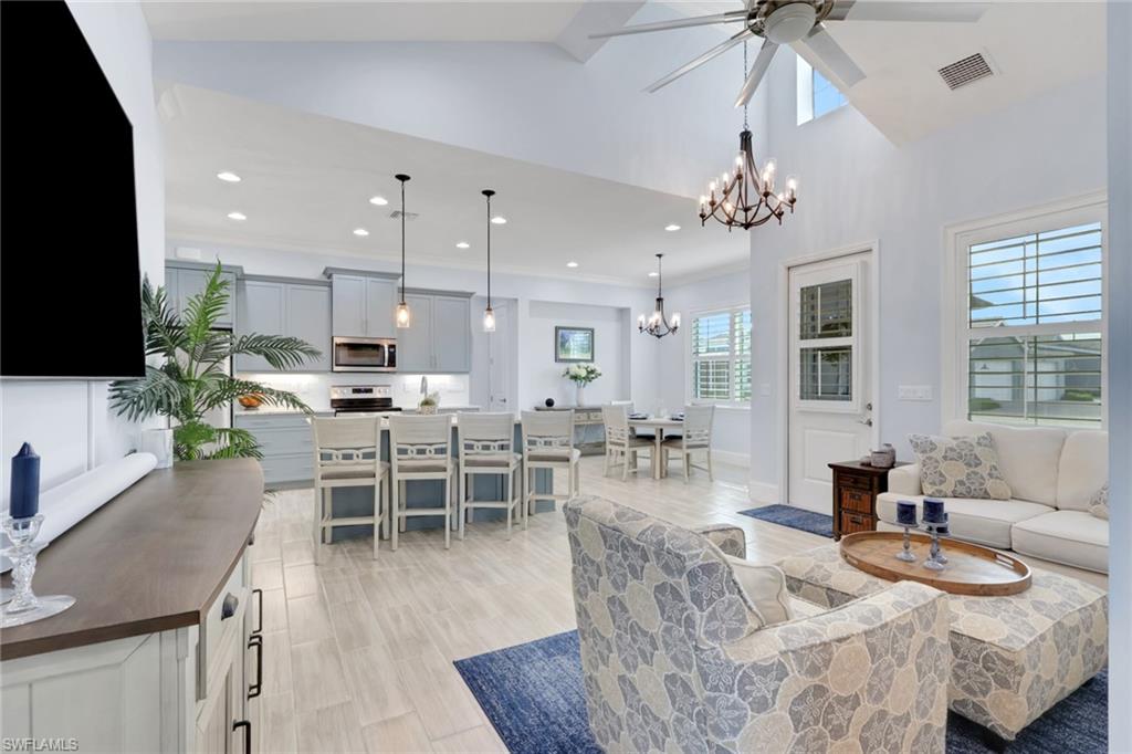 Experience the epitome of coastal elegance in this beautifully appointed 2bd+den, 2ba end-unit corner residence, perfectly positioned to capture breathtaking sunsets from your private screened porch. Designed with a focus on luxury and comfort, this home offers an effortless blend of coastal charm and refined living. Step inside to an expansive living room with a soaring vaulted ceiling, where natural light cascades across the open floor plan, highlighting the designer tile flooring and custom-upgraded baseboards throughout. Every detail has been thoughtfully curated—from the premium cabinetry and plantation shutters that enhances each space to the seamless flow that invites relaxation and entertaining alike. The attached two-car garage is equally impressive, featuring a high-end epoxy floor and built-in custom storage, ensuring both practicality and polished style. Outside, professionally designed landscape lighting accentuates the home’s architectural beauty and enhances its captivating curb appeal. Situated in an exclusive coastal enclave, this property offers tranquility, sophistication, and convenience—making it the ideal full-time retreat or luxurious seasonal escape. For those seeking a truly turnkey experience, furnishings are available for purchase, allowing you to move in and immediately embrace the elevated coastal lifestyle.The Isles of Collier Preserve is a premier gated community that embodies the refined yet relaxed Naples lifestyle. Residents enjoy exceptional amenities, including a resort and lap pool, fitness center, pickleball and tennis courts, bocce, a waterfront restaurant, kayaking, and miles of scenic biking and walking trails. Ideally located just four miles from iconic 5th Avenue South, it offers effortless access to fine dining, boutique shopping, vibrant entertainment, and Naples’ renowned white-sand beaches.