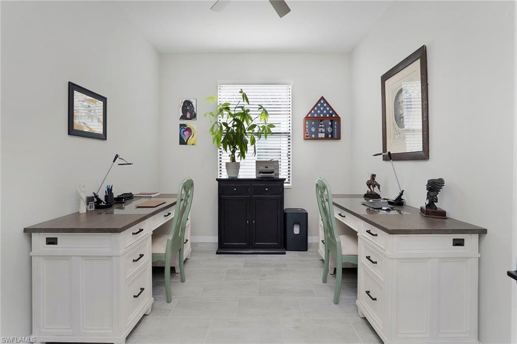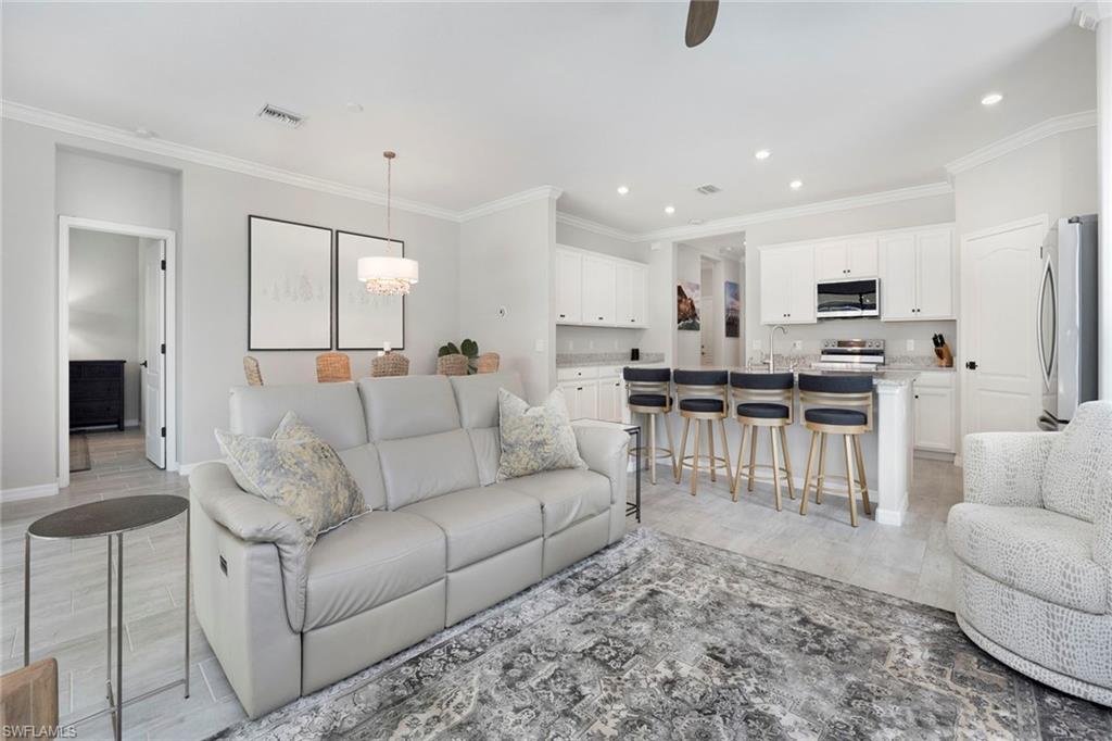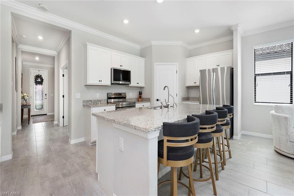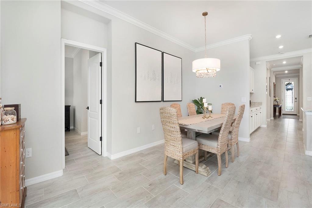 Experience refined living in this immaculate and elegantly appointed Marsala model, offering three bedrooms plus a den (optional fourth bedroom) and three full baths. On a premium homesite, this residence captures stunning lake and nature preserve views, creating a serene backdrop for the most dramatic evening sunsets. Go outside to your private outdoor oasis featuring one of the largest lanais in the neighborhood with an impressive 30 feet deep cage with no-see-um screens. The spectacular 2023 custom-designed pool is the centerpiece, complete with four soothing hydrotherapy body jets and relaxing sun shelf. Inside, the gourmet kitchen is a chef’s delight with an oversized breakfast bar, granite countertops, newer premium stainless-steel appliances, stylish dining chandelier and spacious walk-in pantry. The open-concept layout flows effortlessly into the great room, creating a bright, inviting space ideal for gatherings. The luxurious primary suite offers sweeping lake and preserve views, complemented by a spa-inspired bath featuring dual vanities, large walk-in shower, soaking tub, private water closet and dual walk-in closets. Two additional guest rooms, including a private en-suite with full bath, ensure comfort and privacy for guests. Throughout the home, meticulous upgrades elevate every detail, from upgraded interior door hardware and hinges to elegant crown molding, recessed lighting and stylish tile flooring throughout (no carpet). Valuable upgrades include a Culligan water filtration system, a whole-house surge protector, upgraded electrical for generator hook-up, wall-mounted televisions, window blinds throughout, seven ceiling fans and a well-appointed laundry facility. Additional premium features include hurricane shutters for all windows and doors, a durable epoxy-coated garage floor, heavy-duty storage shelving with 800-pound capacity, and an elegant brick paver driveway and entryway. Artesia is one of Naples sought-after upscale gated communities, known for its luxurious amenities and active lifestyle. The definition of peaceful living, Artesia is along the southern and western edges of Rookery Bay, a protected national estuarine reserve, where the community enjoys a rare kind of serenity surrounded by peaceful nature. Just minutes from beaches of Naples and Marco Island, Artesia offers a boutique setting where natural beauty and convenience meet. The modern clubhouse hosts lively community social events and features a resort-style pool, three pickleball courts, two bocce ball courts, billiards, fully equipped gym and movie theater. Residents also enjoy exercise and craft classes, as well as beautiful lakeside walking path and dog parks. Short drive from downtown Naples and Marco Island, this home offers the best of both worlds like a peaceful, luxurious community and proximity to vibrant local attractions. HOA fee includes cable/internet. No CDD fee. Click link for 3D tour and floor plan.