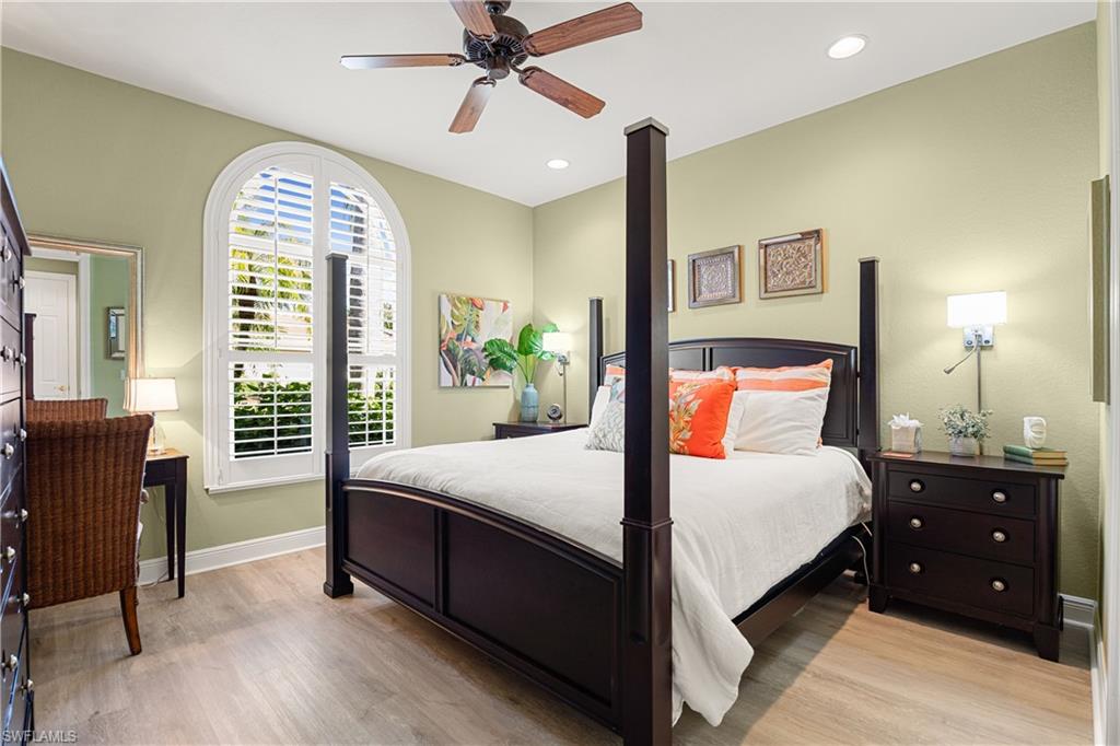 Calling all golfers! This exceptional Toll Brothers built home offers the rare opportunity for an IMMEDIATE TRANSFERABLE GOLF MEMBERSHIP to Palmira Country Club, one of Southwest Florida’s most desired 27-hole championship courses, accessible via your own private golf cart. Absolutely stunning and move-in-ready, this beautifully updated residence is designed for both luxury and comfort, showcasing timeless elegance with soaring tray ceilings, refined finishes, and the ultimate rear view overlooking the lake, wooden bridge, and perfectly manicured green of hole number five on the Egret course. With its premium Western exposure, you’ll enjoy breathtaking sunset views from your resort-style outdoor living area. The recently redesigned kitchen features light cabinetry, sleek new counters, and a full suite of premium appliances, perfectly complemented by upgraded lighting and new flooring throughout. Step outside to your private saltwater pool with a new pump and heater, enhanced by custom landscape lighting and extended lanai privacy walls, creating an ideal setting for entertaining or peaceful evenings at home. Thoughtful updates include a newer roof, water heater, HVAC system, and reimagined primary suite closets. Even the garage impresses with an epoxy finished floor and smart storage solutions. As a resident of Palmira, you will enjoy access to world-class amenities at the Renaissance Center Club, including a heated lagoon-style swimming pool, a 75 ft. Olympic lap pool, and a state-of-the-art fitness center. The club also features a restaurant open to all residents, a variety of fitness classes, 8 lighted tennis courts, 5 bocce and 4 pickleball courts, and a spacious dog park. A full calendar of social events fosters a vibrant and active lifestyle, while Palmira’s beautifully landscaped grounds, lakes, rolling fairways, and 27-hole championship golf course provide a serene backdrop for this extraordinary home and community. Schedule your private tour today, and experience this incredible offering in-person.