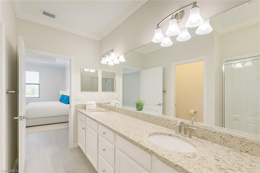 This beautifully upgraded PRINCETON MODEL by Lennar offers over 2,200 square feet of SINGLE-STORY LIVING with 4 BEDROOMS, 2 FULL BATHROOMS, and a 3-CAR GARAGE. Set on an OVERSIZED PIE-SHAPED LOT, this home combines modern convenience with timeless Florida style. The exterior features a STONE ELEVATION, GLASS FRONT DOOR, and KEYLESS ENTRY. Inside, TILE FLOORING runs throughout, and the MAIN LIVING AREA includes CROWN MOLDING and a TRAY CEILING, creating an elevated yet inviting atmosphere. The open-concept KITCHEN features GRANITE COUNTERTOPS, STAINLESS-STEEL APPLIANCES, a STYLISH NICHE ACCENT, and abundant CABINET SPACE. The BREAKFAST NOOK is perfect for casual meals, while the GREAT ROOM opens through SLIDING GLASS DOORS to the LANAI for seamless indoor-outdoor living. A FORMAL DINING AREA provides space for entertaining or holiday gatherings. The PRIMARY SUITE offers a TRAY CEILING, AMPLE NATURAL LIGHT, PRIVATE LANAI ACCESS, and a LARGE WALK-IN CLOSET. The ENSUITE BATH includes DUAL VANITIES and an OVERSIZED SHOWER. Two GUEST BEDROOMS are conveniently located near a full bathroom, while the FOURTH BEDROOM is tucked away for privacy, ideal as a HOME OFFICE, DEN, PLAYROOM, or PRIVATE GUEST SUITE. Outdoor living is a true highlight with a SPARKLING SALTWATER POOL and ELEVATED SPA WITH WATERFALL SPILL OVER FEATURE, LUSH PRIVACY HEDGES, and a FULLY FENCED BACKYARD. The oversized 3-CAR GARAGE includes EPOXY-FINISHED FLOORS, BUILT-IN SHELVING, KEYLESS GARAGE ACCESS, and an ELECTRIC VEHICLE HOOKUP, offering space for VEHICLES, STORAGE, or HOBBIES. Every detail in this home is designed for COMFORT, CONVENIENCE, and Florida lifestyle living. Living in The Place at Corkscrew means every day feels like a vacation. Enjoy world-class amenities including a lagoon-style pool with waterfalls, 100-foot waterslide, splash pad, state-of-the-art fitness center, café, and a full-service restaurant and bar with indoor and outdoor seating. The community also features tennis, pickleball, bocce, basketball, and sand volleyball courts, plus a playground, dog park, and plenty of green space for outdoor enjoyment. Adjacent Old Corkscrew Golf Club is undergoing a major redesign by renowned architect Kyle Phillips, with a new 7,200-yard, par-71 course and a brand-new clubhouse coming soon, elevating it into one of the region’s premier private golf destinations. Everyday conveniences are moments away with a new Publix Plaza just outside the gate, offering dining, shops, and services. Miromar Outlets, Gulf Coast Town Center, and Hertz Arena are only 10 minutes away. Southwest Florida International Airport is a quick 15-minute drive, and the beautiful Gulf Coast beaches are within 30–40 minutes. Experience the best of Southwest Florida living at The Place at Corkscrew — where luxury, community, and convenience come together beautifully.