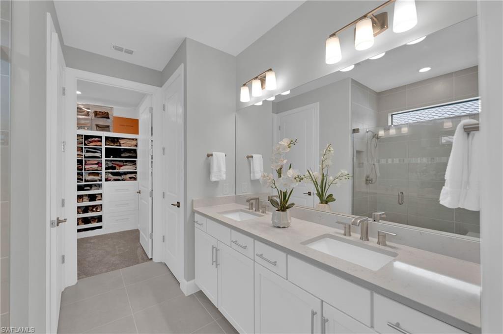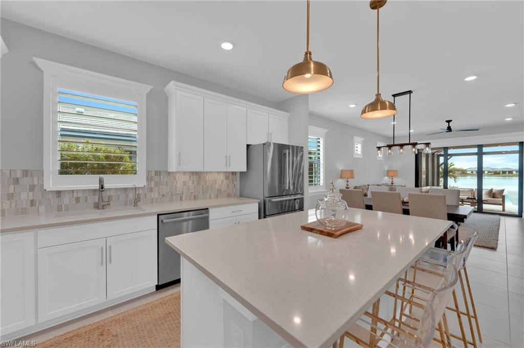 SOUTHERN LAKE VIEWS, CUSTOM SALTWATER POOL & SPA, WHOLE HOME NATURAL GAS GENERAC GENERATOR, HURRICANE-IMPACT WINDOWS & DOORS, ELECTRIC STORM SMART HURRICANE SHADES — this home is fully loaded with HIGH-END UPGRADES! Featuring TWO BEDROOMS + DEN, TWO FULL BATHROOMS, and 1,405 SQFT OF LIVING SPACE, this Pulte-built Contour in Verdana Village combines luxury, low-maintenance living, and Southwest Florida lifestyle at its finest. Many upgrades throughout include TILE FLOORING in main areas and den, RECESSED LIGHTING WITH DIMMERS, PREMIUM 5-INCH BASEBOARDS, PLANTATION SHUTTERS, and CUSTOM VALANCES. The kitchen features WHIRLPOOL STAINLESS-STEEL APPLIANCES, BRAND NEW KITCHENAID DISHWASHER, EXTERNALLY VENTED RANGE HOOD, TILE BACKSPLASH, SOFT-CLOSE CABINETRY with PULL-OUT SHELVING, CUSTOM PANTRY SHELVING, NATURAL GAS APPLIANCES, WATER SOFTENER, and REVERSE OSMOSIS SYSTEM. The primary suite features TRAY CEILING, SOFT CARPET, LANAI VIEWS, RECESSED LIGHTING, FRAMED GLASS SHOWER WITH BENCH, TILE TO CEILING, RAIN SHOWER HEAD, DUAL VANITIES, and CUSTOM WALK-IN CLOSET. The guest bedroom and bathroom offer FRAMED GLASS SHOWER, TILE TO CEILING, and COMFORT-HEIGHT VANITY. A dedicated laundry room and TWO-CAR ATTACHED GARAGE provide added convenience. Step outside to your private resort-style PANORAMIC FRAMLESS SCREEN ENCLOSED lanai features a CUSTOM SALTWATER POOL & SPA with LEATHERED MARBLE PAVERS, PREMIUM DIAMOND BRIGHT PLASTER MIXED WITH QUARTZ, OVERSIZED SUN SHELF, TWO BUBBLERS, HIDDEN DRAINS & SKIMMER, and GAS HEATER. The dream OUTDOOR KITCHEN with GRANITE COUNTERTOP & BACKSPLASH, GRILL with ROTISSERIE & GRIDDLE, HOOD VENT, BEVERAGE COOLER, and DINING/LOUNGE SPACE makes entertaining effortless. Located in the brand new Verdana Village and offers INDOOR & OUTDOOR PICKLEBALL, TENNIS, BASKETBALL, THREE RESORT-STYLE POOLS, DOG PARK, STATE-OF-THE-ART FITNESS CENTER, YOGA STUDIO, and MULTIPLE ON-SITE DINING OPTIONS. The community is just steps from THE SHOPPES AT VERDANA VILLAGE with Publix, restaurants, salons, and more. Conveniently located 15 MINUTES TO SOUTH FLORIDA REGIONAL AIRPORT, 10 MINUTES TO MIROMAR OUTLETS AND GULF COAST TOWN CENTER, 5 MINUTES TO OLD CORKSCREW GOLF COURSE, AND 45 MINUTES TO BONITA AND FORT MYERS BEACHES, this home provides everything for a low-maintenance, stress-free, resort-style lifestyle. Move in and start enjoying the best of Southwest Florida living — a rare opportunity in one of the most sought-after communities.