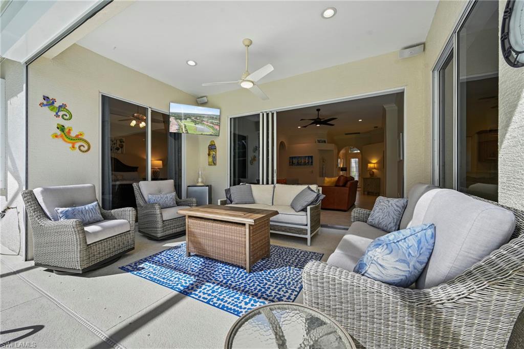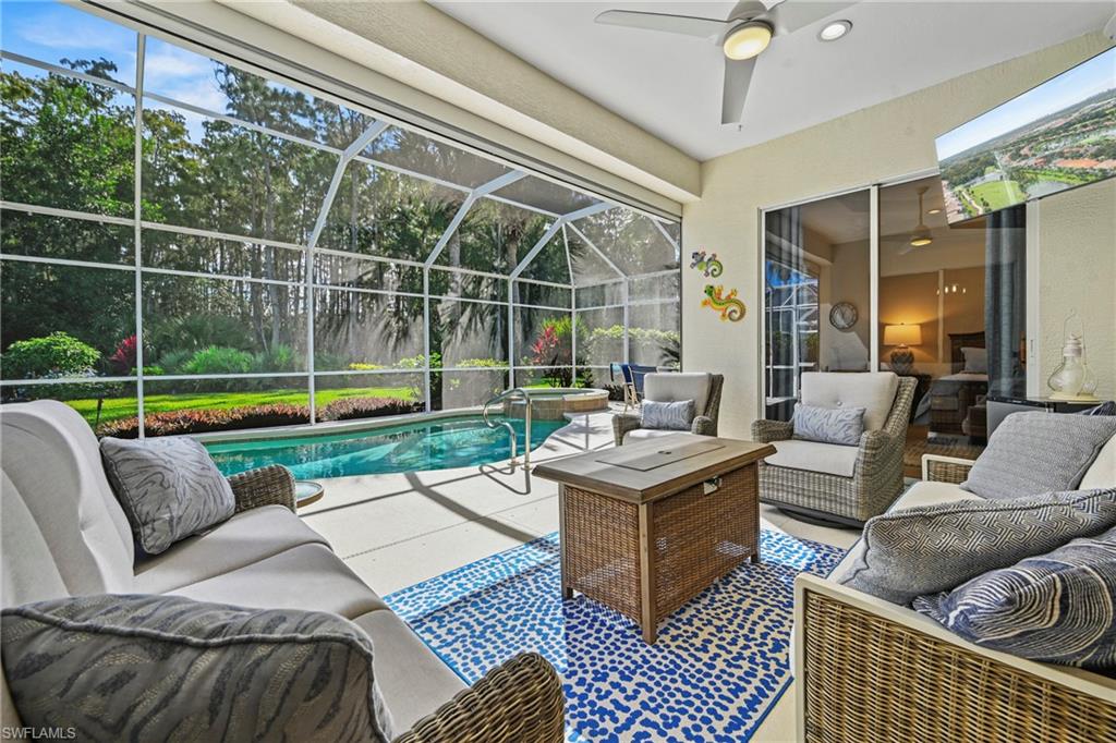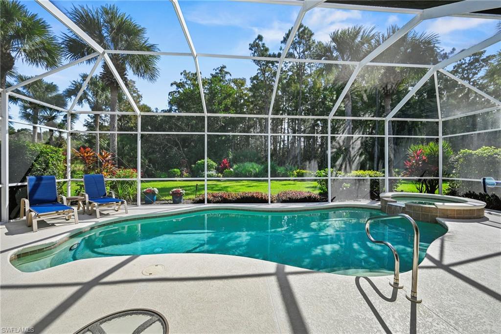 This beautifully maintained home is being sold turnkey furnished and radiates warmth the moment you walk in. Every space feels fresh, clean, and thoughtfully decorated with tasteful furniture and beautiful lighting throughout. It’s the perfect blend of comfort and style. Step outside to the serene lanai with a southeast exposure—ideal for morning coffee, an afternoon swim, or relaxing under the stars. The brand new propane heater and pump (2025) heat the pool and especially the spa in 15 minutes! The picturesque view is peaceful and calming, surrounded by mature trees on a quiet street that feels tucked away yet close to everything. Recent updates include a new roof, brand-new AC, water heater, and tile flooring throughout—no carpet anywhere. Freshly painted inside and out. Remodeled guest bathroom, extra LED lighting, surround sound with Sonos amps, brand new lanai screens, Kinetico water system and more. Electric and accordion hurricane shutters provide extra peace of mind during storms. This home has been lovingly cared for and it shows—it’s truly a place that feels good to come home to. Grandezza is located in the heart of Estero! This home is located within a quick walking distance to Publix, Hertz Arena and Miromar Outlets and yet, this home offers so much peace and quiet. Its very refreshing! RSW and FGCU are within a 10 minute drive as well as countless restaurants and shopping venues.