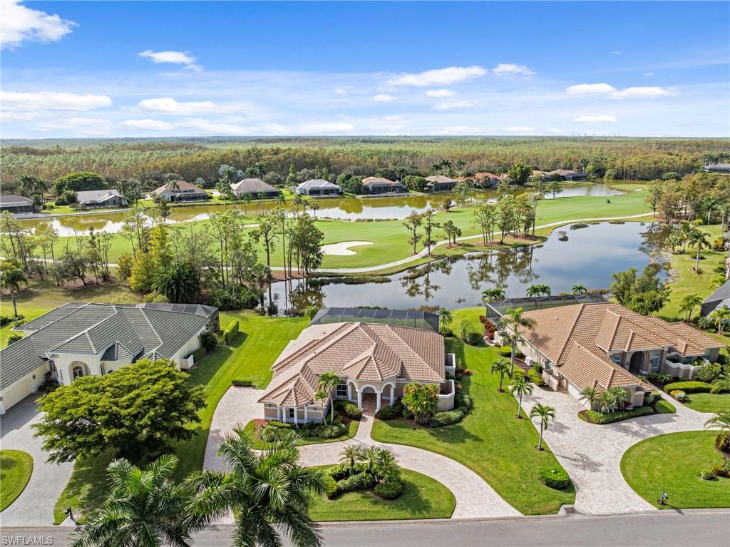 Embrace the beauty of country club living surrounded by nature in this meticulously cared-for home offering a stunning water view in Wildcat Run Golf & Country Club. Set on a nearly half-acre lot, this 3-bedroom, 3-bath residence spans approximately 2,215 sq ft of bright, open living with soaring volume ceilings, light neutral paint, and a circular driveway leading to an oversized 2-car garage. Recent updates elevate both style and peace of mind, including a new tile roof, brand-new impact-resistant sliders, and a new panoramic pool screen. The great room flows effortlessly to the dining area, built-in bar, and kitchen with a sunny breakfast nook, opening to an oversized covered lanai overlooking the sparkling pool, shimmering lake, and manicured fairway beyond. The home’s southwest orientation fills the interior with natural light throughout the day and showcases breathtaking sunset skies over the pool and lanai each evening. The primary suite provides direct lanai access, dual vanities, a garden tub, oversized walk-in shower, and a spacious walk-in closet. Two guest bedrooms provide flexibility for visitors or a home office, complemented by a shared full bath and a separate full pool bath offering convenient lanai access. Nestled among sprawling home sites, custom-built residences, and lush, mature landscaping, Wildcat Run offers a truly distinctive setting. Residents enjoy an Arnold Palmer–designed 18-hole championship course (with no waitlist for golf memberships), tennis and pickleball courts, bocce, fitness and wellness facilities, casual and fine dining, and a busy year-round social calendar—all just minutes from I-75, RSW Airport, Coconut Point, Hertz Arena, fine dining, shopping, and the beautiful Gulf beaches.