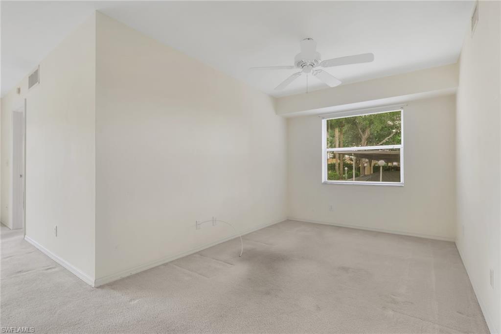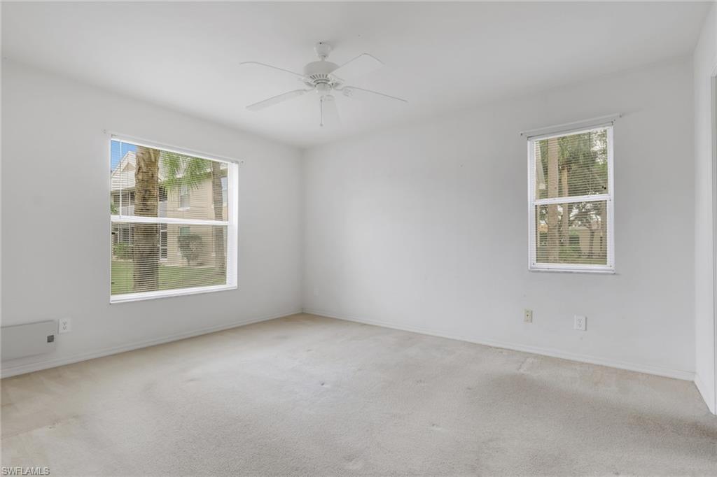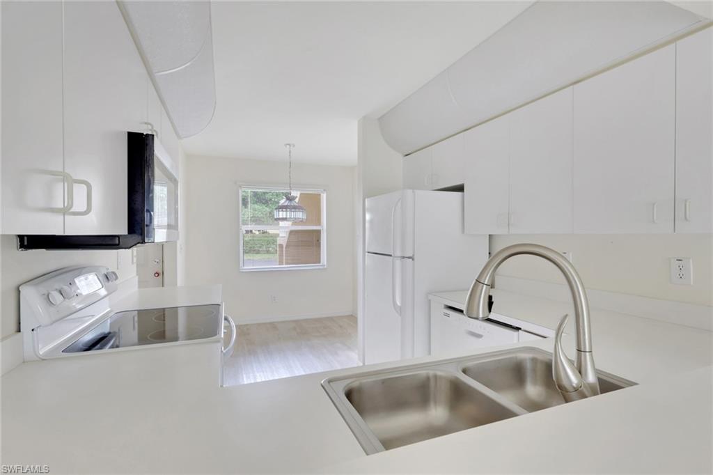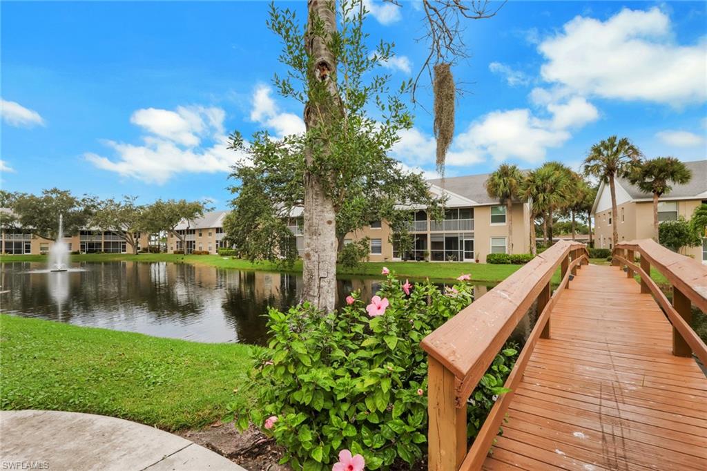 You definitely will want an end-unit when you purchase in Pebble Shores. That ensures you get a lot of extra space instead of just one room for entertaining. Enjoy peaceful lake views and Florida sunsets from this desirable ground-floor end unit — the model that features a spacious den for added flexibility. This condo is a blank slate ready for your personal design touches, offering incredible natural light throughout and an open layout where the kitchen overlooks the dining and family rooms. Step outside to enjoy the long view of the lake and the charming footbridge just beyond your patio, or make use of the BBQ grill conveniently located right outside the unit. The deeded covered parking space is just steps away, and with no stairs, accessibility is a breeze. Inside, the primary bedroom easily accommodates a king-sized bed and includes a large walk-in closet for ample storage. Summit Broadband is being installed for all units, adding even more value to this well-maintained community known for its excellent rental history. Residents enjoy a pet-friendly environment, an enormous resort-style pool, and a welcoming social calendar with community events. The location is unbeatable — just minutes to Delnor-Wiggins Pass State Park for spontaneous sunset beach trips, close to Mercato, Seed to Table, and major hospitals like NCH and Physicians Regional, with I-75 only a short drive away. Whether you’re looking for a permanent home, seasonal getaway, or investment property, this North Naples gem offers it all!