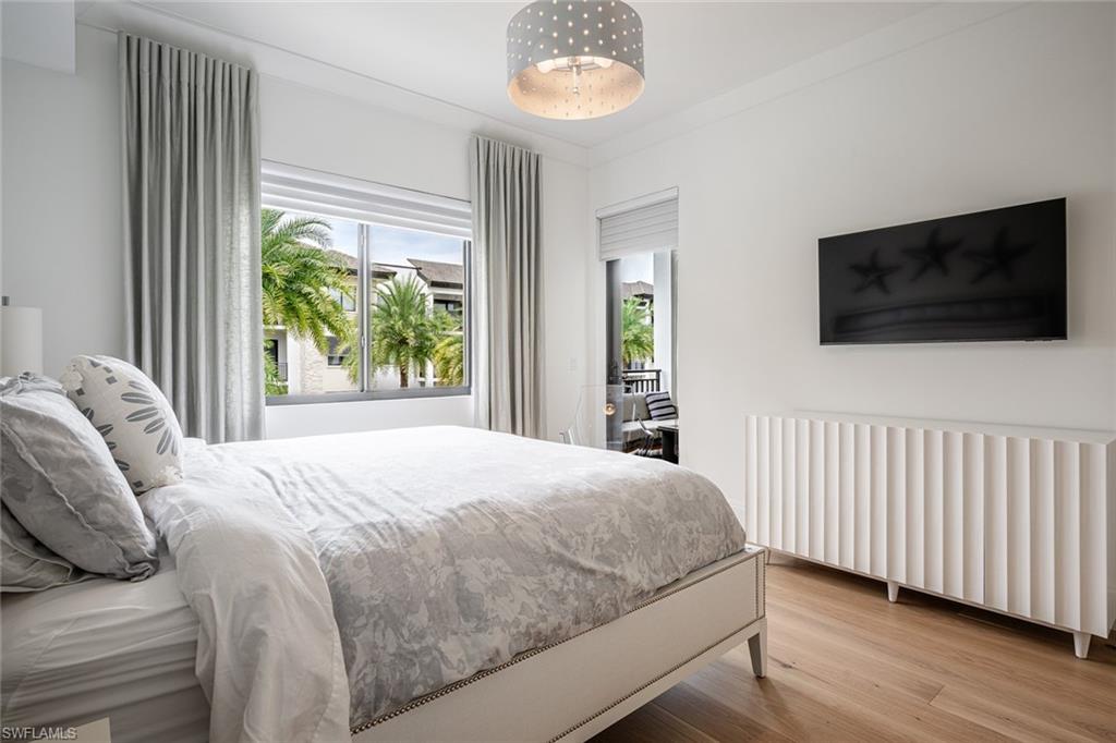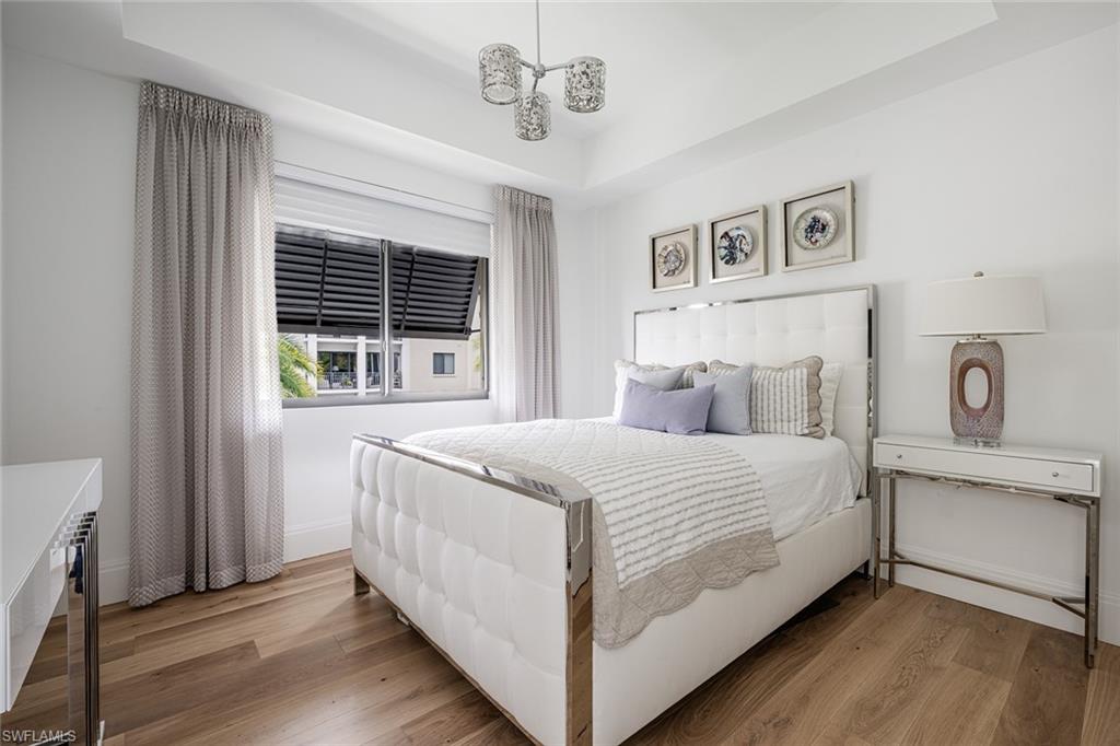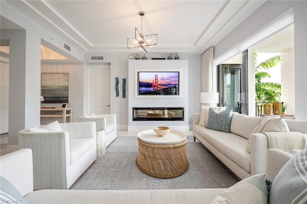 Sophisticated Downtown Living at Naples Square! Experience the best of Naples living in this beautifully appointed 2-bedroom-plus-den residence in the highly desirable Naples Square community—perfectly situated in the heart of downtown, just steps from Fifth Avenue South’s world-class shopping, dining, and entertainment, and a short stroll to the white-sand Gulf beaches. Once a model home, this residence shines with exceptional designer finishes and abundant natural light. Wood flooring in the bedrooms adds warmth and continuity to the open layout, complemented by shiplap-accented walls and custom barn doors that bring a touch of coastal elegance. Every detail reflects refined craftsmanship—from the hand-painted fireplace surround to the custom bath finishes with hand-rolled crystal paint and the den enhanced by sophisticated built-ins. The contemporary kitchen features sleek cabinetry, premium appliances, and modern fixtures—perfect for both entertaining and everyday living. Step out to the spacious lanai and enjoy tranquil courtyard views with lush landscaping, a sparkling pool, spa, and inviting greenspace. Thanks to its desirable western exposure, you can unwind each evening while taking in Naples’ famous sunsets right from your balcony. An attached storage area of approximately 90 square feet adds convenience and functionality to this exceptional offering. With effortless access to Naples’ best attractions—including the booming Naples Design District with its new restaurants, shopping, and entertainment at the Gulfshore Playhouse, as well as nearby Baker Park—this residence offers the ideal blend of style, sophistication, and an unbeatable downtown location.