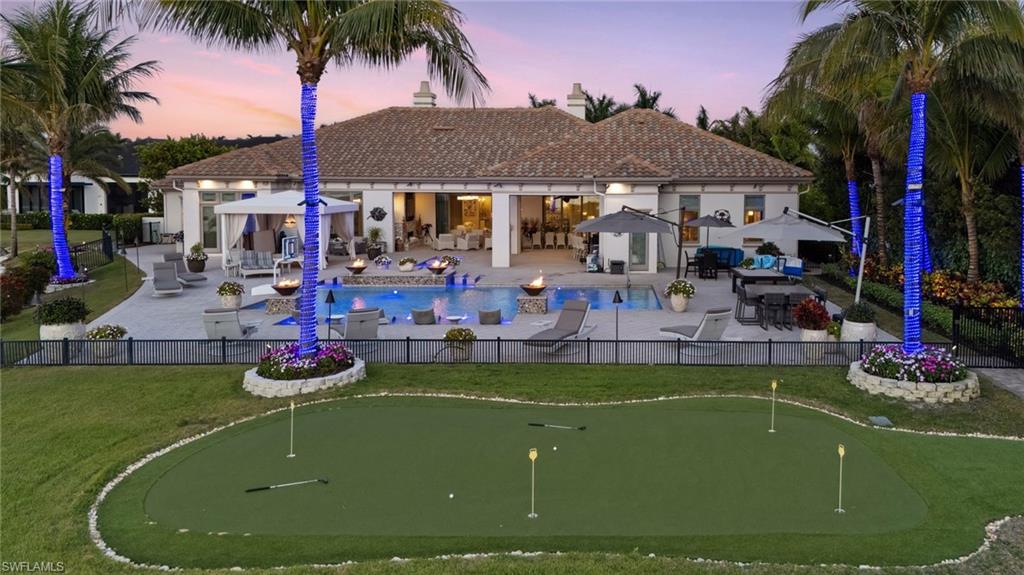 EXCEPTIONAL WATERFRONT ESTATE, NEARLY ONE ACRE OF PURE LUXURY IN MIROMAR LAKES Discover a once-in-a-lifetime opportunity to own nearly one acre of breathtaking waterfront property in the award-winning Miromar Lakes Beach & Golf Club, a place where elegance, privacy, and resort-style living blend seamlessly into a life of pure serenity. Nestled on one of the most coveted lots in the community and perfectly positioned to capture golden sunsets over the shimmering lake, this estate offers a front-row seat to nature’s nightly masterpiece. Every evening feels like a celebration of beauty, your own private symphony of light dancing across the water. Completely turnkey, including the boat, this home is ready for you to move right in and start living the Miromar Lakes lifestyle from day one. Step outside and feel your cares dissolve. The backyard is a sanctuary designed for connection, laughter, and stillness all at once. Lounge by the resort-style pool and spa as the fire and water features cast a warm glow across the terrace. Enjoy friendly moments on the custom putting green or gather by the fire pit as the stars begin to sparkle above. Multiple covered seating and dining areas invite you to linger outdoors, while the fully equipped summer kitchen makes every meal an occasion to remember. Inside, modern sophistication meets timeless luxury. Light pours through floor-to-ceiling windows, illuminating 4 spacious bedrooms, 6 beautifully appointed bathrooms, and multiple living areas that frame the water’s edge like living art. The gourmet kitchen is the heart of the home, a culinary dream with top-tier appliances, custom cabinetry, a walk-in pantry, and an expansive island that effortlessly connects to the great room and dining area, perfect for cozy dinners or grand celebrations. The owner’s suite is a private retreat in itself, serene, indulgent, and restorative. Wake to the gentle glow of the lake, unwind in your spa-inspired bath with a soaking tub, dual vanities, and an oversized walk-in shower. Two very spacious his-and-hers closets provide the perfect balance of elegance and functionality, offering abundant storage and organization for a life beautifully lived. Additional features include a private office, full-house generator, and a 5-car garage with lift for up to six vehicles, ideal for collectors and car enthusiasts alike. Beyond your doorstep, Miromar Lakes offers a lifestyle unlike any other with 700 acres of freshwater lakes for boating and watersports, three miles of private white-sand beach, championship golf, fine dining, a world-class spa, and endless opportunities for fitness, fun, and friendship. This is more than a home; it’s an experience, a feeling, a legacy. A rare chance to claim one of Miromar Lakes’ most extraordinary waterfront estates. Schedule your private showing today and step into a world where every day feels like a getaway.