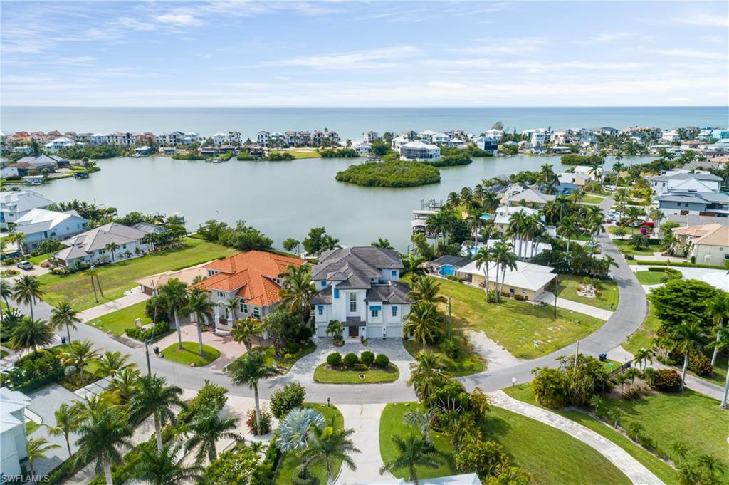 Stunning bayfront masterpiece in the coveted “Carolands” neighborhood on Bonita Beach! Experience beautiful bay views and spectacular sunsets from this coastal contemporary retreat, perfectly positioned with highly desirable Western exposure. A true beach and boater’s paradise, this property is just a 15-minute walk (0.7 miles) to the pristine sands of Bonita Beach and offers quick Gulf-access with the ultimate boating setup—including a private dock with dual lifts for effortless days on the water. Built like a fortress in 2017, this home was crafted with hurricane impact windows/doors and electric storm shutters. Every detail was carefully curated, from beautiful wide-plank oak flooring to custom coffered ceilings. Inside, the open floor plan spans 5,015 sq ft under air, featuring 5 bedrooms (including a VIP suite), 4 full and 3 half baths, dual laundry rooms, and a 3-car garage. The chef’s kitchen boasts quartz countertops, sleek white cabinetry, top-of-the-line Thermador appliances, and a gas range, with an adjacent formal dining area with a bar and wine fridge. Expansive fully pocketing sliders open to the lanai, creating seamless indoor-outdoor living. The outdoor oasis features a summer kitchen, fireplace, and electric screens overlooking a resort-style pool and spa with stunning bay views—perfect for entertaining or relaxing in privacy. The main floor primary suite offers direct lanai access and a spa-like bath featuring dual vanities, a freestanding tub, and a glass-enclosed shower. Upstairs, enjoy a second living area with a wet bar, additional laundry room, a VIP suite, and a spacious top-floor lanai overlooking the bay. Additional highlights include a private elevator, 24kW whole-house generator, smart home technology, and ground-level flex space. With no HOA fees or rental restrictions, this property presents an excellent opportunity as a full-time personal residence, seasonal retreat, or a lucrative investment property. Ideally located near top dining and shopping, just minutes from Mercato, The Promenade, Waterside Shops, Coconut Point, 5th Avenue, and the International Airport.