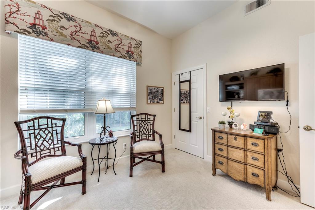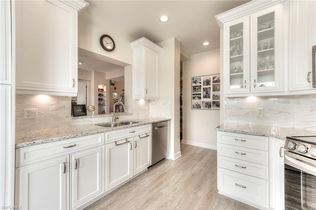 This home is special. What could be more perfect than waking up to a gorgeous view of Shadow Wood’s North 15th fairway across the water from your lanai, with another lake and fairway beyond? Rarely available updated 1st floor condo in the coveted Indigo Isle neighborhood. UPDATED kitchen with gorgeous quartz countertops, 42” white cabinetry and beautiful backsplash. Triple pane windows against the lake side of the home. Electric storm shutters. Beautiful new flooring and renovated baths make this a truly special opportunity for your carefree home in paradise. Condo association recently replaced all roofs, painted the exterior and freshened the landscaping for the community. The condo clubhouse has been refurbished, the pool refinished and new furniture added. Fiber to the home provides lightning fast internet and television. Member owned Shadow Wood Country Club offers 54 holes of championship golf, 2 club houses, 9 Har Tru tennis courts, bocce, outdoor fire pits, access to a private beach club, fitness center, full-service spa, pickle ball, and private restaurant. New Lifestyle Amenity Center will add 2 resort style pools with zero-depth entry, lap lanes and dedicated kids pool, poolside restaurant & bar, 6 indoor pickleball courts, new racquet pro shop and a grab & go cafe. Great location close to shopping, airport, beaches and much, much more. THIS HOME IS A MUST SEE!