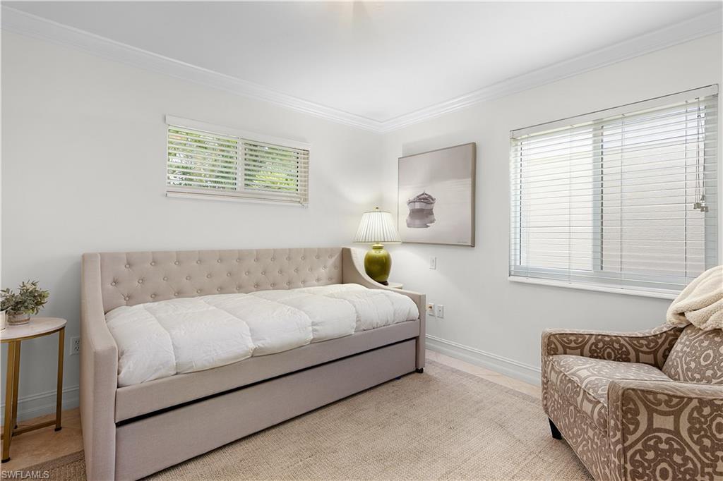 Luxury Coastal Retreat with Private Entrances, Garden & Garage in Prime Olde Naples Location. Welcome to The Gardens, a rare boutique condominium offering only four exclusive residences in the heart of Olde Naples. This fully furnished 2-bedroom, 2-bathroom residence is the only unit in the building with a private garden, providing a serene outdoor retreat where you can unwind and enjoy the refreshing Gulf breezes. Nestled on a picturesque tree-lined street, just three blocks from the pristine white sand beaches and two blocks from the world-renowned dining and shopping of 5th Avenue South, this home offers an unbeatable location. Step inside to an open-concept living space, featuring a gourmet eat-in kitchen with stainless steel appliances, granite countertops, and a spacious island—perfect for entertaining. The living and dining area extends seamlessly to your exclusive garden space, ideal for morning coffee or evening relaxation. The primary suite is complete with a walk-in closet and an en-suite bathroom featuring a double vanity and step-in shower. The guest suite also boasts a walk-in closet and an en-suite bath with a shower/tub combo, ensuring ultimate comfort for visitors. This unique residence offers dual access with both a front and rear entrance, providing unparalleled convenience and privacy. Enjoy the ease of a private back-alley entrance, leading directly to your detached single-car garage—a rare find in this coveted location. With its exclusive setting, private amenities, and turnkey convenience, this property is the perfect opportunity to experience the ultimate Naples lifestyle. Don’t miss out—schedule your private showing today!