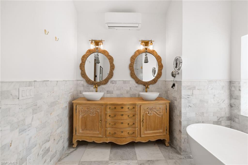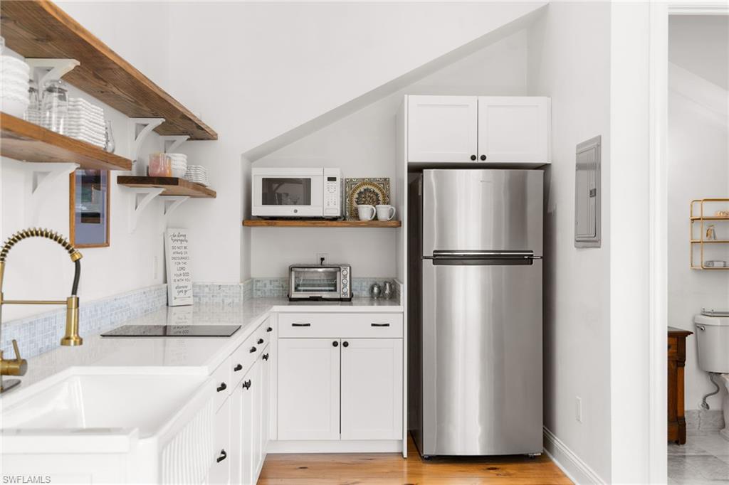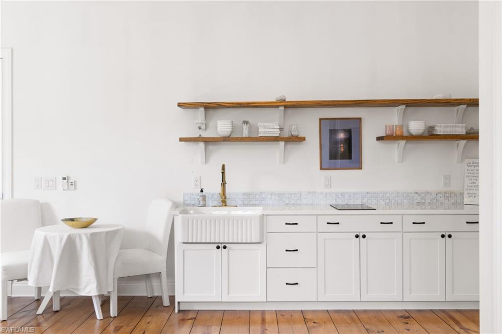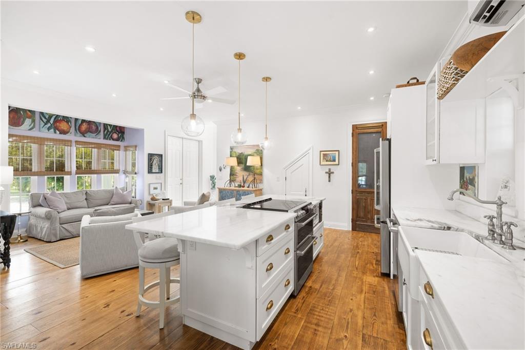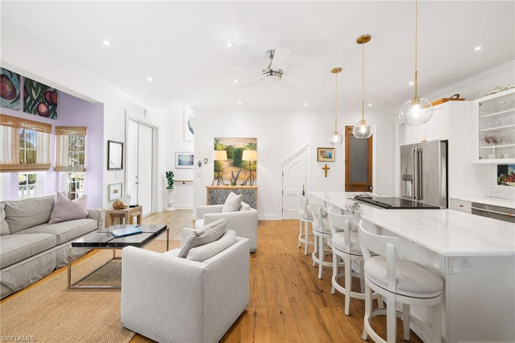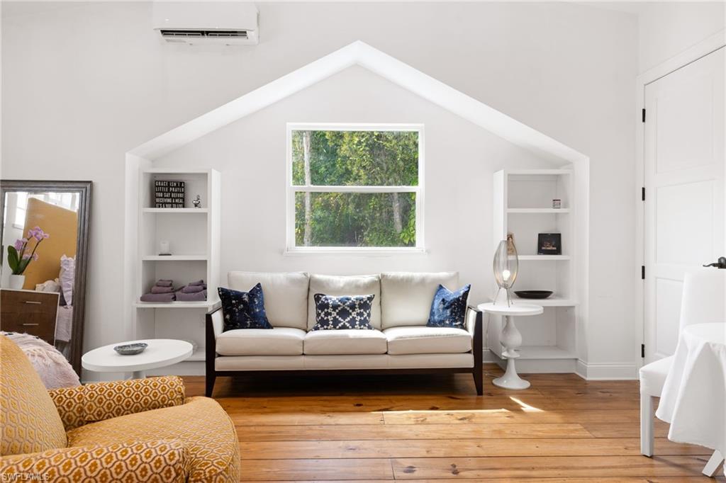 Step into timeless Old Florida charm. Tucked away on a peaceful street, this custom-built Old Florida farmhouse cottage blends country living with the comforts of modern living. Though recently built, its classic clapboard siding, metal roof, and inviting screened and open porches evoke the grace and character of vintage coastal homes. Inside, sunlight dances across Southern Pine wide-plank floors, leading you through an airy open layout that feels both relaxed and refined. The white chef’s kitchen gleams with café stainless steel appliances and elegant marble countertops, while handcrafted doors and Carrara marble baths with vintage sideboard vanities add an unmistakable touch of artistry and warmth. With 3,820 total square feet, this meticulously designed home includes two bedrooms and a loft in the main house, plus a detached studio with a full kitchen—perfect as a private guest retreat or an income-producing rental. Surrounded by lush Old Florida foliage, this home offers a rare sense of peace—a retreat where time slows down and everyday life feels effortlessly beautiful. Nestled in the vibrant Bayshore area, you’ll enjoy proximity to Naples Botanical Gardens, Celebration Park, Bayview Park boat ramp (with access to the Gulf), and 5th Avenue South’s shopping, dining, and beaches. Stroll to 360 Market, Rebecca’s Wine Bar & Jazz Club, Ankrolab Brewery, Sugden Park, and local art galleries—all just moments from your door. This is more than a home—it’s a lifestyle defined by character, comfort, and the timeless beauty of Old Florida.