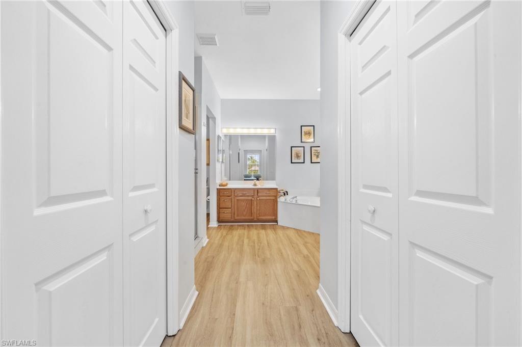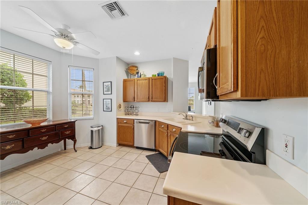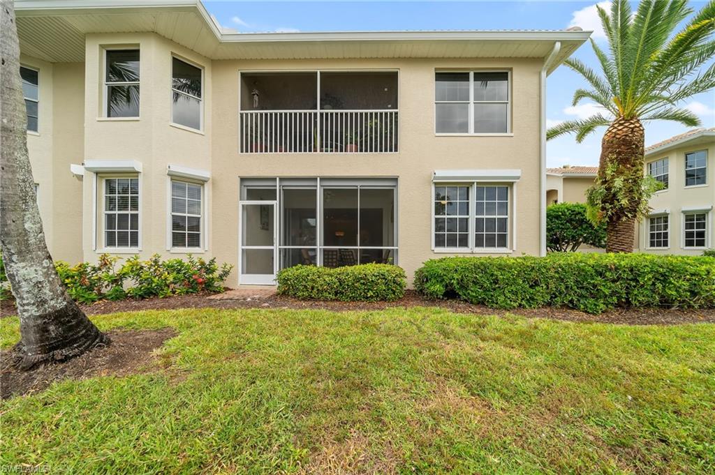 1st-Floor Coach Home with Stunning Views in Coconut Shores! Breathtaking sunset views from the screened rear lanai of this 2-bedroom + den, 2-bathroom coach home in the highly sought-after Coconut Shores community. Offering a spacious and versatile great room floor plan, this home features luxury vinyl flooring throughout, an eat-in kitchen with a breakfast bar, and an inviting living area with combined dining and family room spaces. The flexible den can easily transform into a home office or a 3rd bedroom, perfect for your needs. Retreat to the spacious master bedroom, complete with a walk-in closet and an en suite bathroom featuring dual sinks, a separate tub, and a walk-in shower. Coconut Shores offers an array of amenities, including pickleball and tennis courts, an exercise room, a BBQ grill, a community room with a kitchen, shuffleboard, and a resort-style pool and spa—all within a short walk from your front door. Conveniently located near shopping, dining, beaches, the interstate, and Florida Gulf Coast University, this property is perfect for enjoying the Southwest Florida lifestyle.