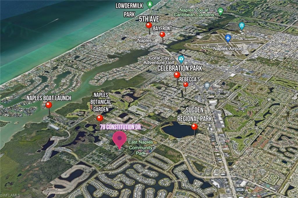 BIG PRICE IMPROVEMENT! REDUCED FAR UNDER RECENT APPRAISAL! BUY WITH CONFIDENCE! Flood Zone X (Out of flood zone). Bayshore Arts District Gem with Private Pool & Modern Updates! Discover your slice of paradise at 79 Constitution Drive, nestled in the heart of Naples' vibrant and rapidly developing Bayshore Arts District! This exceptional 3-bed, 2-bath ranch home offers a unique opportunity for homeowners and investors alike, perfectly positioned on a quiet, dead-end street yet just moments from the area's dynamic energy. Immerse yourself in a lifestyle where eclectic charm meets modern convenience. A short bike ride takes you to local favorites like the lively Celebration Park with its waterfront food trucks and live music , the sophisticated Rebecca's Wine Bar , and the stunning Naples Botanical Garden. The district is buzzing with growth, including the anticipated Hotel on Bayshore (formerly "The 239"), an upscale boutique hotel development poised to bring new dining and retail experiences , and the upcoming Bayshore Boardwalk connecting directly to Sugden Regional Park's recreational offerings. Boating enthusiasts will love the easy access to the Naples Boat Ramp (Bayview Park, approx. 1 mile away ), while the world- renowned shopping, dining, and beaches of Downtown 5th Avenue are just a few minutes' drive. Step inside this charming residence through a welcoming archway into a home that perfectly blends comfort and style. The heart of this home is its beautifully updated kitchen, boasting modern appliances (including convection oven ), sleek white cabinetry, granite countertops, and an expansive island with seating – ideal for casual meals and entertaining. The open floor plan, featuring durable luxury vinyl flooring , flows effortlessly into a sunlit living area, thanks to large, impact-rated windows and doors that offer both beauty and peace of mind. Retreat to the tranquil bedrooms, thoughtfully arranged in a split plan for privacy. The primary suite serves as a peaceful sanctuary with ample closet space and an en-suite bath. Ceiling fans in each room ensure year-round comfort. Your private backyard oasis awaits! A sparkling blue, screened-in pool is the centerpiece for relaxation or hosting memorable gatherings in your fully fenced yard. The generous 0.24-acre lot includes a delightful playset and offers ample space for gardening or outdoor activities. Enjoy Florida's beautiful weather from the covered patio, a perfect spot for morning coffee or evening unwinding. A spacious driveway and an attached one-car garage provide plenty of room for vehicles and storage. Whether you're seeking an investment property (short-term/long-term rental potential, with "no minimum lease" noted – buyer to verify all rental regulations) or your own personal haven, this meticulously maintained home offers an idyllic Florida lifestyle. Don't miss this opportunity – 79 Constitution Drive isn't just a house; it's a place to call home.