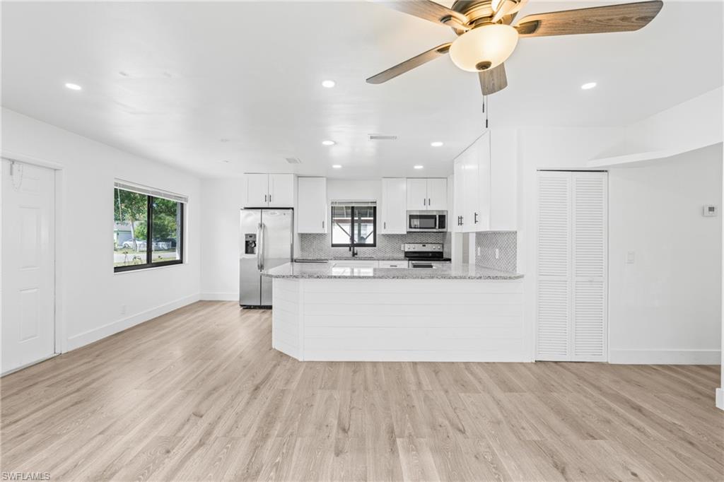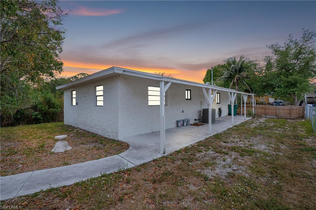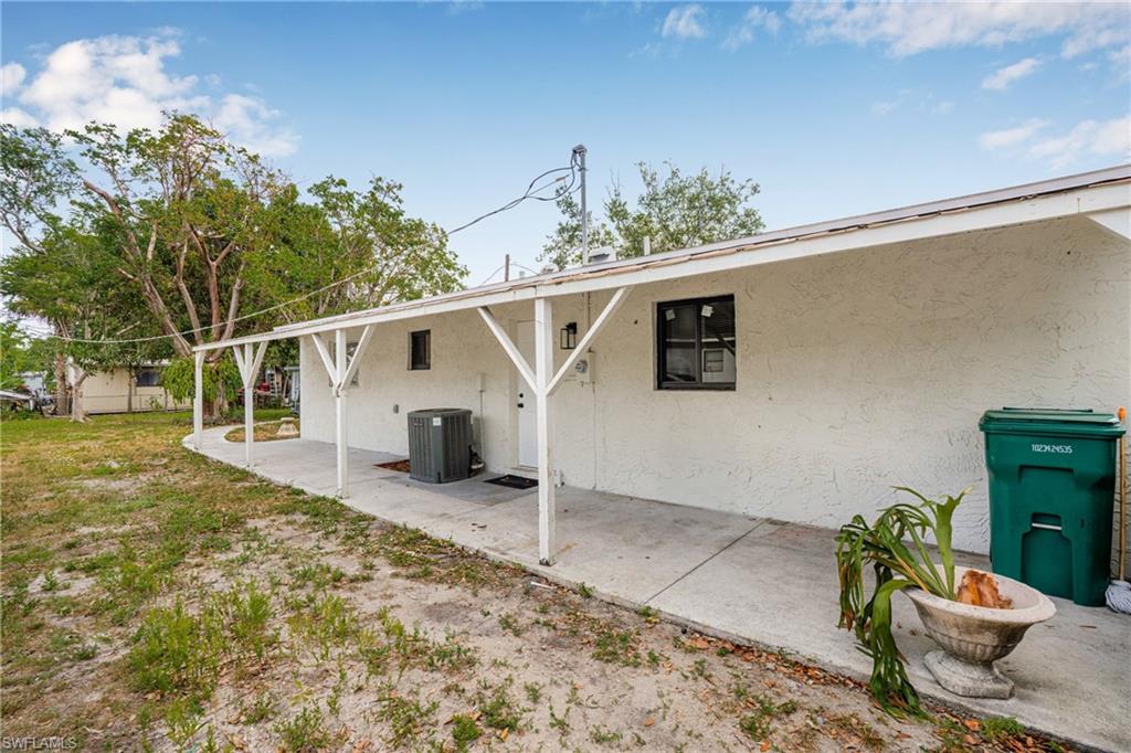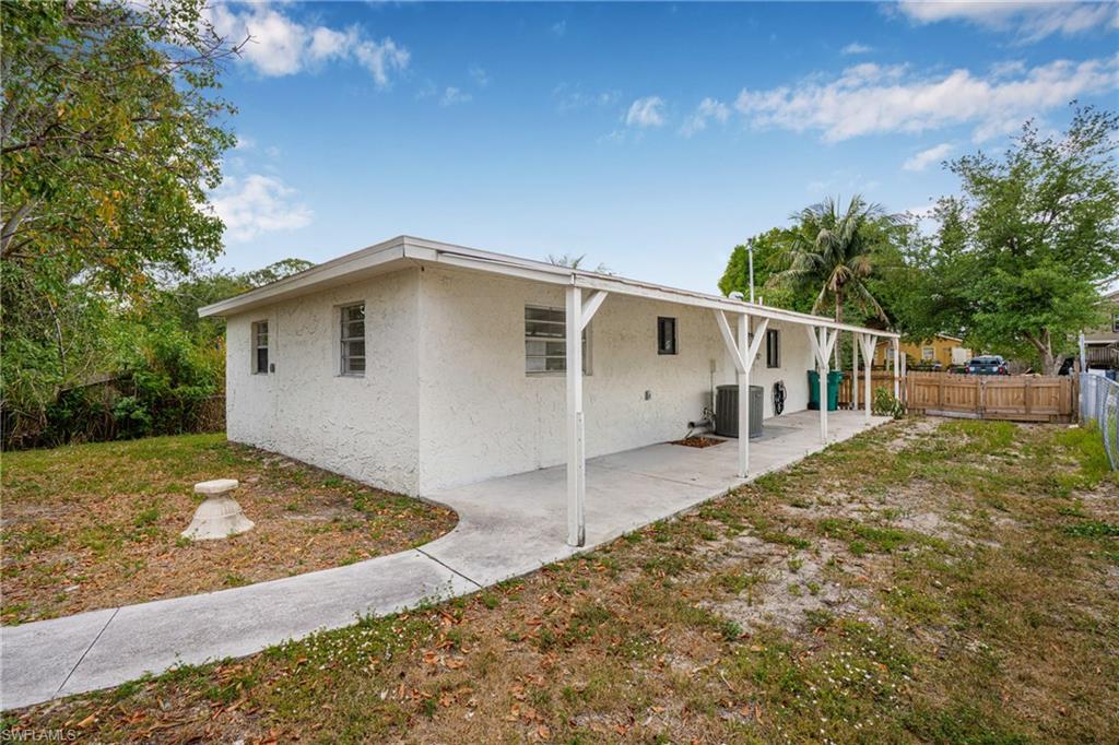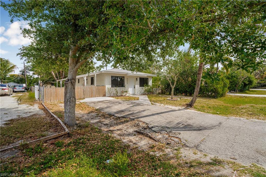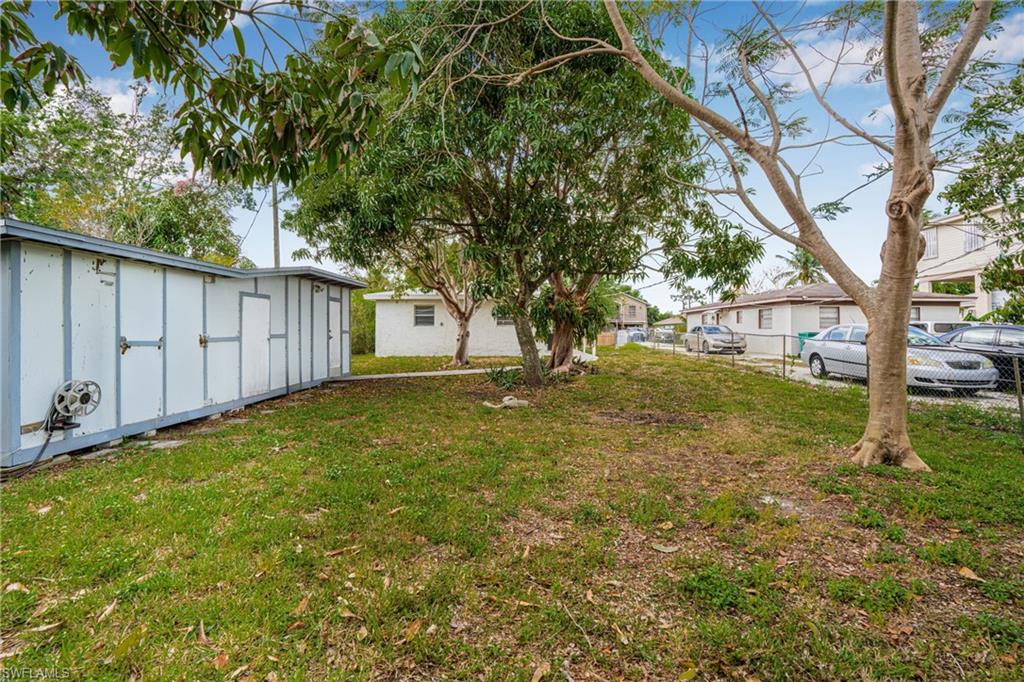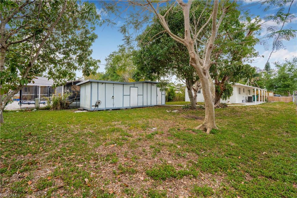 This Gem just 3 miles await from downtown Naples and the beautiful Naples Beach, this well-maintained home offers both convenience and exceptional value. Constructed with solid concrete block, the home features a nearly new roof installed in 2021, ensuring durability and peace of mind. The spacious, fenced backyard provides ample room for outdoor enjoyment, complete with three mature, fruit-producing mango trees and additional shade trees. A large side yard offers enough width to accommodate a trailer, allowing for easy boat storage without occupying driveway space. Additionally, the expansive backyard presents the opportunity to install a canopy for added boat protection or even a swimming pool—without the restrictions of an HOA. Inside, the home boasts a functional and thoughtfully designed layout with three true bedrooms and two bathrooms free of any unusual or unauthorized modifications. For added convenience, the property includes a dedicated workshop with power and two storage sheds, providing plenty of space for tools, equipment, and recreational gear. Set in a welcoming and close knit neighborhood, this home offers an excellent balance of affordability and lifestyle, making it a rare find in Naples. Please note that some photos include virtual staging for visualization purposes.