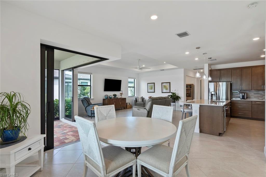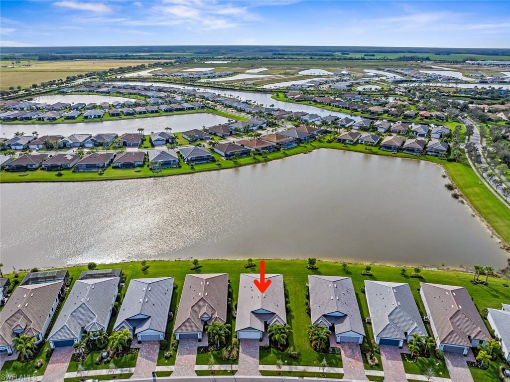STUNNING WATER VIEW | BUILT IN 2023 | MOVE-IN READY! Enjoy resort-style living in this beautifully upgraded MYSTIQUE floor plan home, situated on a large lot in the highly desirable 55+ Del Webb Naples community. This home features 3-bedroom + den. The GOURMET KITCHEN features custom cabinetry, upgraded appliances, a stylish backsplash, and an expansive island perfect for entertaining. The open-concept living area flows seamlessly to the EXTENDED COVERED LANAI, showcasing ZERO-CORNER POCKET SLIDERS, ELECTRIC HURRICANE SCREENS, and accordion shutters - perfect for relaxing or hosting guests while taking in the tranquil water views. Retreat to the PRIMARY SUITE, complete with dual sinks, a large shower, and a generous walk-in closet. The versatile flex room is ideal for a home office, guest room, or creative space. Additional highlights include designer lighting, custom window treatments, TILE FLOORING THROUGHOUT, and a UV light system for the A/C. The GARAGE offers a 4-foot extension, custom flooring, and overhead storage racks. The laundry room is equipped with built-in cabinetry for added convenience. With FURNISHINGS NEGOTIABLE, this home is ready for you to move right in. This home comes with the SOCIAL MEMBERSHIP, but take note GOLF LOVERS, Panther Run Golf Club offers optional MEMBERSHIPS with premium golf experiences just steps from your backyard. In Del Webb Naples, you’ll enjoy WORLD-CLASS AMENITIES that rival luxury resorts: dine at the Rusty Putter Restaurant, soak in the RESORT-STYLE or LAP POOLS, break a sweat in the state-of-the-art FITNESS CENTER, and play your way through PICKLEBALL, TENNIS, bocce, billiards - even a top-tier GOLF SIMULATOR! Need groceries, church, or a bite to eat? Just hop in your golf cart and cruise into town - Publix and the heart of Ave Maria are just minutes away. This isn’t just a home - it’s a LIFESTYLE UPGRADE in one of Southwest Florida’s most vibrant 55+ communities. Don’t miss your chance to live where fun, fitness, and friendships flourish year-round!
